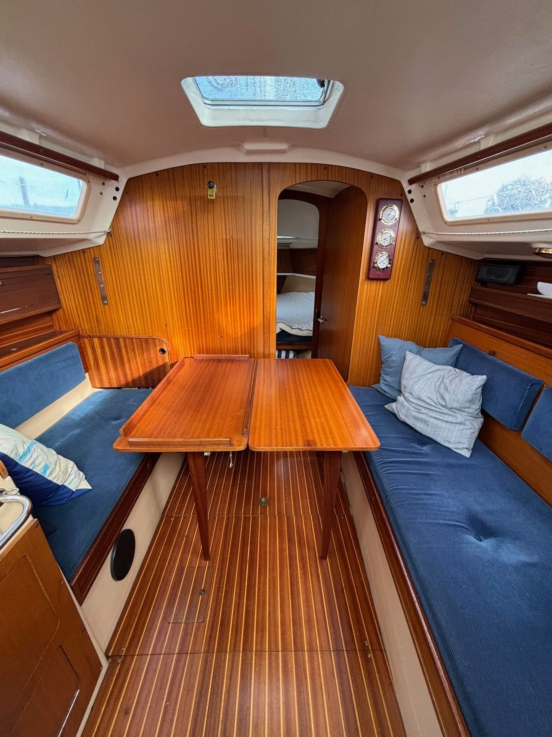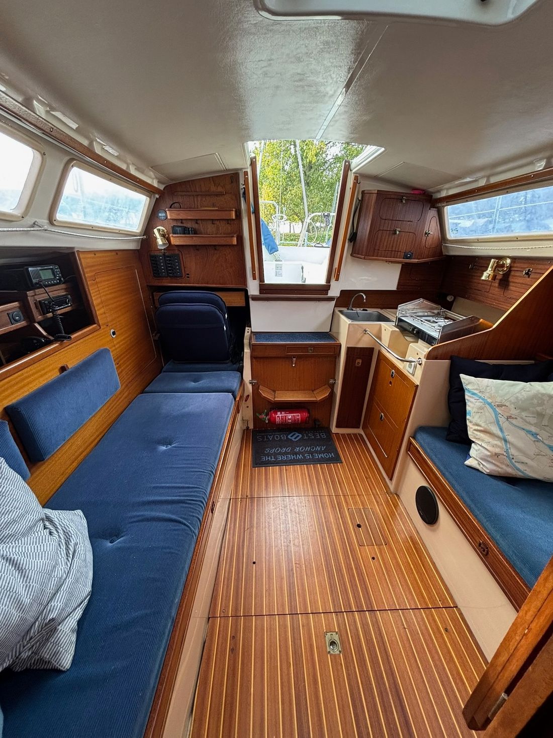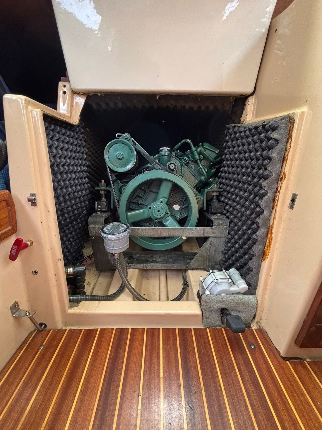 Motorisierung Anzahl identischer Motoren 1 Startertyp elektrisch Haupttriebwerk Typ innenbord Marke Volvo Penta Modell MD5 Seriennummer 411345 Baujahr 1979 Anzahl Zylinder 2 Leistung 13 pk Betriebsstundenzähler Motorbetriebsstunden 1380 Kraftstoff diesel Kraftstoffverbrauch 1 liter/stunde Marke Getriebe Volvo Penta Antrieb Übersetzung kardanwelle Antrieb propellor Kühlsystem direct Tank Kraftstofftanks Anzahl 1 Inhalt des gesamten Kraftstofftanks 40 liter Material Kraftstofftank edelstahl Leistung Max. Geschwindigkeit 12 km/h Marschgeschwindigkeit 10 km/h Messgeräte Motor Kraftstofftankanzeige Tachometer Elektrizität Batterie Anzahl 2 Batterieladegerät Kapazität 50 Lichtmaschine Batterieanzeige Inverter Kapazität 1200 Voltmeter Landstrom Landstromkabel Verbrauchsanzeige 12V 220V -