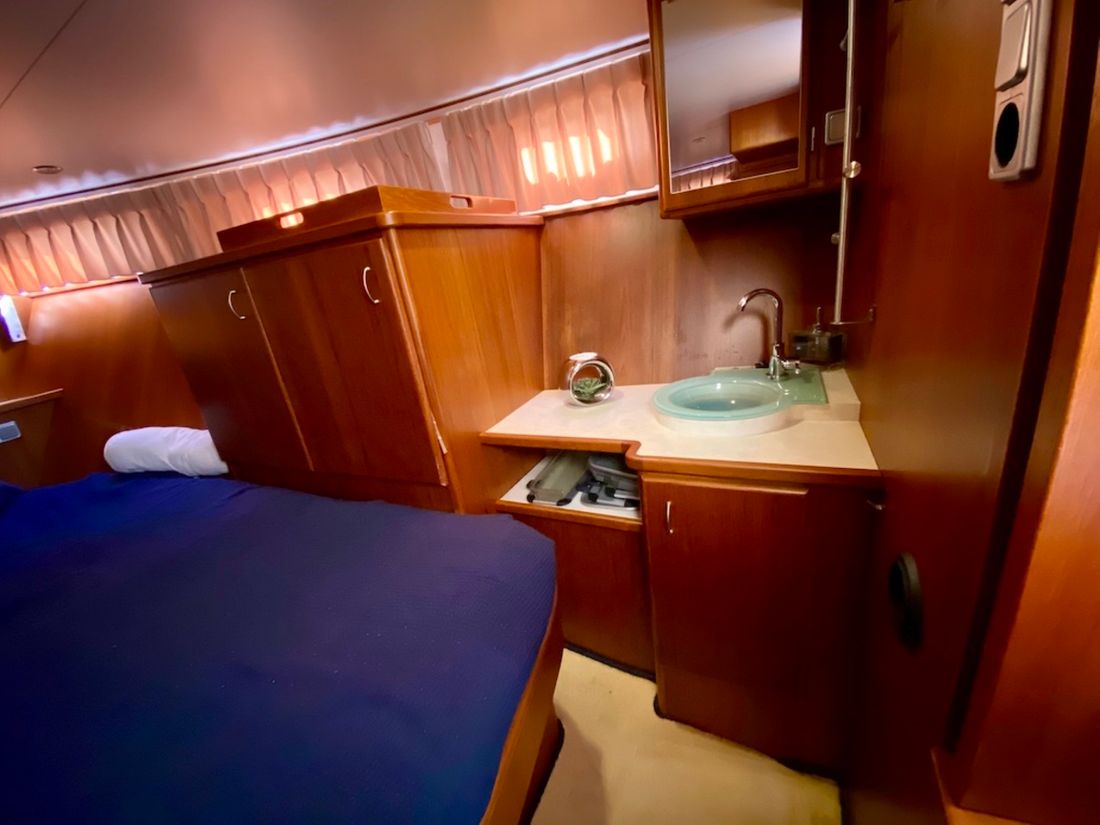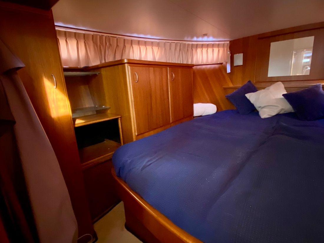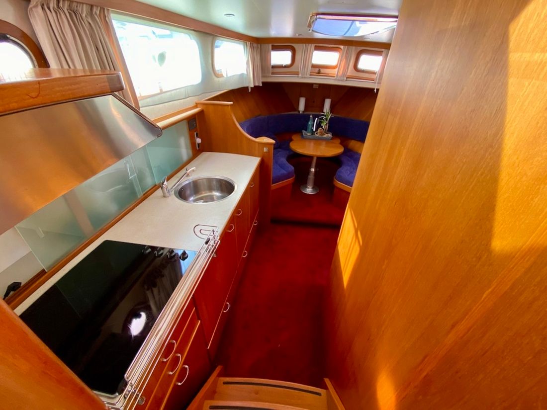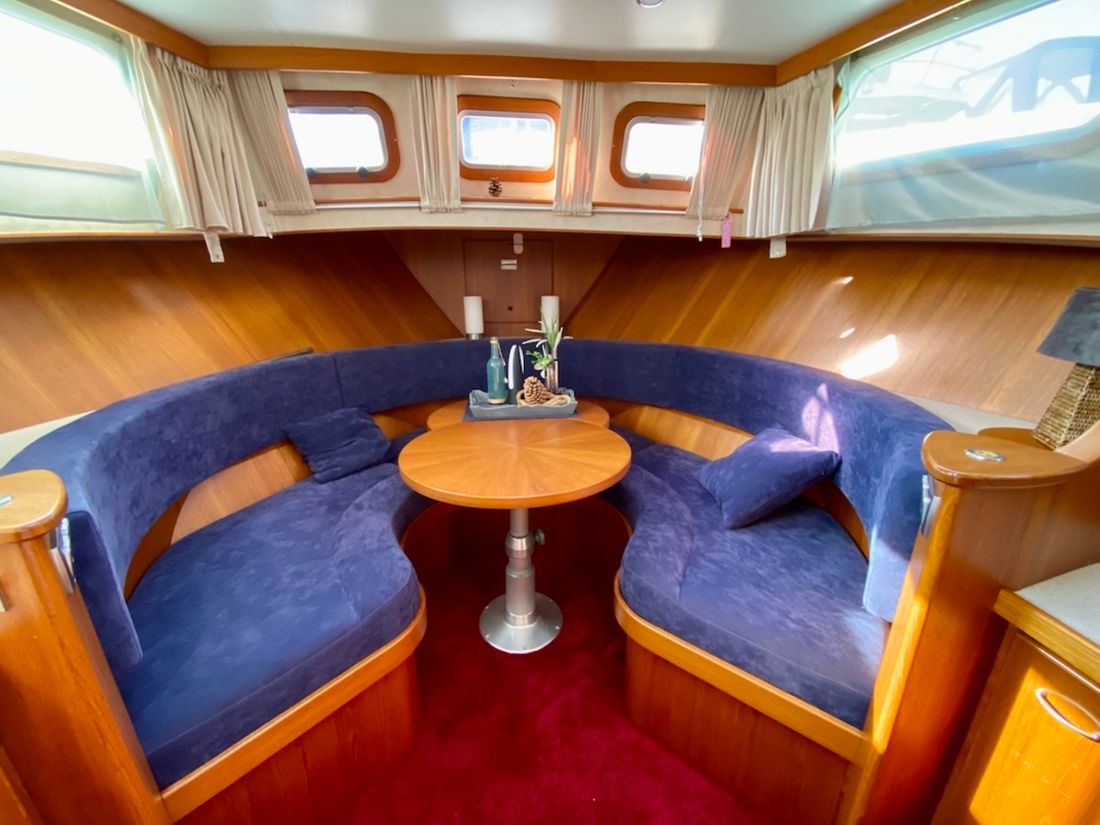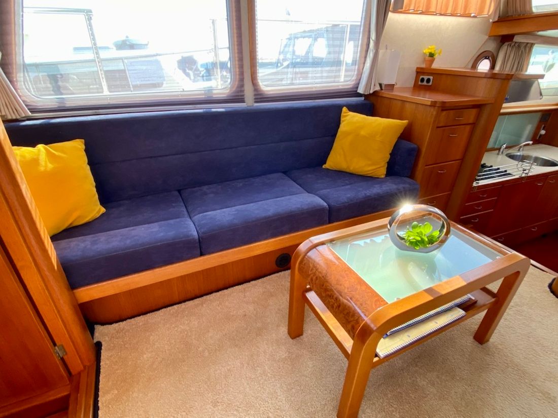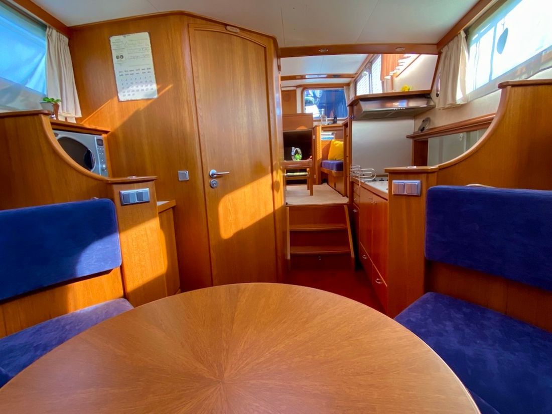 Räume Salon Essbereich Maschinenraum Kabinen 1 Salon Dekoration Interieurtyp Klassisch, warm Farbe Polsterung blau Matratzen Kissen Gardinen Wasser Wassertank & Material Kapazität 620 liter Material Wassertank edelstahl Inhoud 150 liter Material des Abwassertanks edelstahl Abwassertank Abwassertankanzeige Abwassertank-Pumpe Absaugstutzen Abwasser Wassersystem drucksystem Warmwasser Deckwaschpumpe Sanitär Anzahl Duschen 1 WC 1 Elektrisch Unterhaltung Fernseher Radio/CD Player Küche Kocher & Brennstoff Anzahl 4 Kocher-Brennstoff elektrisch Mikrowelle Kühlschrank Kapazität 50 liter Energiequelle elektrisch Gefrierschrank Klimakontrolle Heißluft -