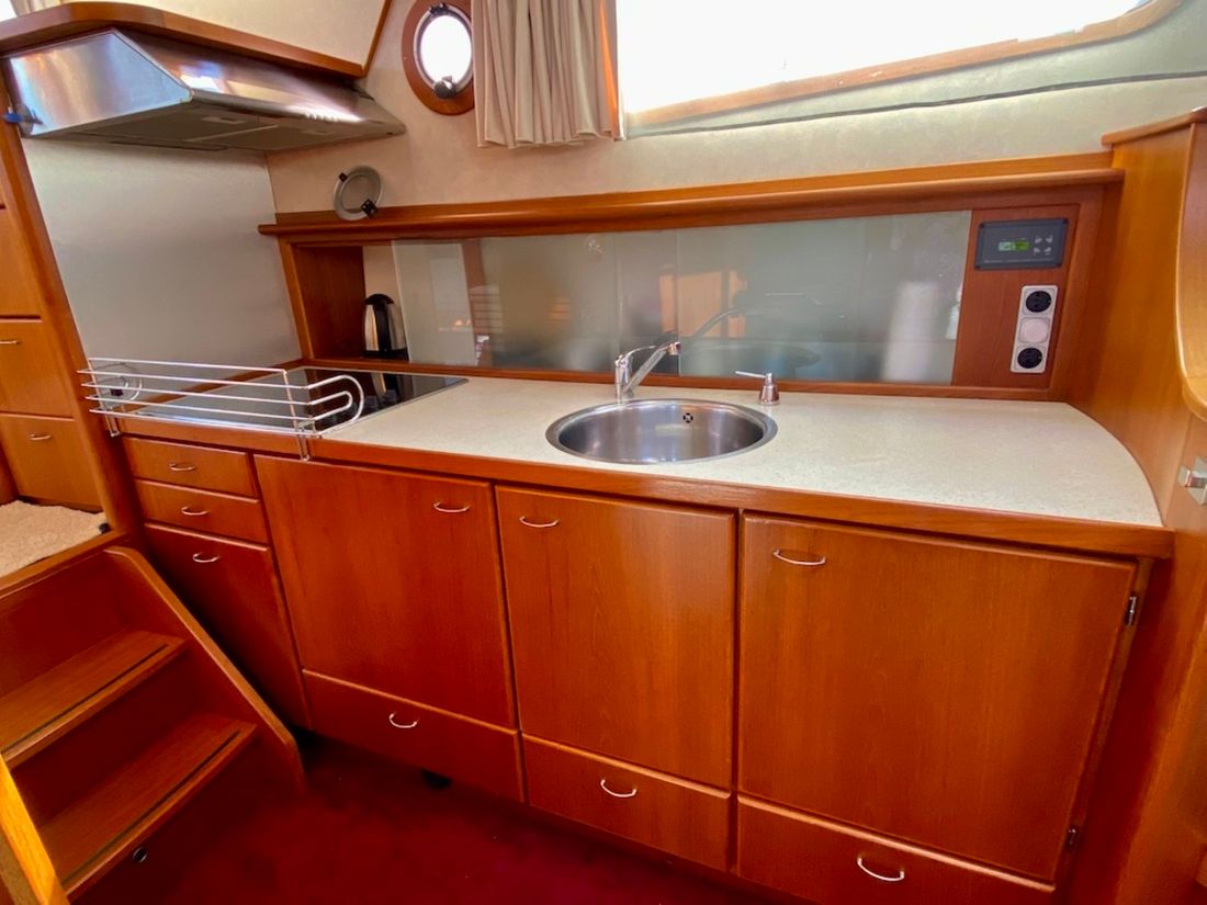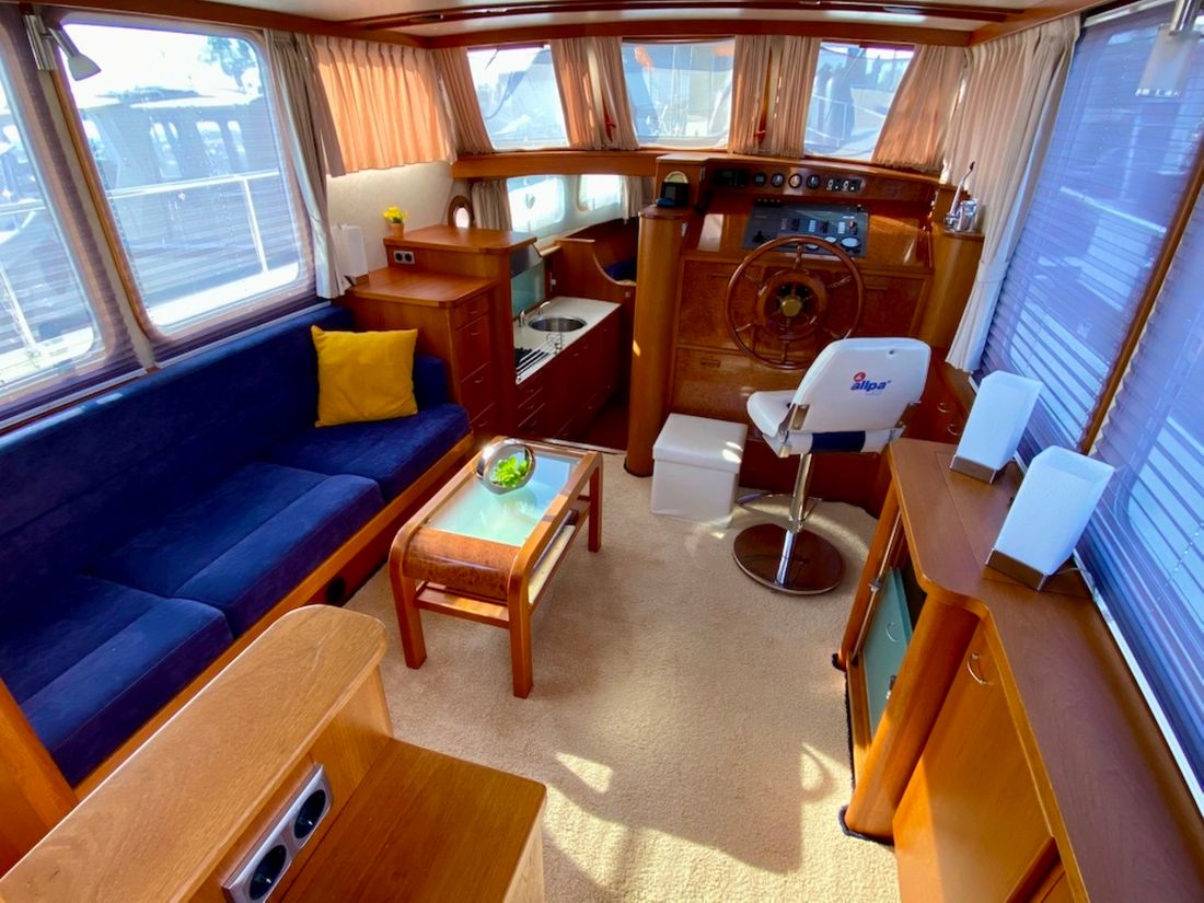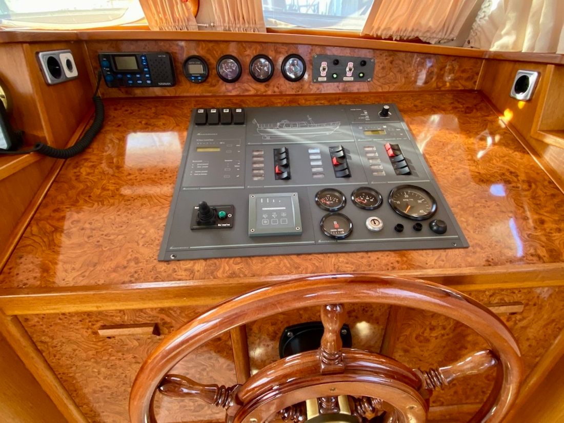 Motorisierung Startertyp elektrisch Haupttriebwerk Typ innenbord Marke Mitsubishi Modell S6S Anzahl Zylinder 6 Leistung 95 pk Betriebsstundenzähler Motorbetriebsstunden 2280 Kraftstoff diesel Kraftstoffverbrauch 5 pk Marke Getriebe PRM Antrieb Übersetzung kardanwelle Antrieb propellor Kühlsystem indirect Tank Kraftstofftanks Inhalt des gesamten Kraftstofftanks 800 liter Material Kraftstofftank stahl Leistung Max. Geschwindigkeit 14 km/h Marschgeschwindigkeit 10 km/h Messgeräte Motor Kraftstofftankanzeige Tachometer Öldruckmesser Temperaturmesser Bug- und Heckstrahlruder Bugstrahlruder elektrisch Elektrizität Batterie Batterieladegerät Kapazität 50 Lichtmaschine Batterieanzeige Generator Kapazität 6 Marke Generator Mastervolt Whisper Inverter Kapazität 2000 Voltmeter Landstrom Landstromkabel Solarpanel Kapazität 300 Verbrauchsanzeige 12V 24V 220V -