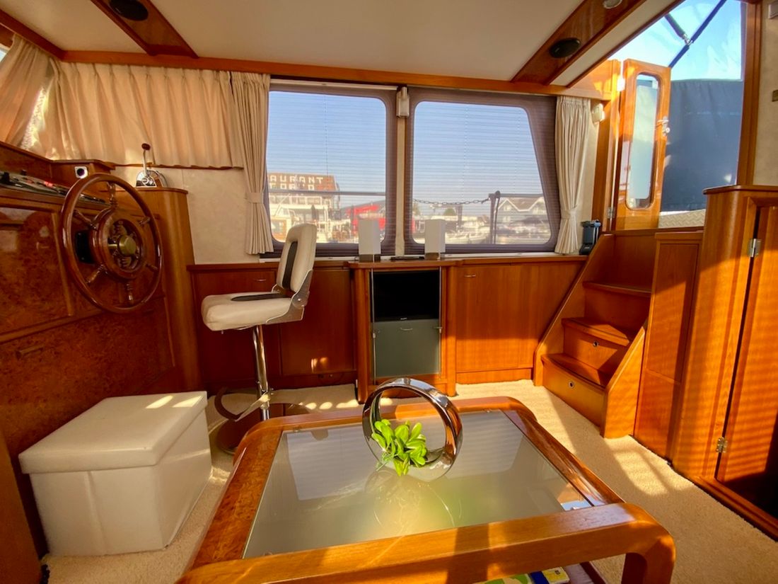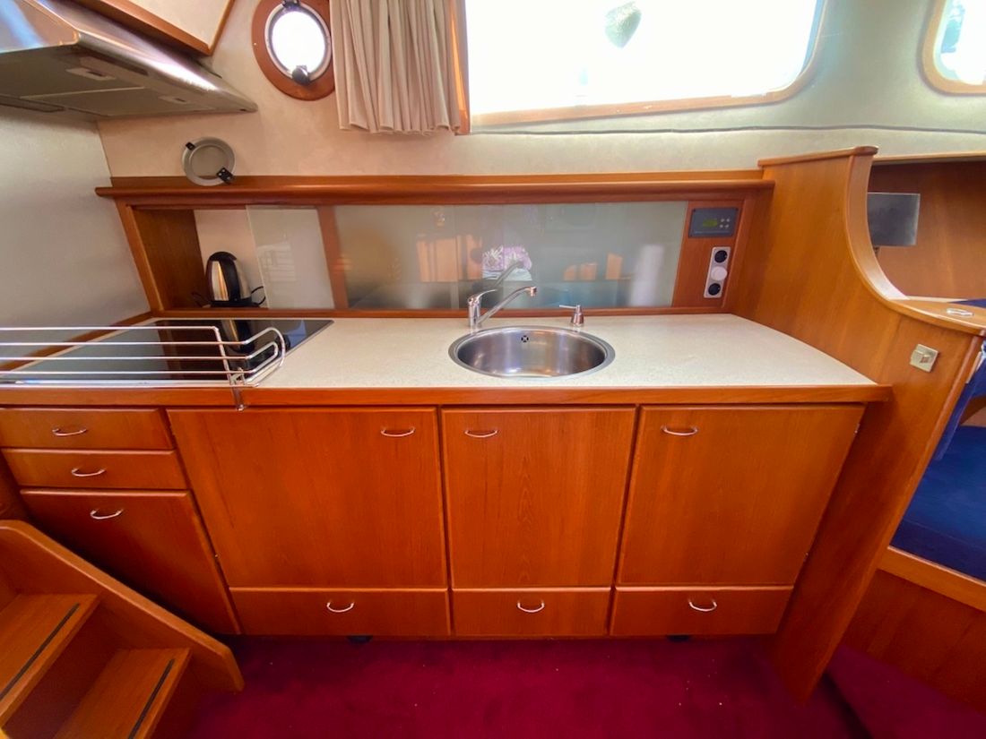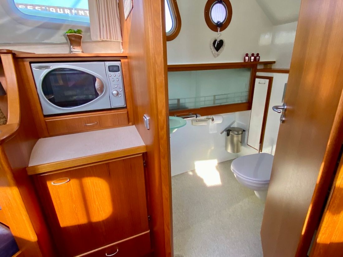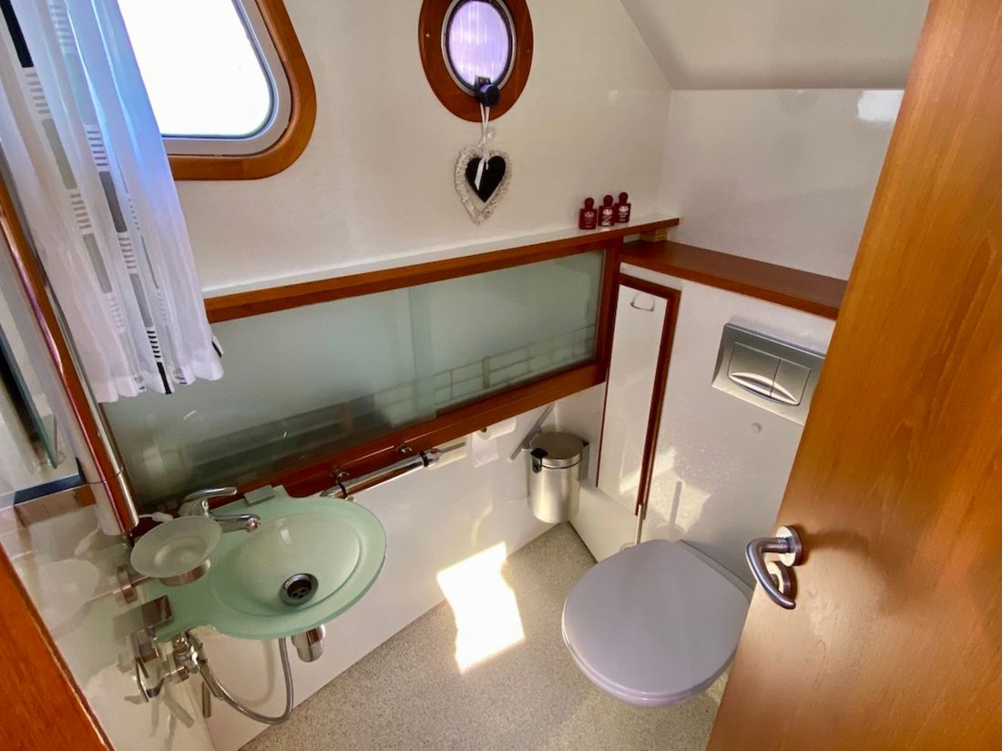 Motorisierung Startertyp elektrisch Haupttriebwerk Typ innenbord Marke Mitsubishi Modell S6S Anzahl Zylinder 6 Leistung 95 pk Betriebsstundenzähler Motorbetriebsstunden 2280 Kraftstoff diesel Kraftstoffverbrauch 5 pk Marke Getriebe PRM Antrieb Übersetzung kardanwelle Antrieb propellor Kühlsystem indirect Tank Kraftstofftanks Inhalt des gesamten Kraftstofftanks 800 liter Material Kraftstofftank stahl Leistung Max. Geschwindigkeit 14 km/h Marschgeschwindigkeit 10 km/h Messgeräte Motor Kraftstofftankanzeige Tachometer Öldruckmesser Temperaturmesser Bug- und Heckstrahlruder Bugstrahlruder elektrisch Elektrizität Batterie Batterieladegerät Kapazität 50 Lichtmaschine Batterieanzeige Generator Kapazität 6 Marke Generator Mastervolt Whisper Inverter Kapazität 2000 Voltmeter Landstrom Landstromkabel Solarpanel Kapazität 300 Verbrauchsanzeige 12V 24V 220V -