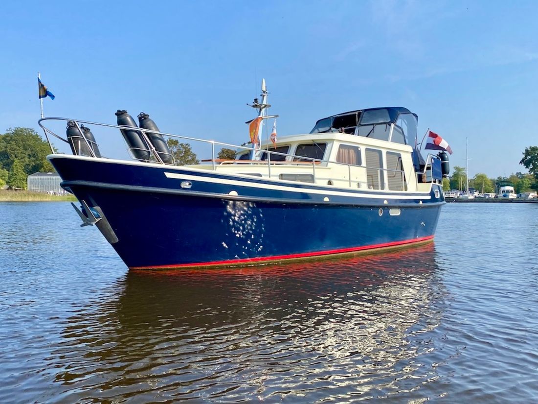 Neu geliefert Werft afbouw bij Admiraal Hasselt in 2009 Rumpf Deck Überbau Rumpfform mehrkant Rumpffarbe blau Deckfarbe weiß Deckaufbau Stahl Heck Cockpit Abmessungen und Gewichte Verdrängung 16000 kg Lenk- und Driftbegrenzung Steuersystem Lenkrad Steueranlage doppelte Kontrolle Ruder doppelt Kiel/Seitenschwert Festkiel -