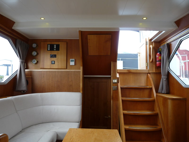 Das 12 Meter lange Schiff bietet 4 feste Schlafplätze in 2 Kabinen und zwei Toilettenräume mit Dusche. Es besteht die Möglichkeit für einen 5. Schlafplatz im Steuerhaus.
