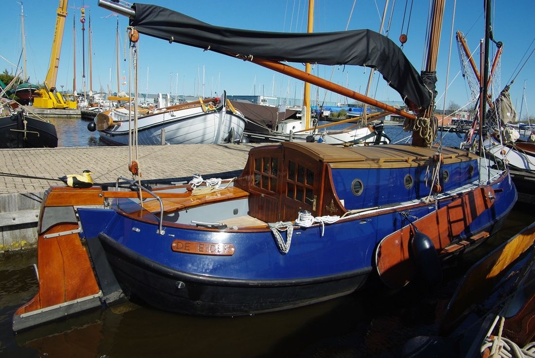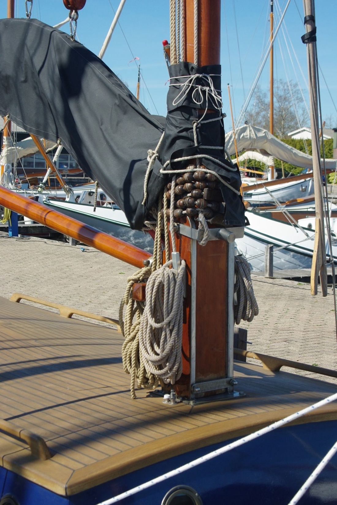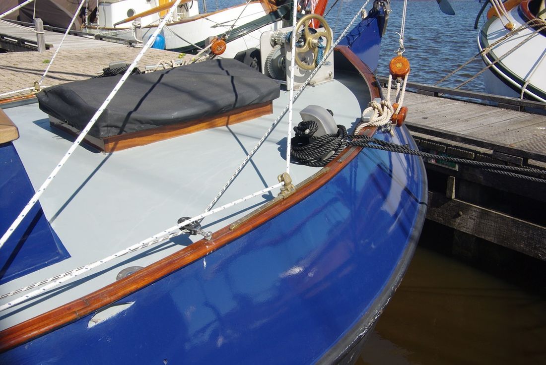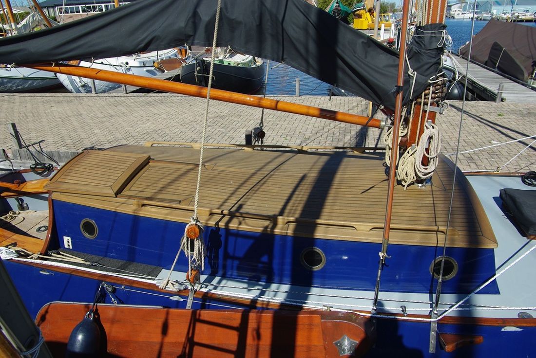 2024: renewed iroko cabin roof, oak floor, switch panel, heater, jib boom, leeboards and rudder treated and new starter motor and batteries installed by Schiffard Grou.