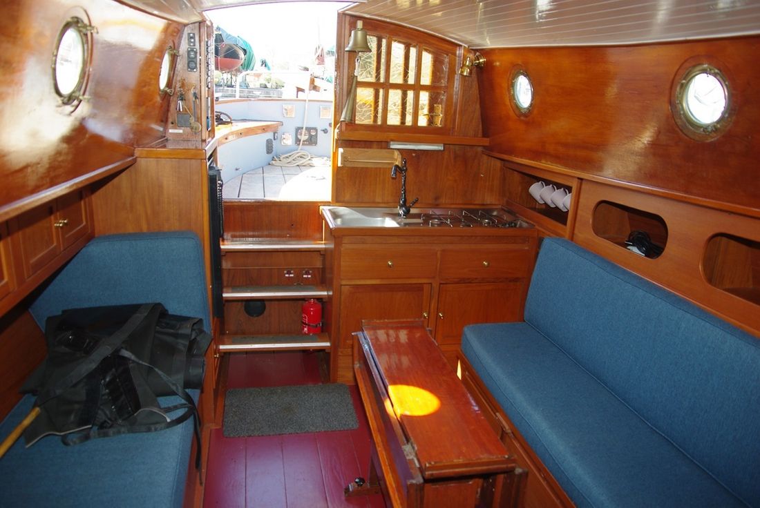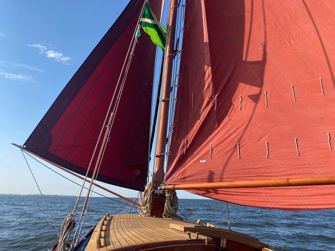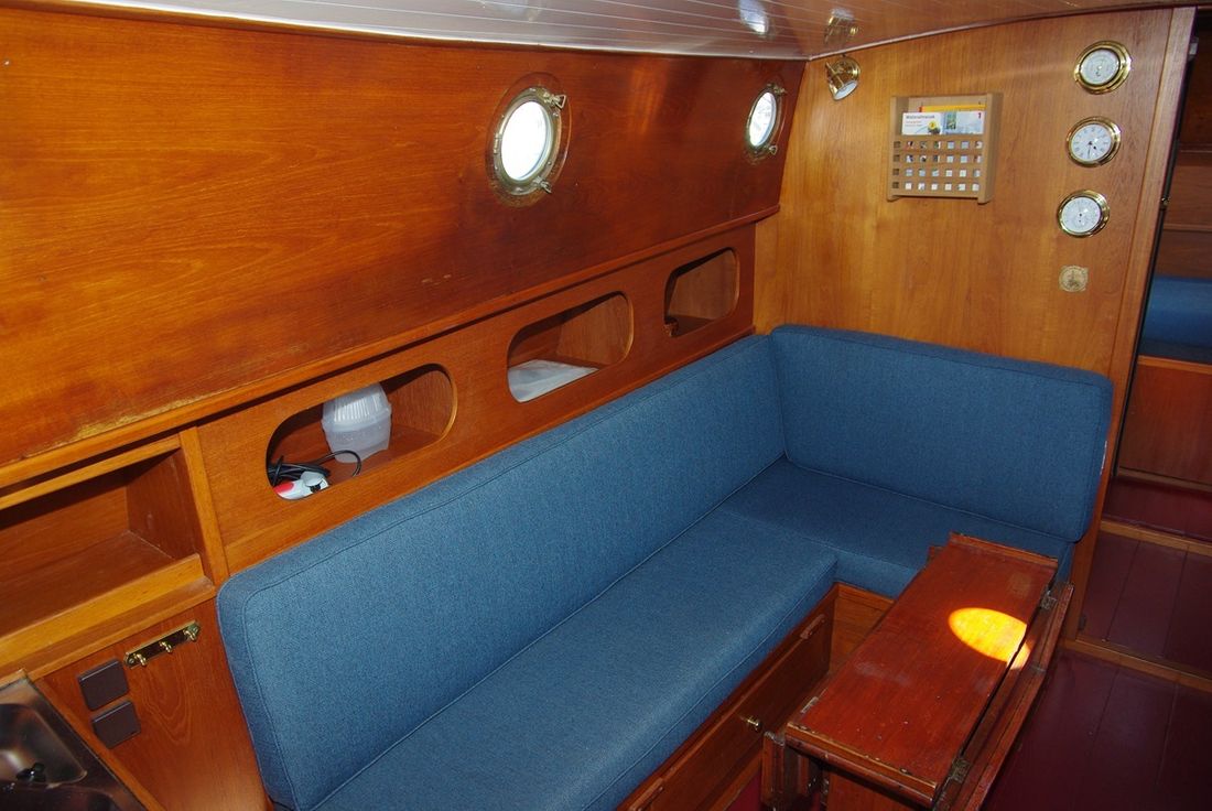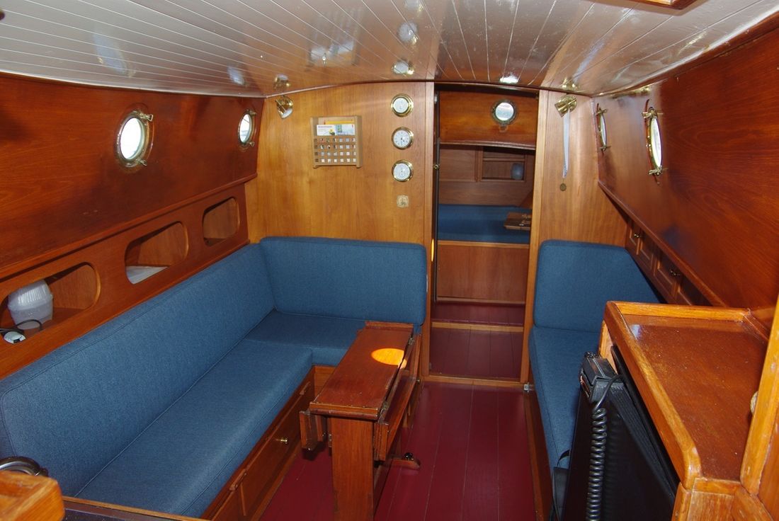 2024: renewed iroko cabin roof, oak floor, switch panel, heater, jib boom, leeboards and rudder treated and new starter motor and batteries installed by Schiffard Grou.