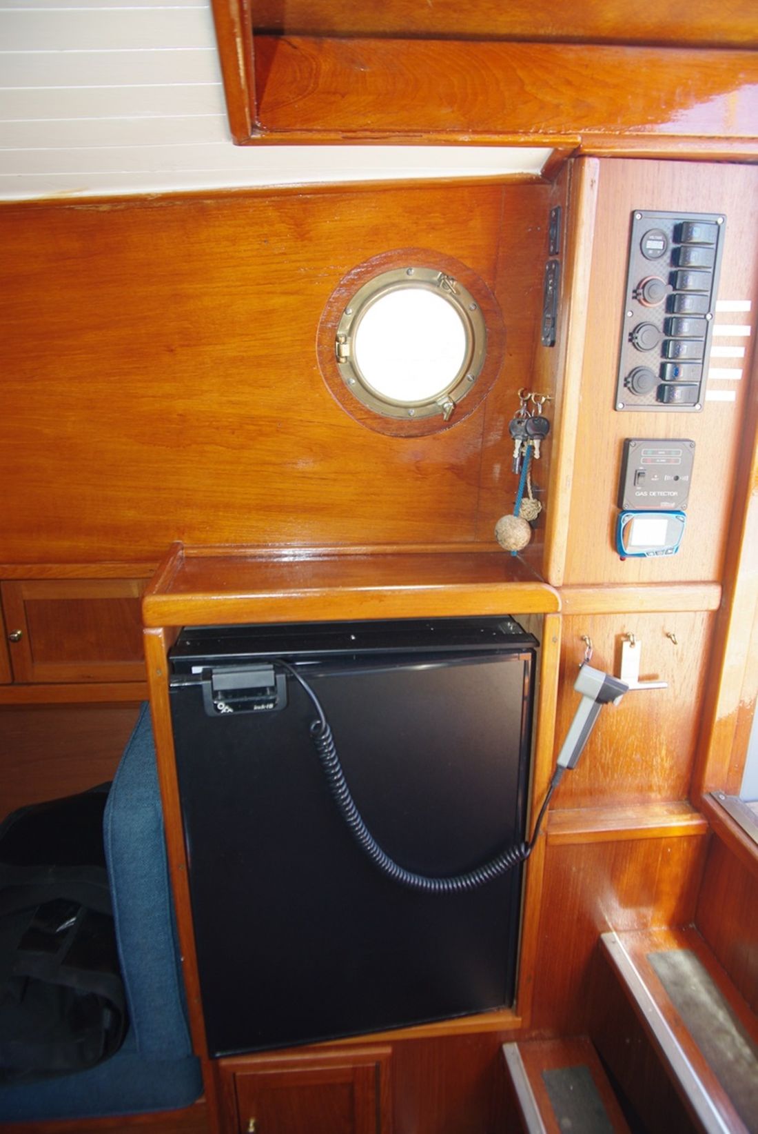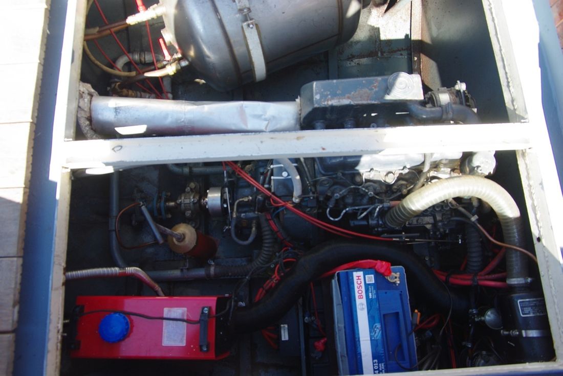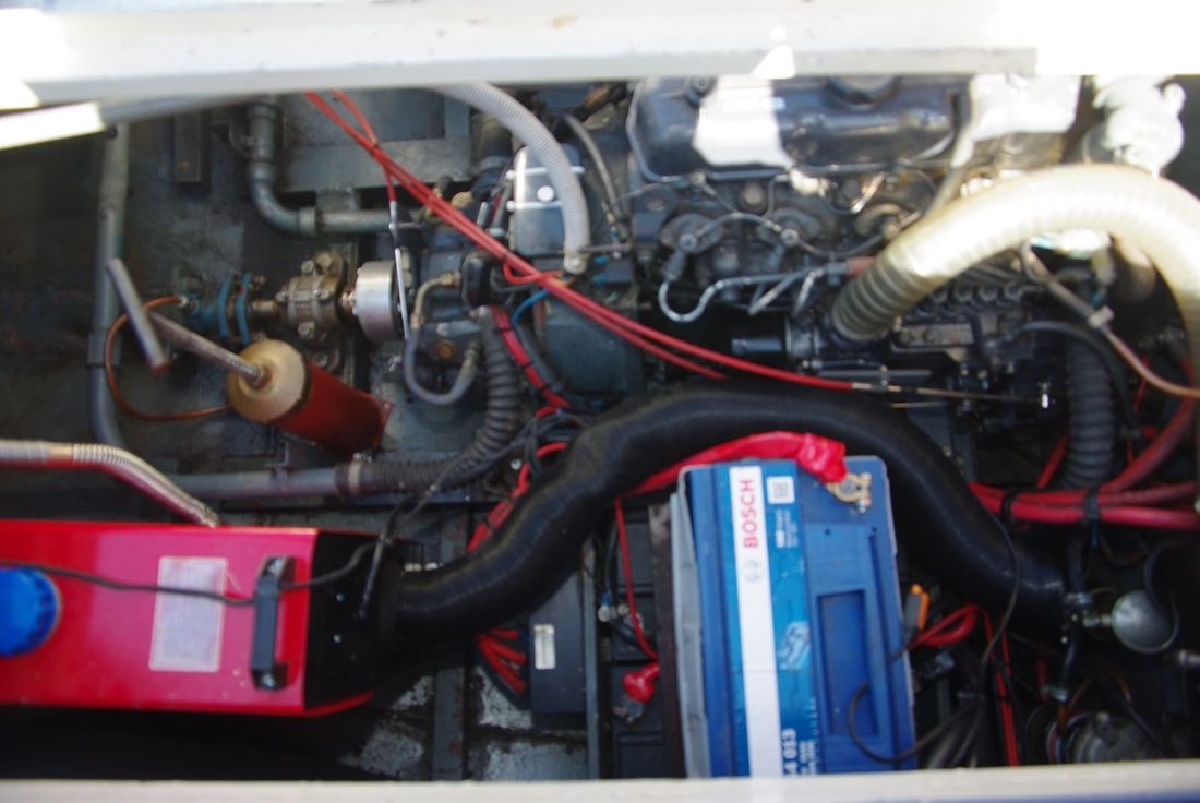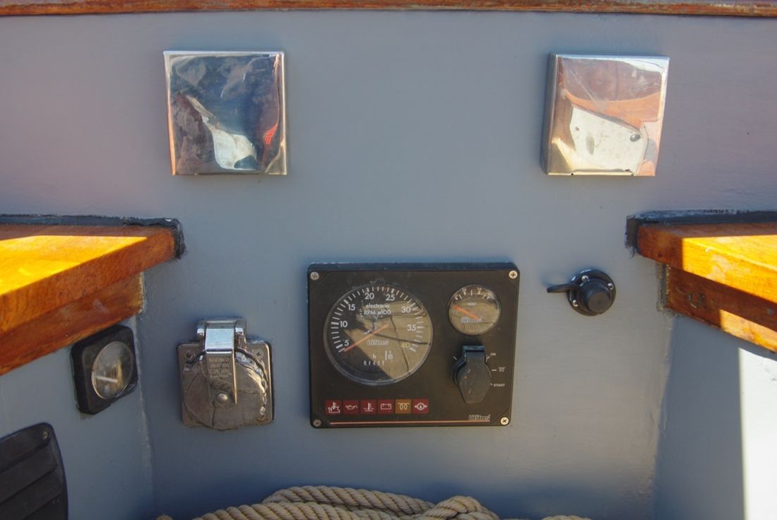 Engines Number of identical engines 1 Starting type electric Main engine Type inboard Brand Mitsubischi Model K4D Year 1995 Number of cylinders 4 Power 26 hp Fuel diesel Fuel consumption 2 litre/hour Brand gearbox PRM Drive Transmission shaft Propulsion propellor Comments Propulsion greased propeller shaft, (new grease 2024) Cooling system indirect Tank Fuel tanks Number 1 Total fuel tank(s) capacity 80 litre Measuring instruments Tachometer Comments Tachometer out of order, cable OK up to the dynamo. Bow and stern thruster Bow thruster electric Comments Bow thruster Loose remote control with cable/plug next to the ignition key. Mobile remote control Electricity Battery Comments Battery new 2024 Number 3 Battery monitor 12V -