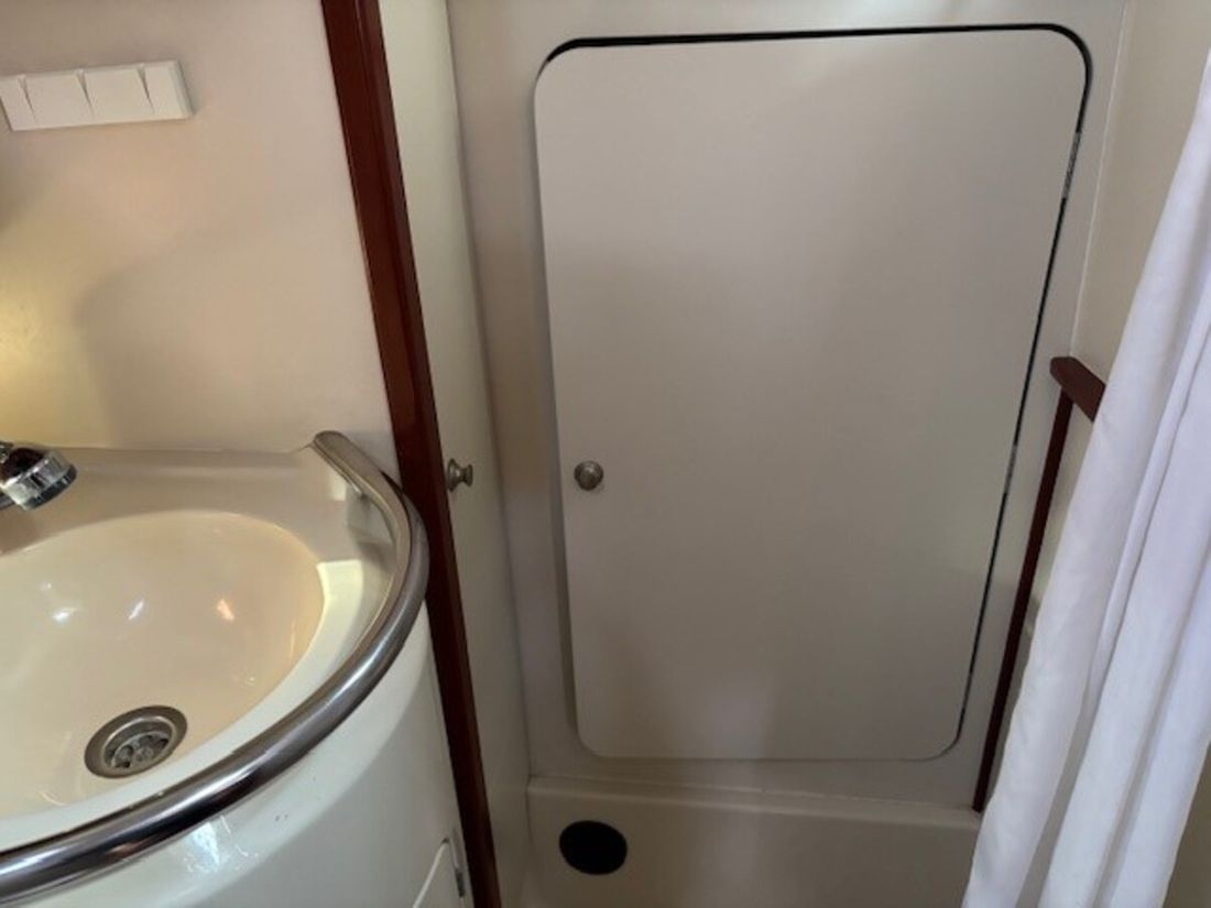 Anchor Comments Anchors & material Bruce anchor 15.kg with 50 m chain (2021) Number 1 Type Bruce Anchor windlass electric Deck equipment Sprayhood Comments Sprayhood Light gray (2020) Sea rails Swimming platform Swimming ladder Miscellaneous Fenders, lines -