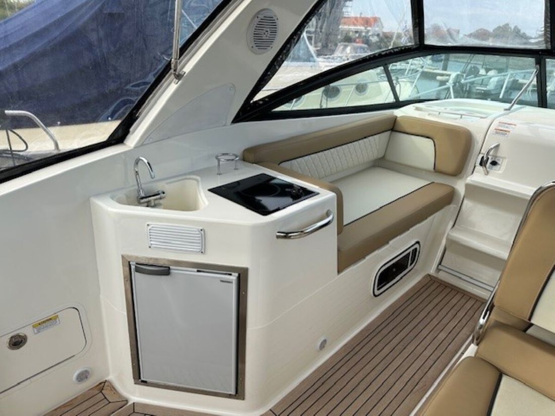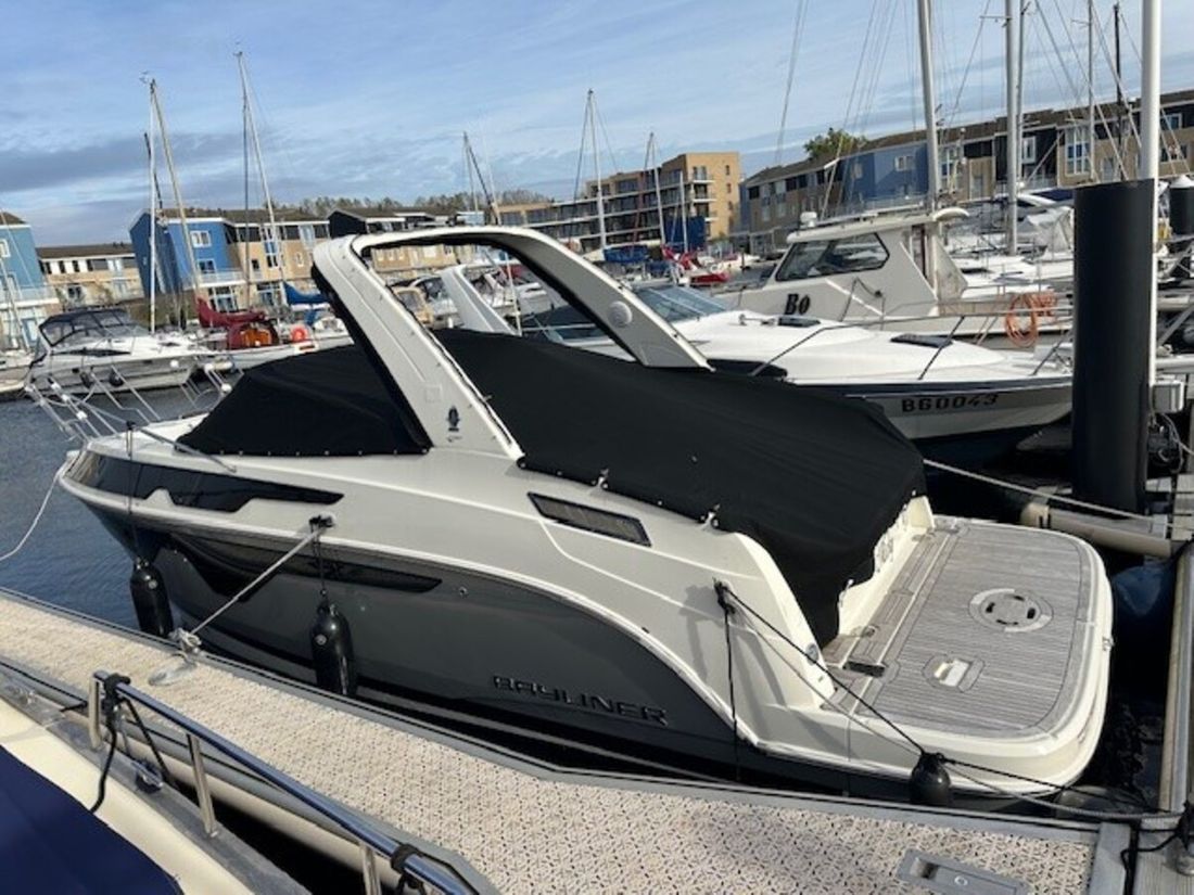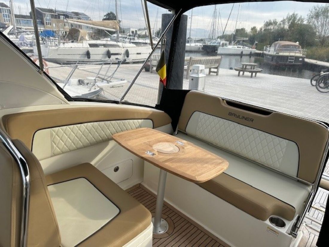 Delivered new Designer Bayliner Shipyard Brunswick Marine LLC Hull number 739 CE-category C CE max weight 3200 kg CE max engine 260 kW Passenger capacity 8 Hull deck superstructure Hull shape v-bottom Hull colour grey Deck colour grey Deck construction grp (polyester) Cockpit aft cockpit Dimensions and weights Maximum draught 94 cm Minimum draught 94 cm Waterline length 730 cm Displacement 3100 kg Ballast 820 kg Steering and Drift Limitation Steering system wheel Position steering system outside control Rudder single Keel/Lee board fixed keel Trimflaps -