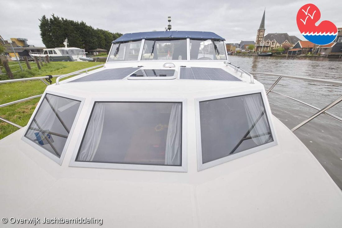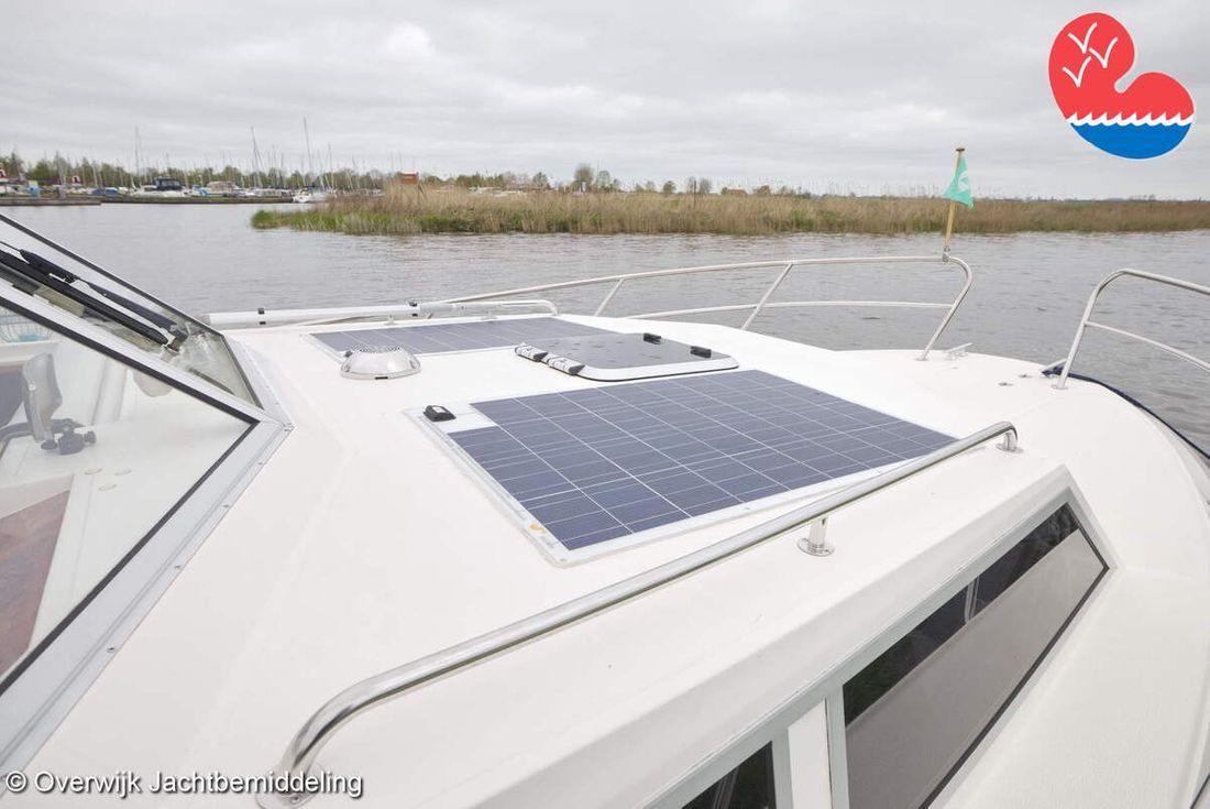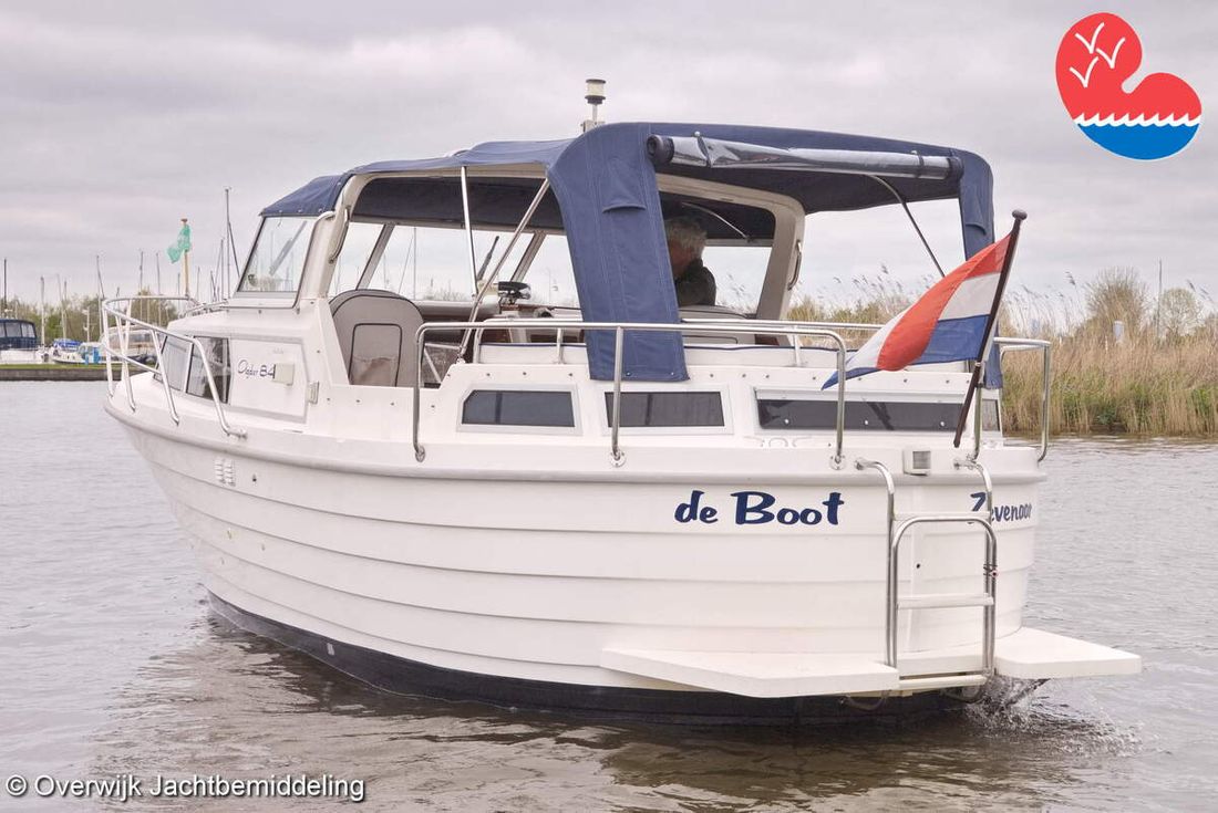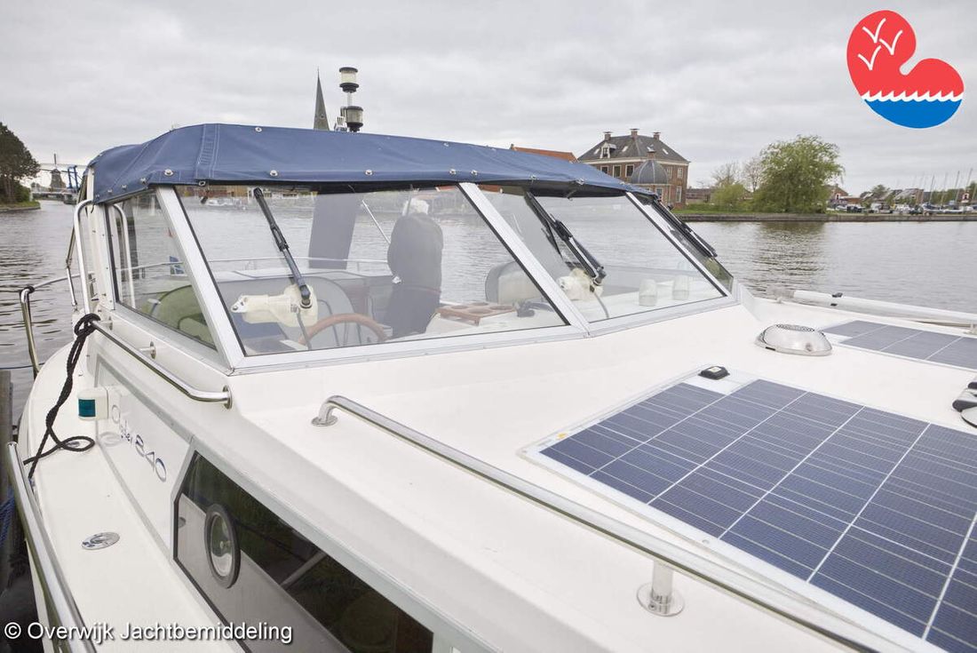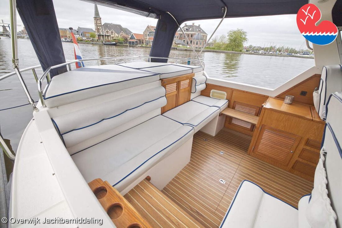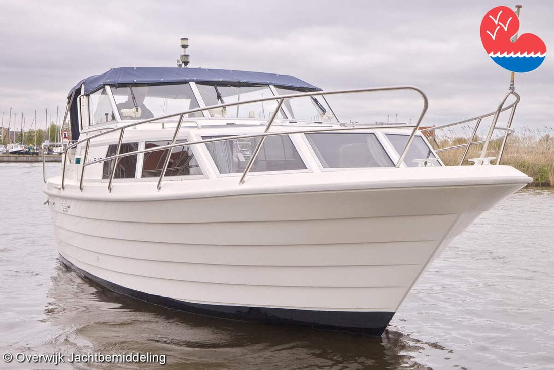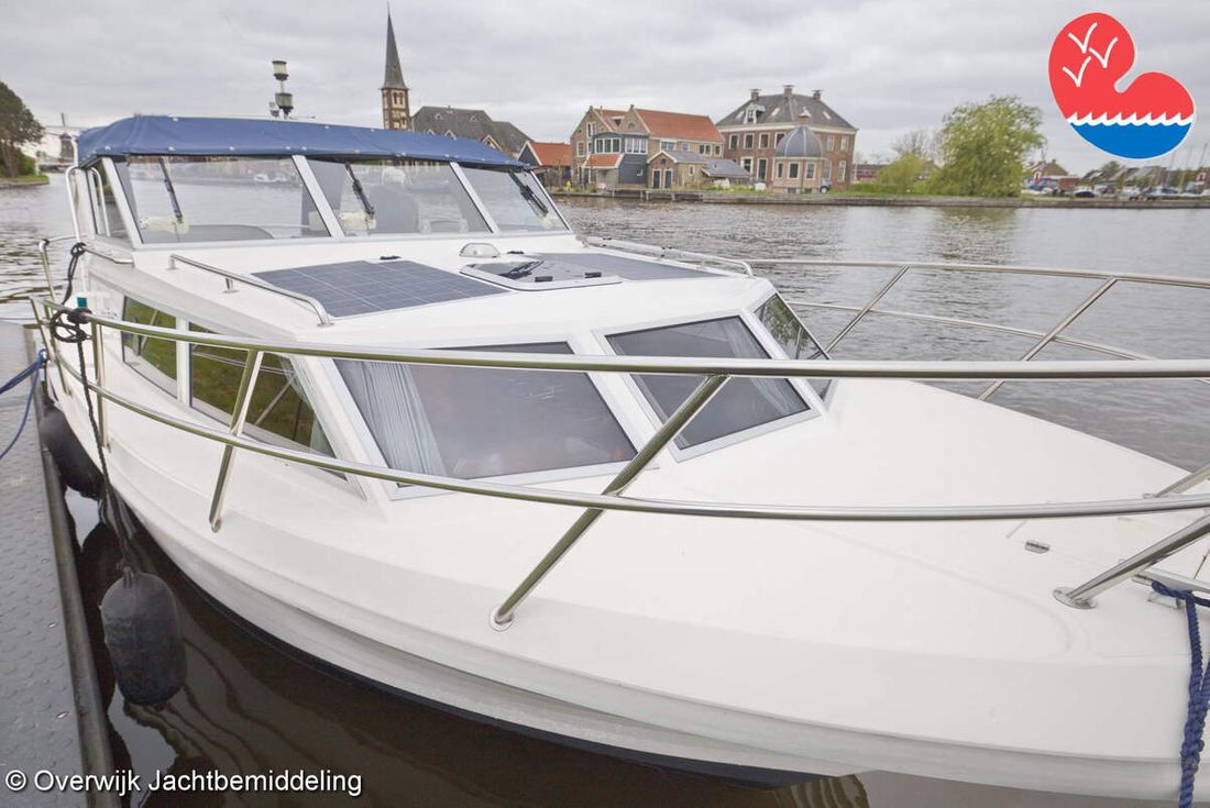 Spaces Comments Headroom Wheelhouse 192 cm - Toilet room 172 cm - Forward cabin 179 cm - Aft cabin 130 cm. Separate Dining area Cabins 1 Comments Berths Bed aft cabin 200 x 140 cm - bed forward cabin (dinette) 240 x 155 cm. Layout and spaces inside Open cockpit with various benches and folding table. On the starboard side the steering position and on the port side various cupboards and the co-pilot's place - Aft cabin with a double bed, bench and cupboards. - Forward cabin with kitchen on the port side. Opposite the toilet room with electric toilet and washbasin. - Forepeak with round seat that can also be used as a double bed. Decoration Type interior Classic, warm Color upholstery white Mattresses Cushions Curtains Water Water tank & material Capacity 200 litre Water tank material plastic Inhoud 70 litre Waste water tank material plastic Waste water tank Waste water tank drainpump Deck suction Water system pressure Plumbing Toilets 1 Comments Toilets Jabsco. Manual Entertainment Radio/CD player Comments Radio/CD player Kenwood. Kitchen Cooker & fuel Number 3 Cooking fuel gas Fridge & power source Comments Fridge & power source Compressor refrigerator (new 2024) Capacity 90 litre Power source electric Freezer Comments Freezer In refrigerator. Capacity 10 litre Climate control Heating Webasto Airtop 3500 Diesel. hot air -