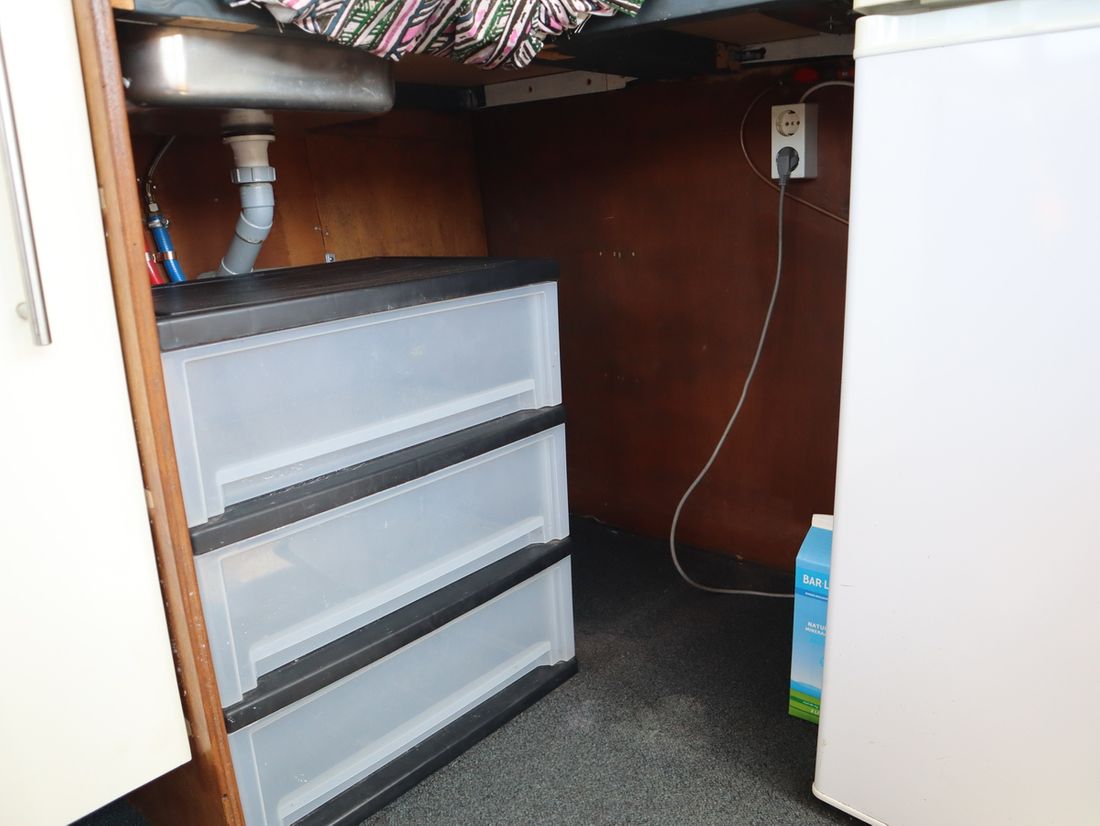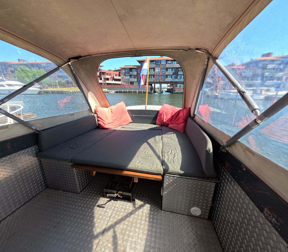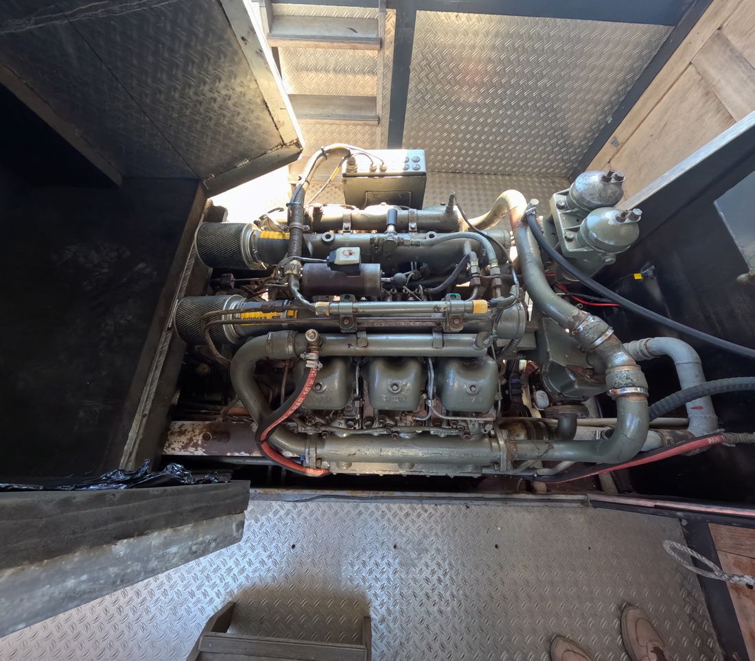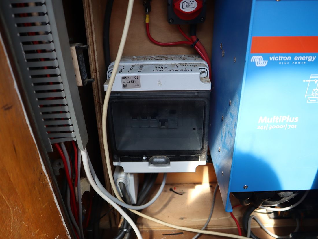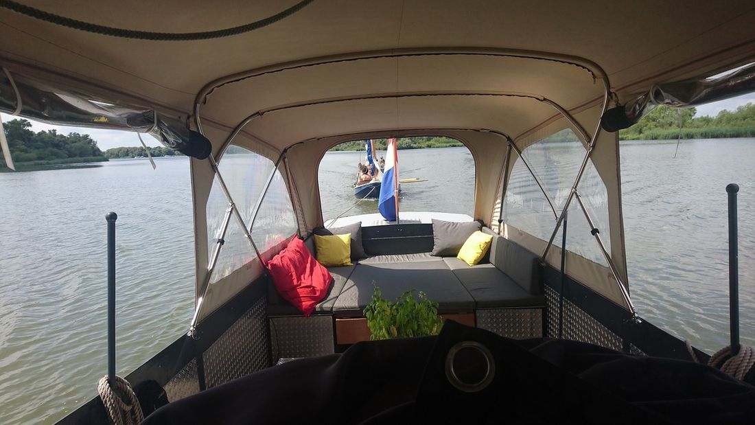 Engines Number of identical engines 1 Starting type electric Main engine Type inboard Brand MWM Model TD20 Year 1984 Number of cylinders 6 Power 120 hp Fuel diesel Fuel consumption 3 litre/hour Brand gearbox Reintjes Drive Transmission shaft Propulsion propellor Tank Fuel tanks Number 2 Total fuel tank(s) capacity 400 litre Fuel tank material polyethyleen Performance Max speed 19 km/h Cruising speed 12 km/h Measuring instruments Tachometer Oil pressure gauge Temperature gauge Electricity Battery Number 8 Battery charger Alternator Inverter Capacity 3000 Voltmeter Shore power Shore power cable Solar panel Capacity 740 Consumption monitor 24V 220V -