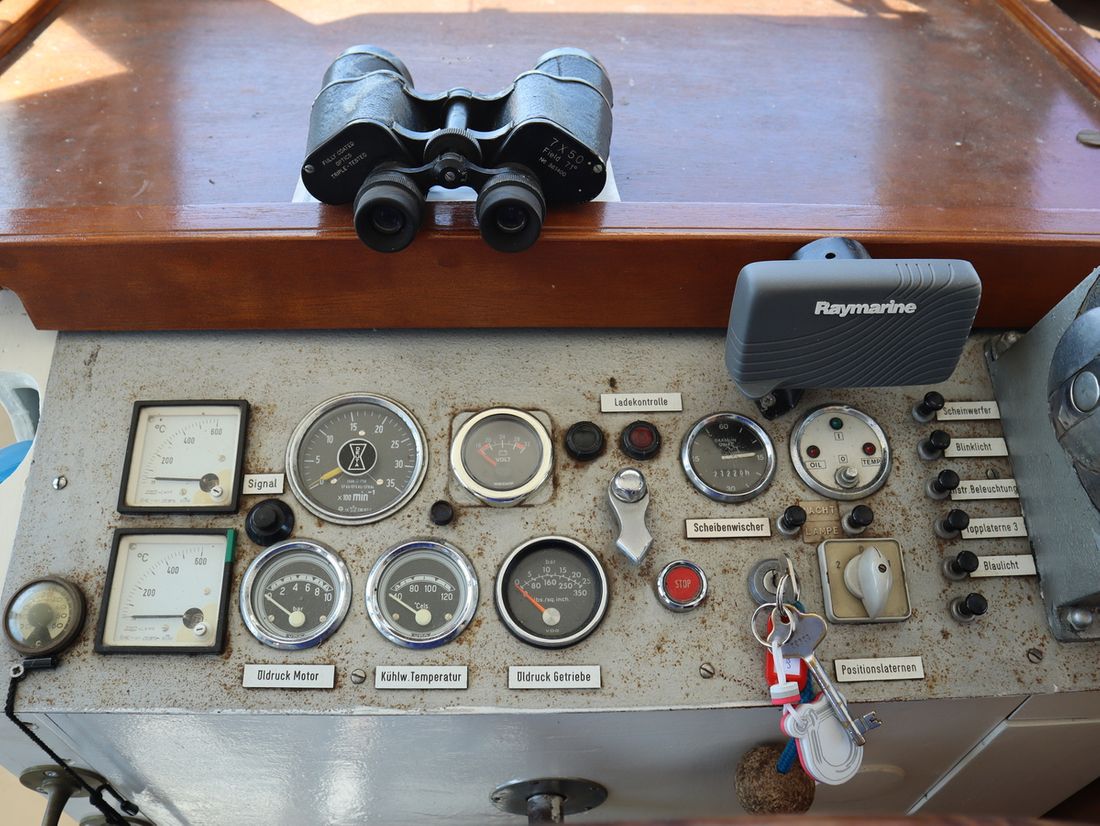 Delivered new Designer Kriegerman, Berlijn Shipyard Kriegerman, Berlijn Hull deck superstructure Hull shape chine Hull colour black Deck colour white Deck construction steel Cockpit aft cockpit Steering and Drift Limitation Steering system wheel Position steering system inside control Rudder single -