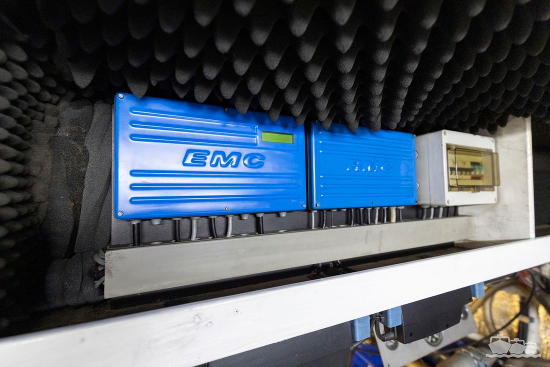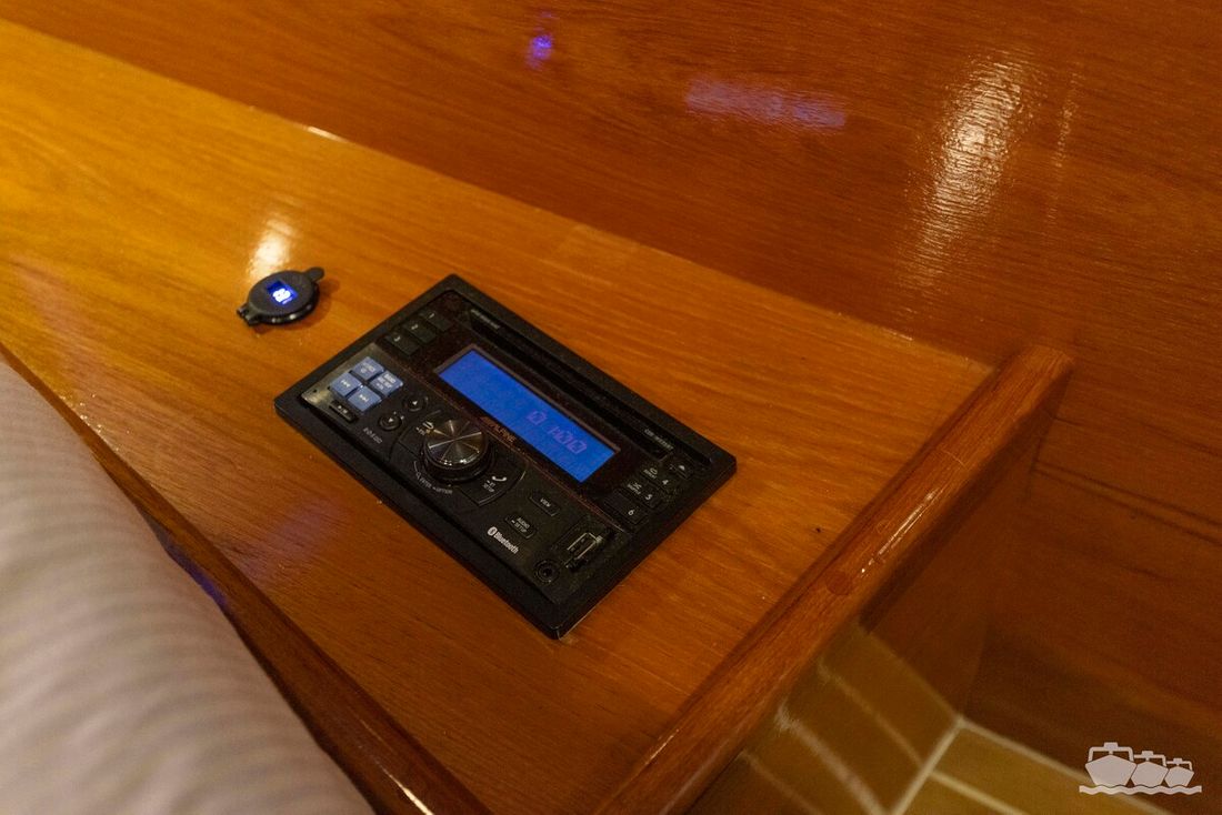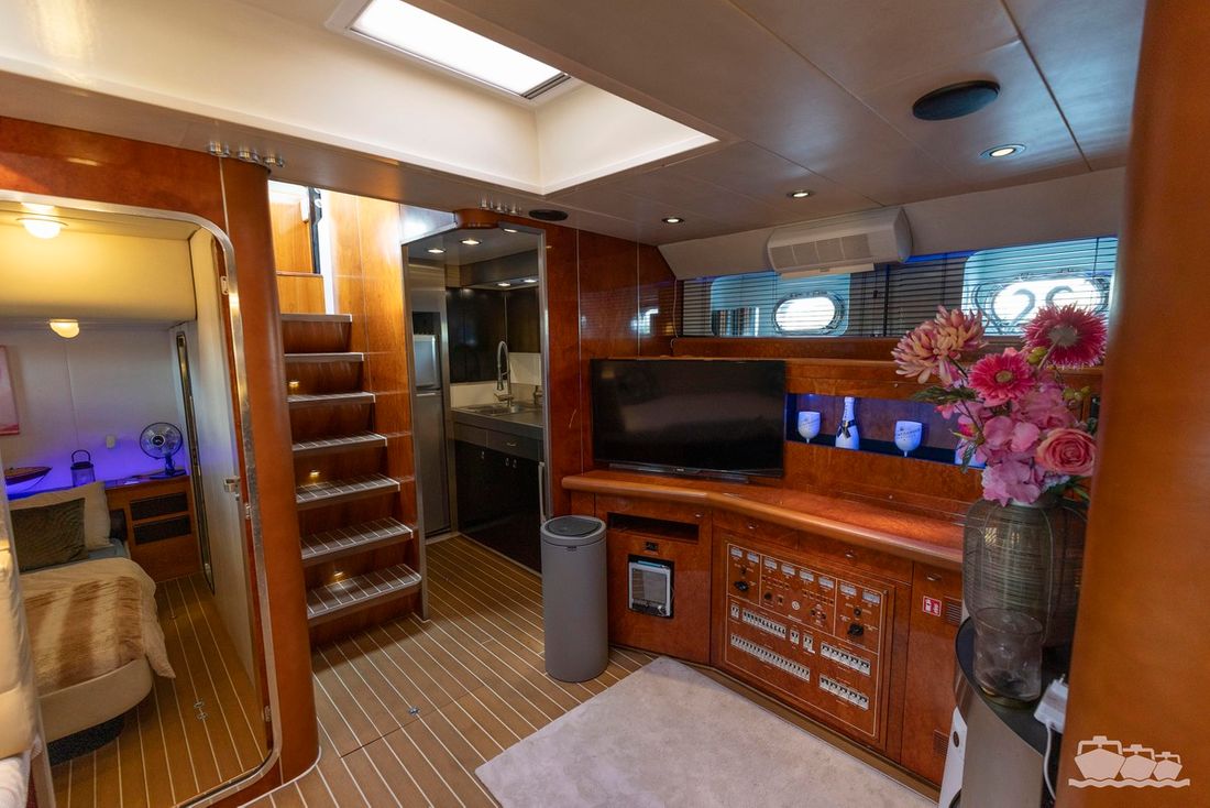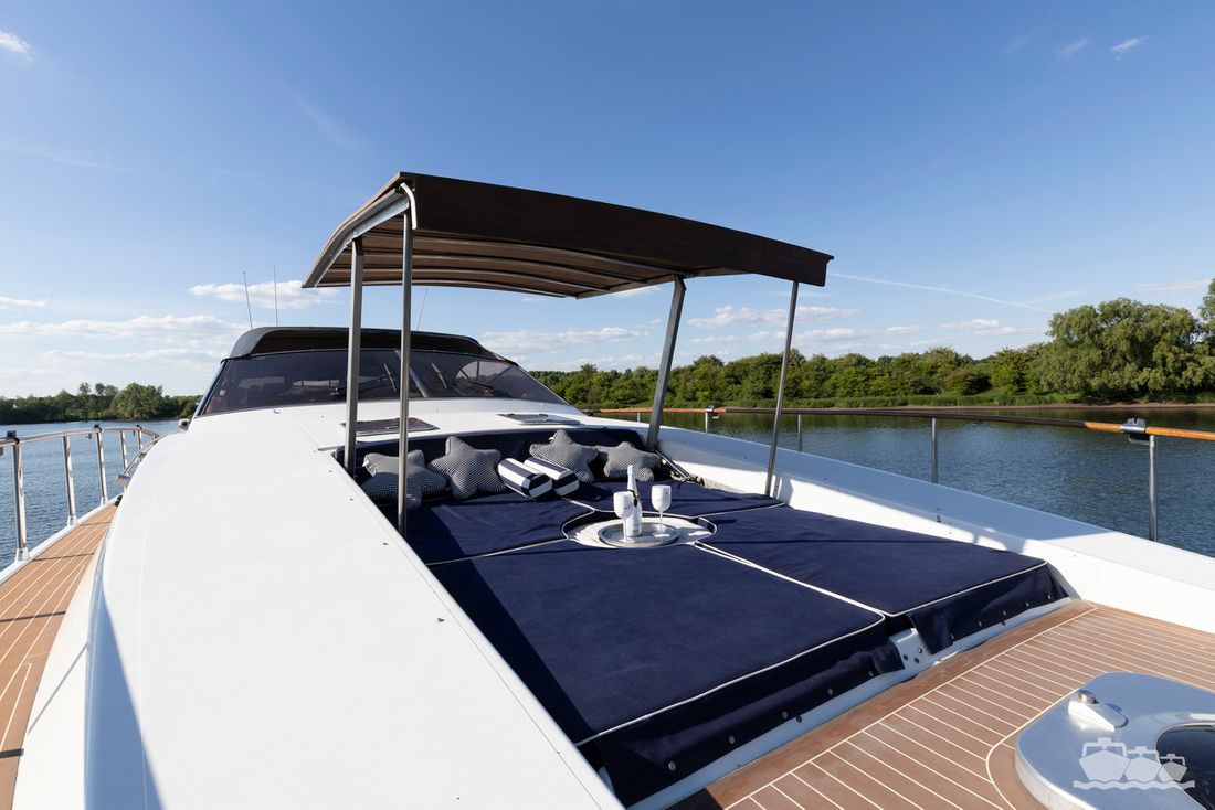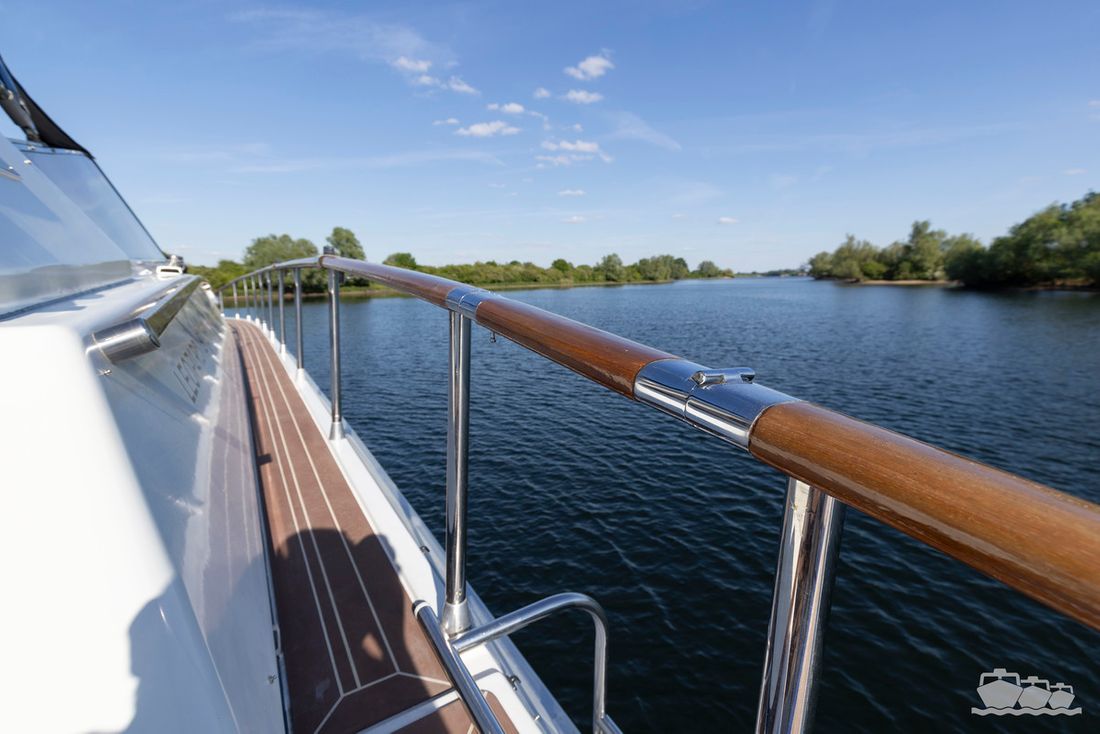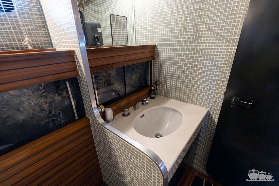 The two V12 diesel engines, each with 970 hp, have been completely overhauled and have only run for 485 hours since the overhaul. The standard engine control has been replaced by a fully electronic ?fly-by-wire? control system from Hydronautica. This system allows you to easily control the two bow thrusters, the stern thruster and both engines via a joystick on the dashboard or a wireless remote control, for example from the gangway or any other place on the ship.