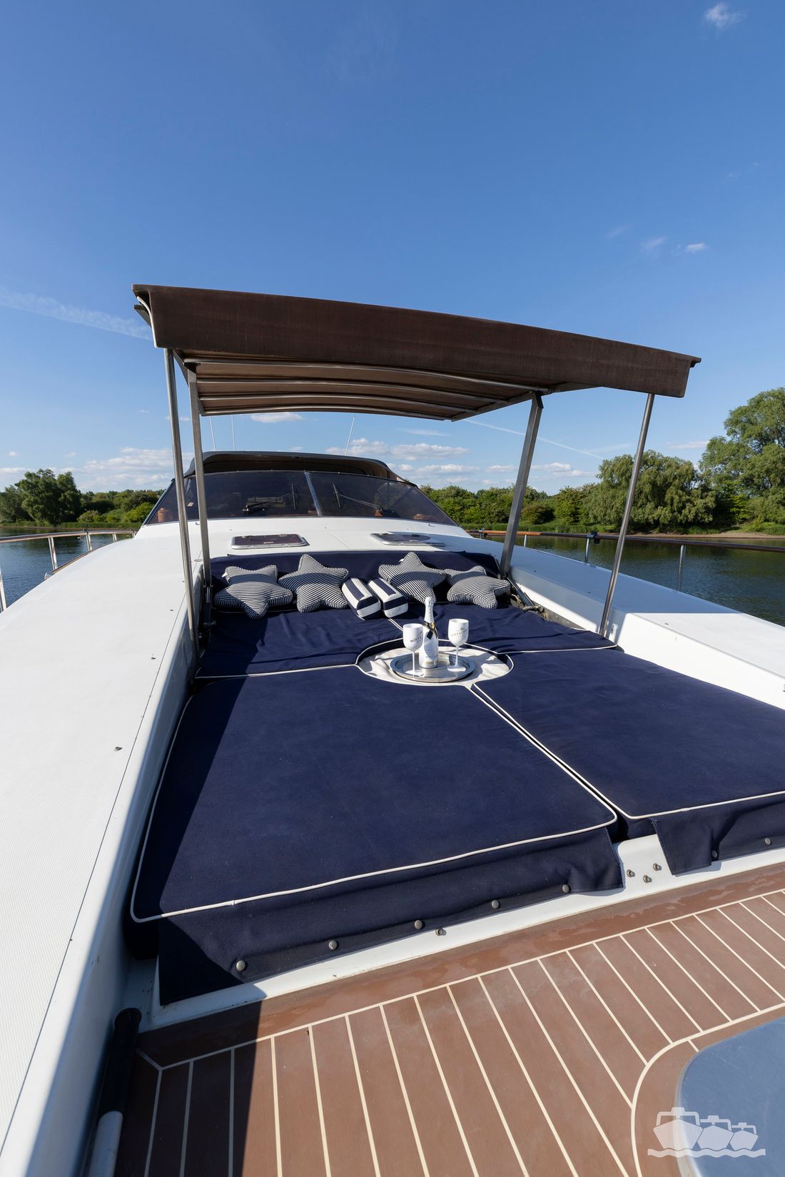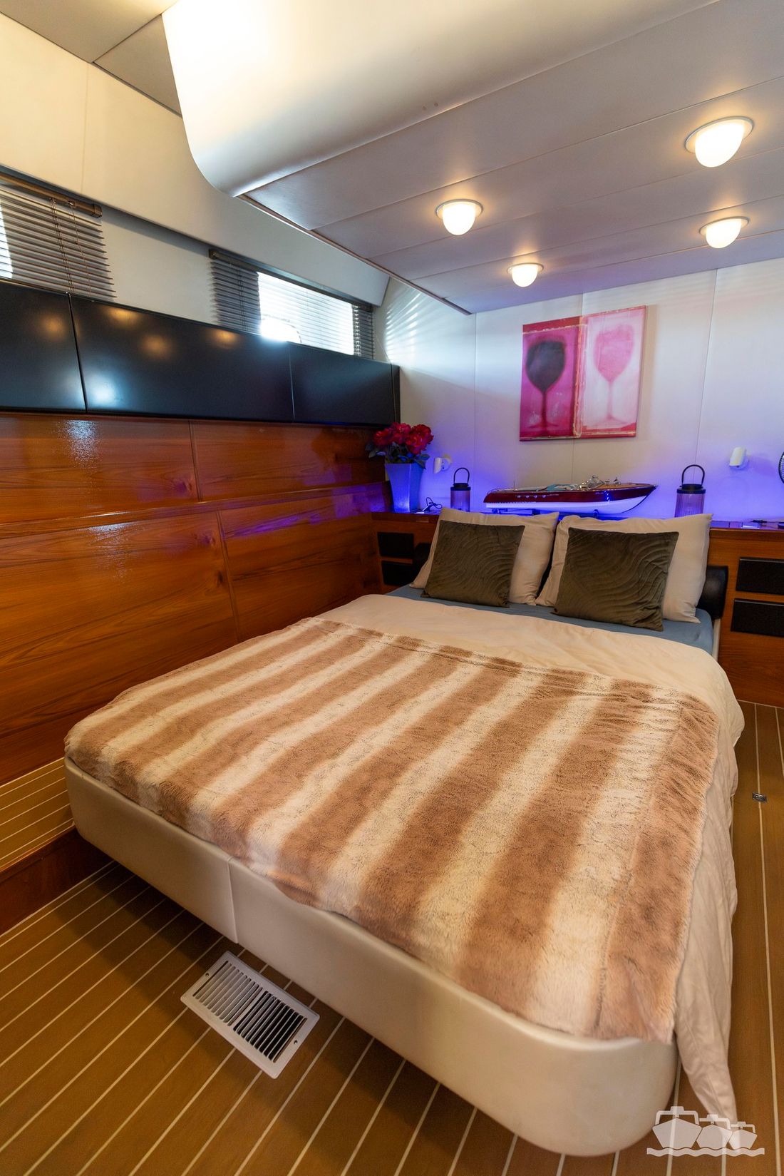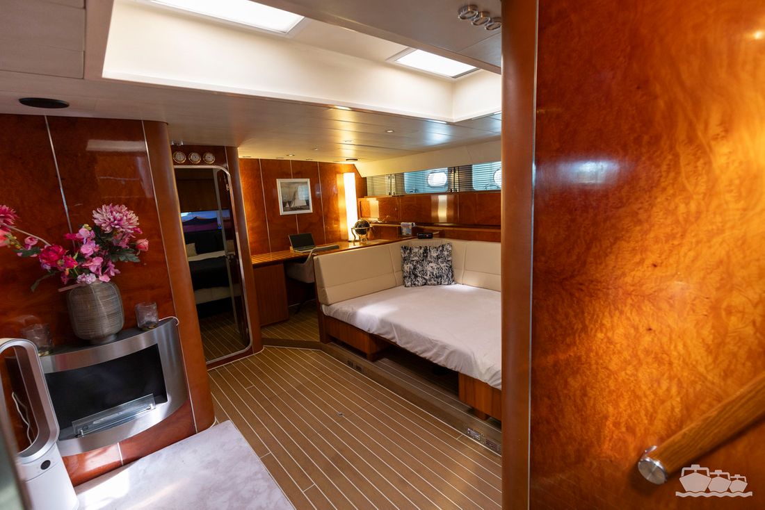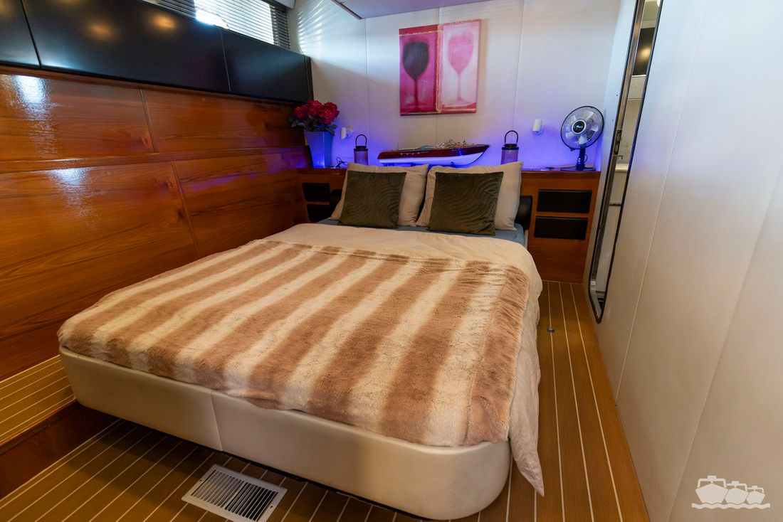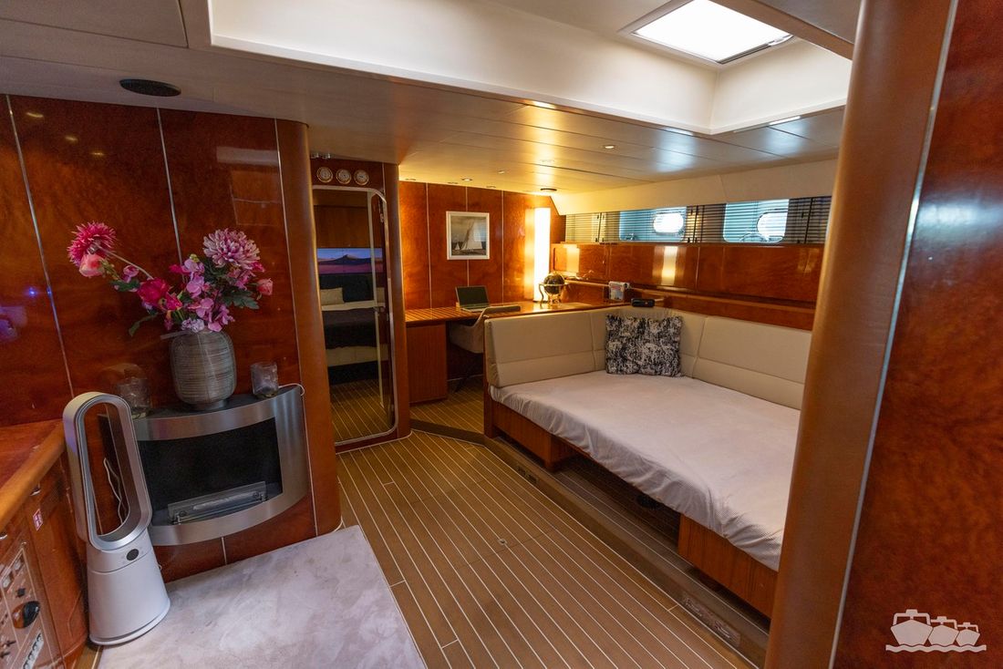 The two V12 diesel engines, each with 970 hp, have been completely overhauled and have only run for 485 hours since the overhaul. The standard engine control has been replaced by a fully electronic ?fly-by-wire? control system from Hydronautica. This system allows you to easily control the two bow thrusters, the stern thruster and both engines via a joystick on the dashboard or a wireless remote control, for example from the gangway or any other place on the ship.