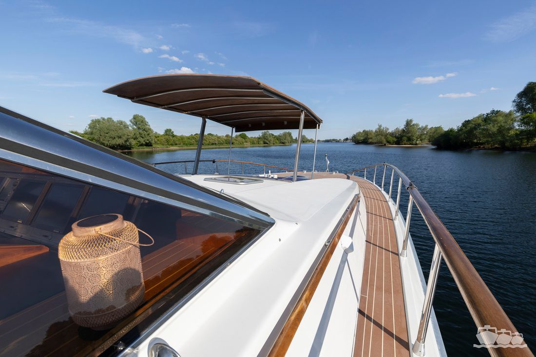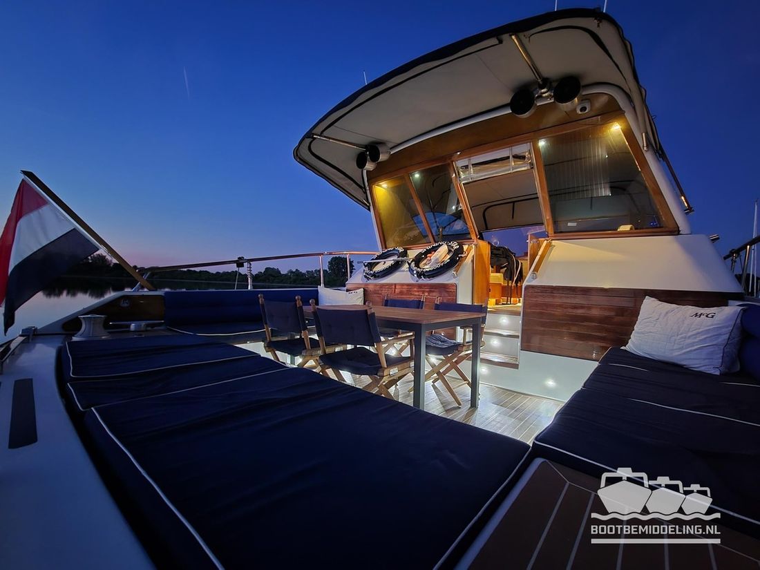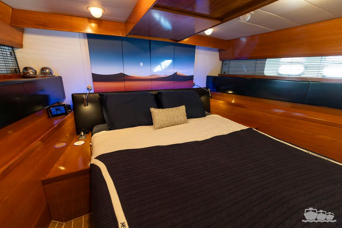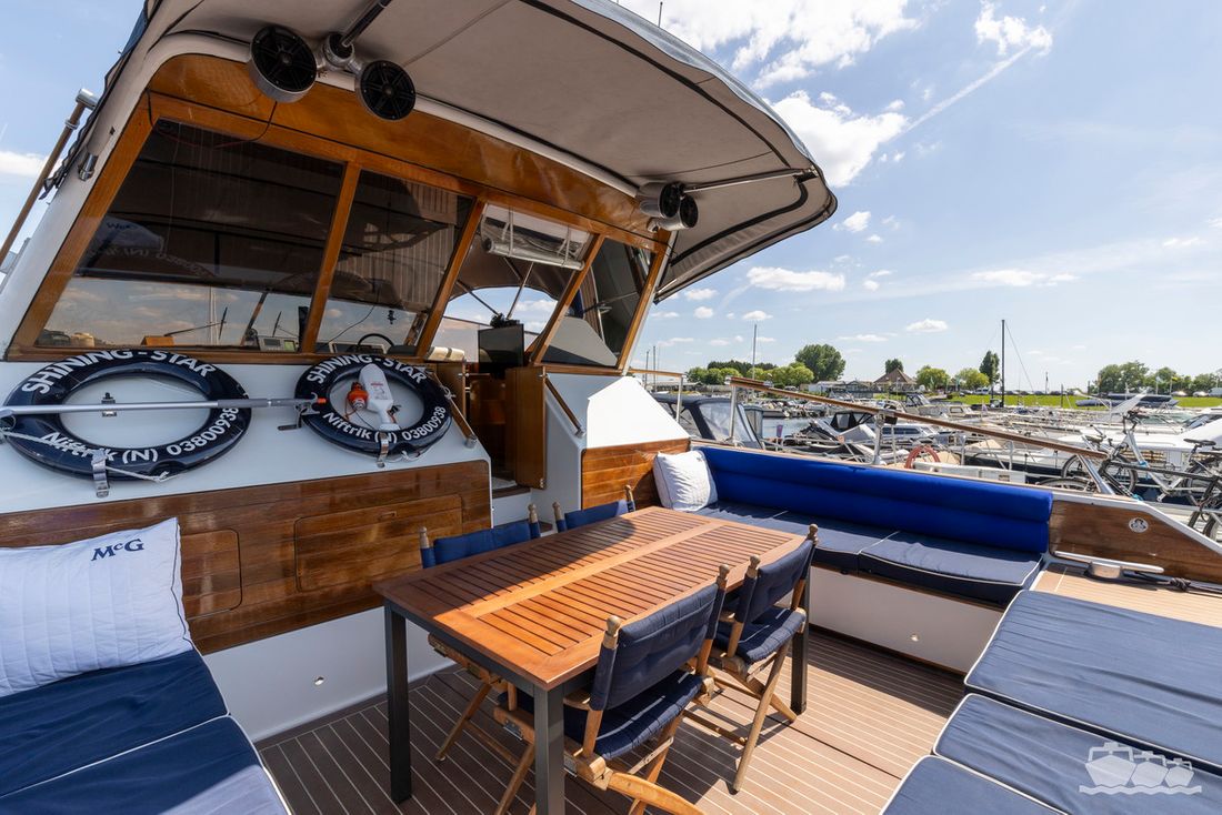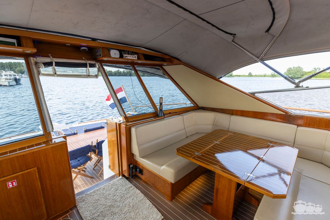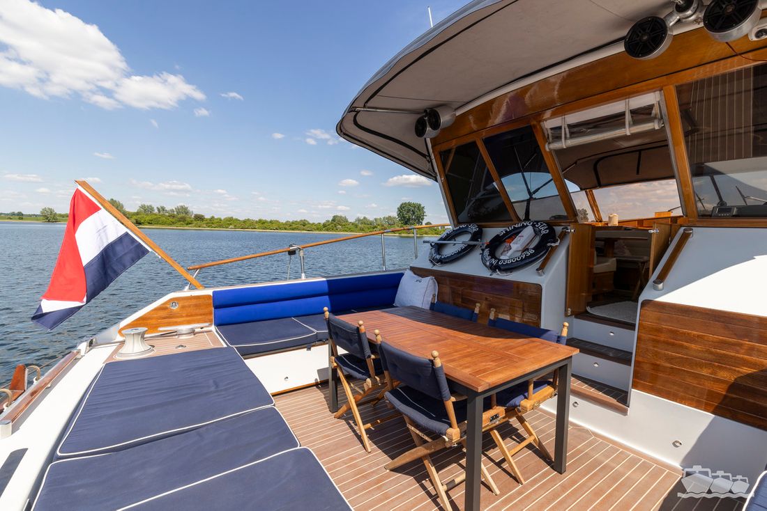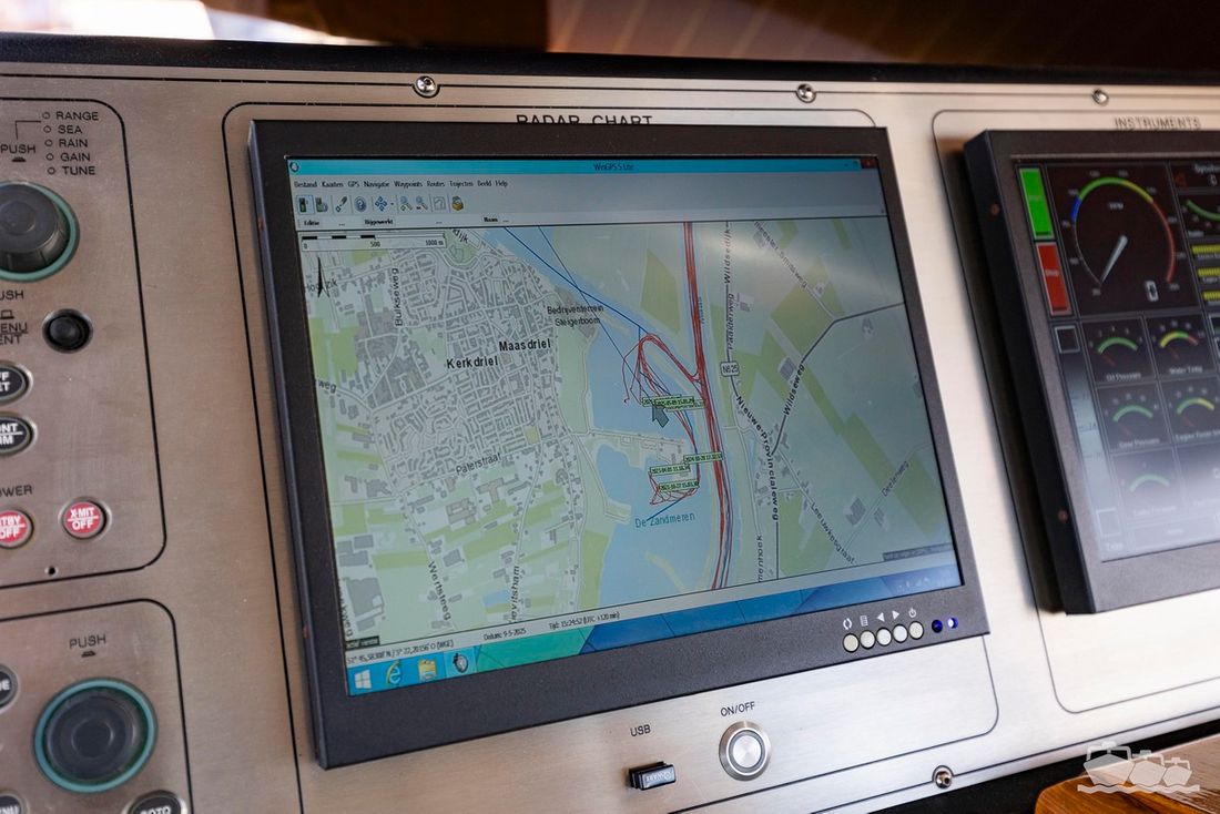 The entire dashboard has been renewed, with the old-fashioned dials replaced by digital screens and the switches replaced by modern push buttons. The list of innovations is not limited to technology, as the interior and exterior have also been completely refurbished. Among other things, all decks have been fitted with Flexiteek, the sprayhood has been renewed, a complete winter tent has been made and this spring the entire underwater hull has been stripped and fitted with new antifouling.