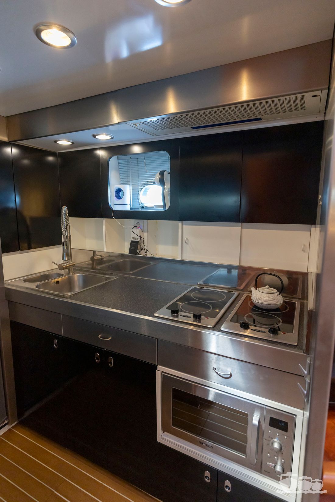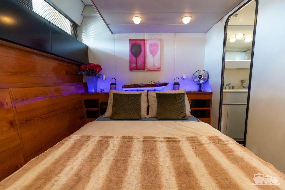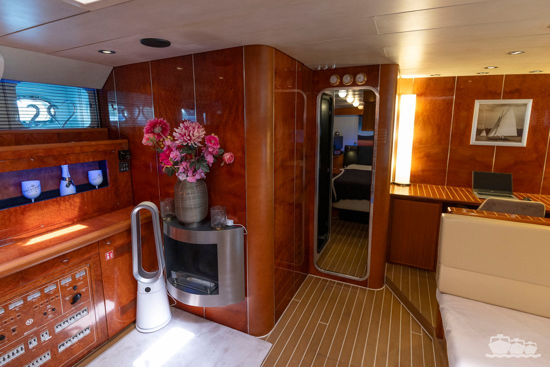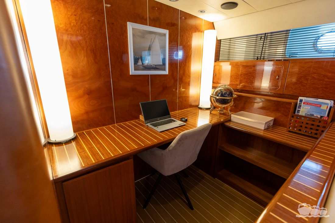 Partly due to the presence of a 12 kW generator, 3000W inverter, double hot air heating, an air conditioning system, washing machine/dryer, a fully equipped kitchen and a spacious saloon including a workspace, this is an ideal candidate for a longer stay or permanent residence on board.