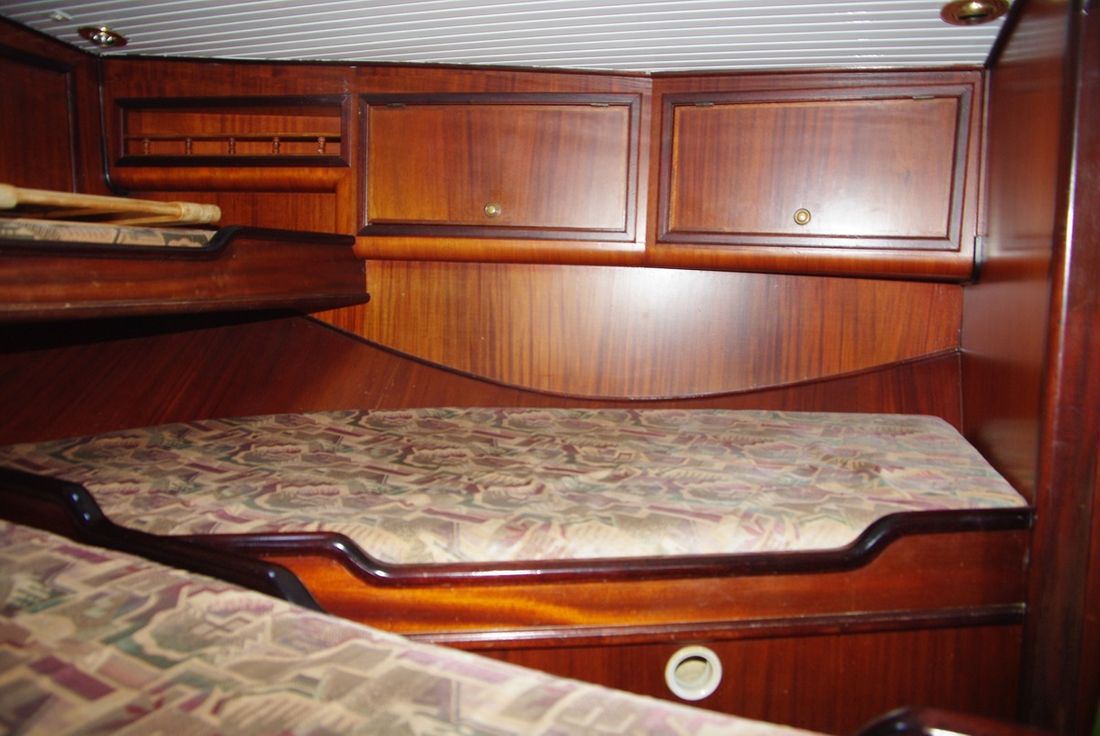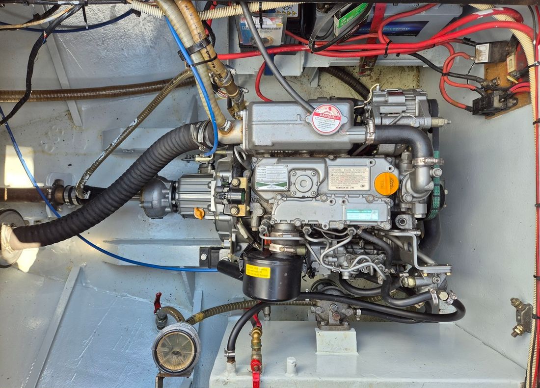 Engines Number of identical engines 1 Starting type electric Main engine Type inboard Brand Yanmar Model 3YM30 Year 1991 Number of cylinders 3 Power 27 hp Fuel diesel Fuel consumption 2 litre/hour Brand gearbox Kanzaki Drive Transmission shaft Propulsion propellor Cooling system indirect Tank Fuel tanks Number 1 Total fuel tank(s) capacity 80 litre Fuel tank material steel Measuring instruments Fuel tank gauge Tachometer Electricity Battery Number 3 Battery charger Capacity 30 Alternator Voltmeter Shore power Shore power cable 12V -
