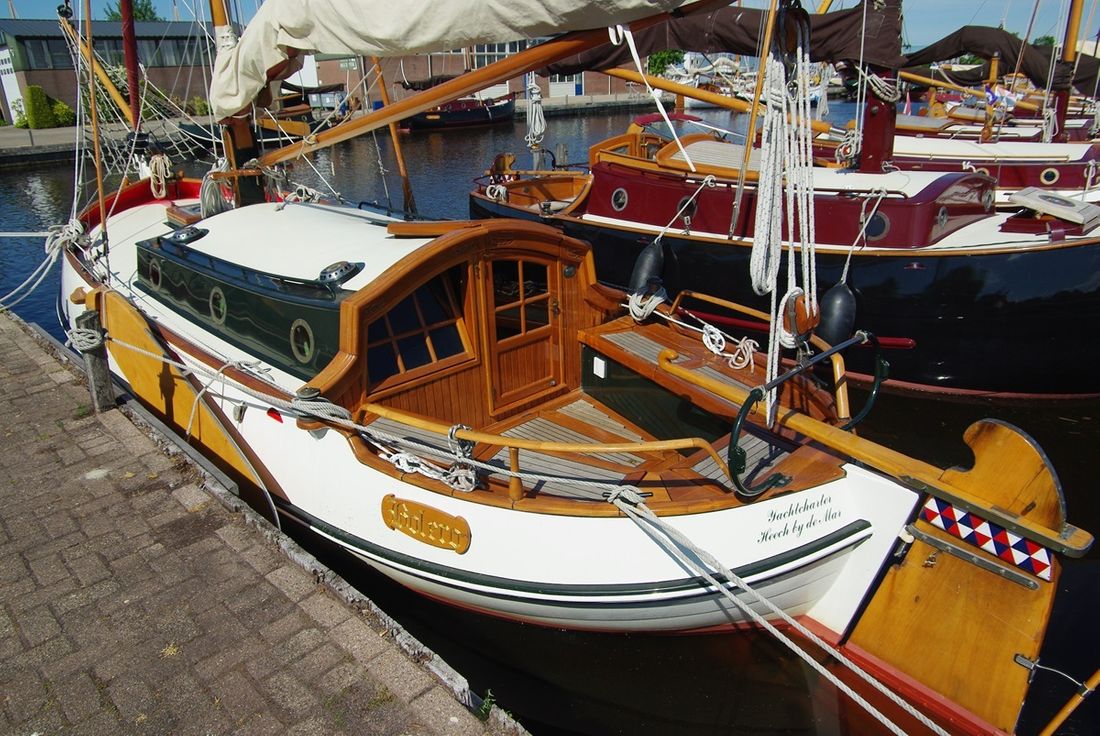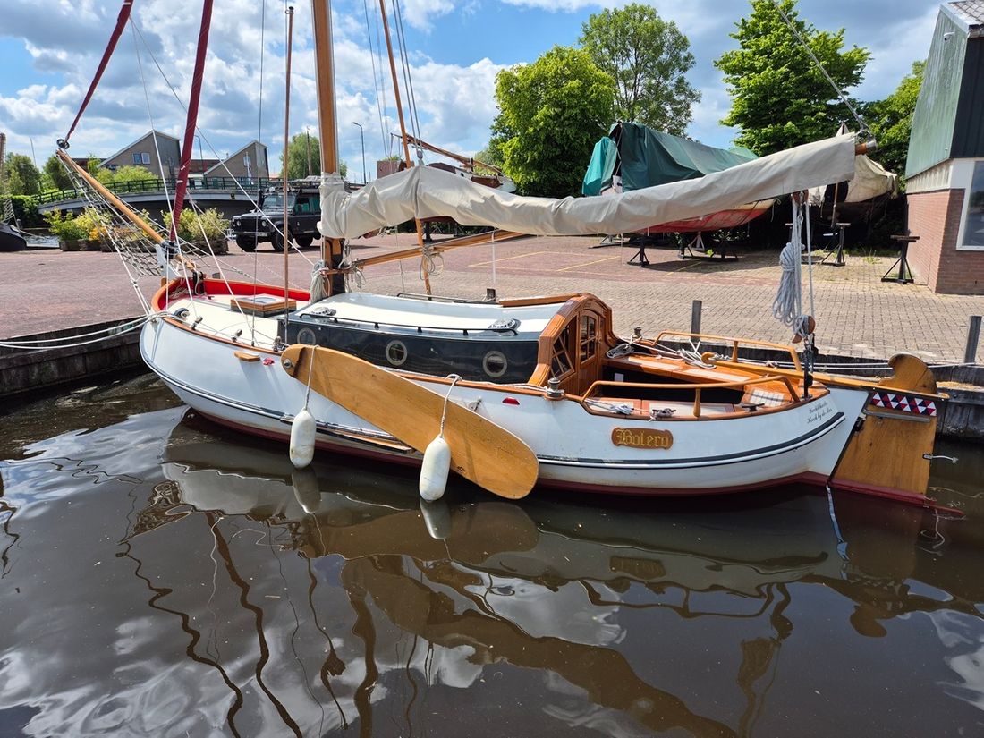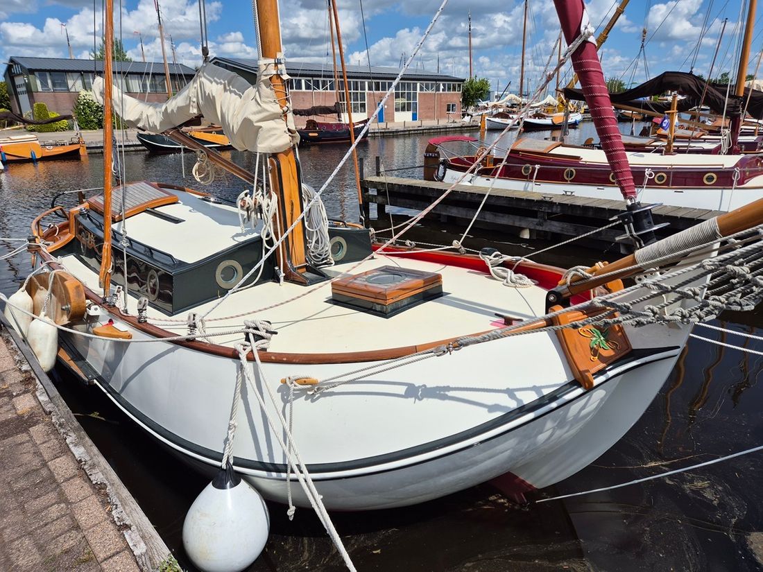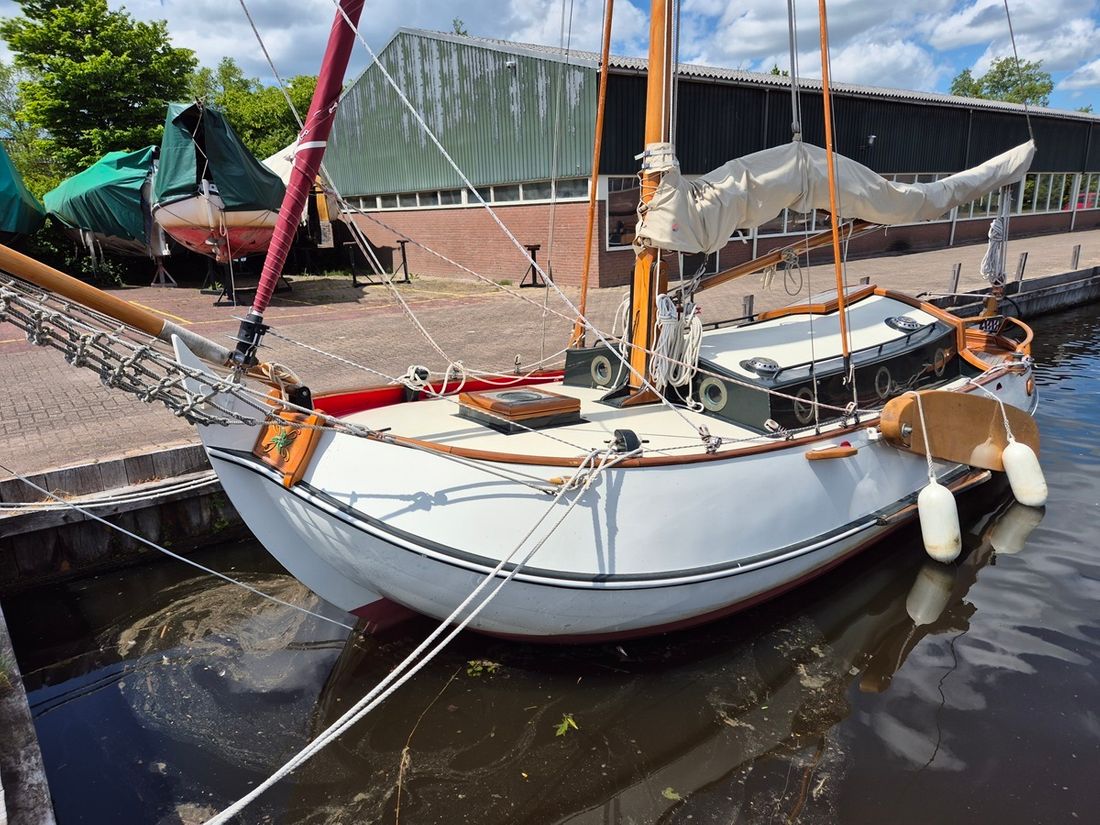 Delivered new Designer Gipon Shipyard van Rijnsoever en Heech by de Mar Hull deck superstructure Hull shape flat bottom Hull colour white Deck colour green Deck construction steel Cockpit aft cockpit Open cockpit Steering and Drift Limitation Steering system helm Position steering system outside control Rudder single Keel/Lee board leeboards Drift restriction controls manual -