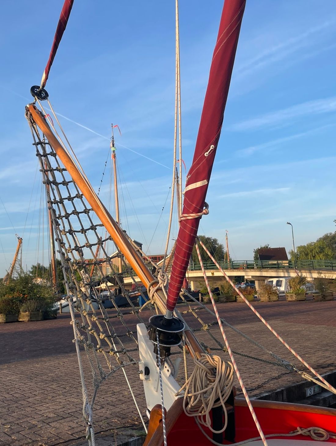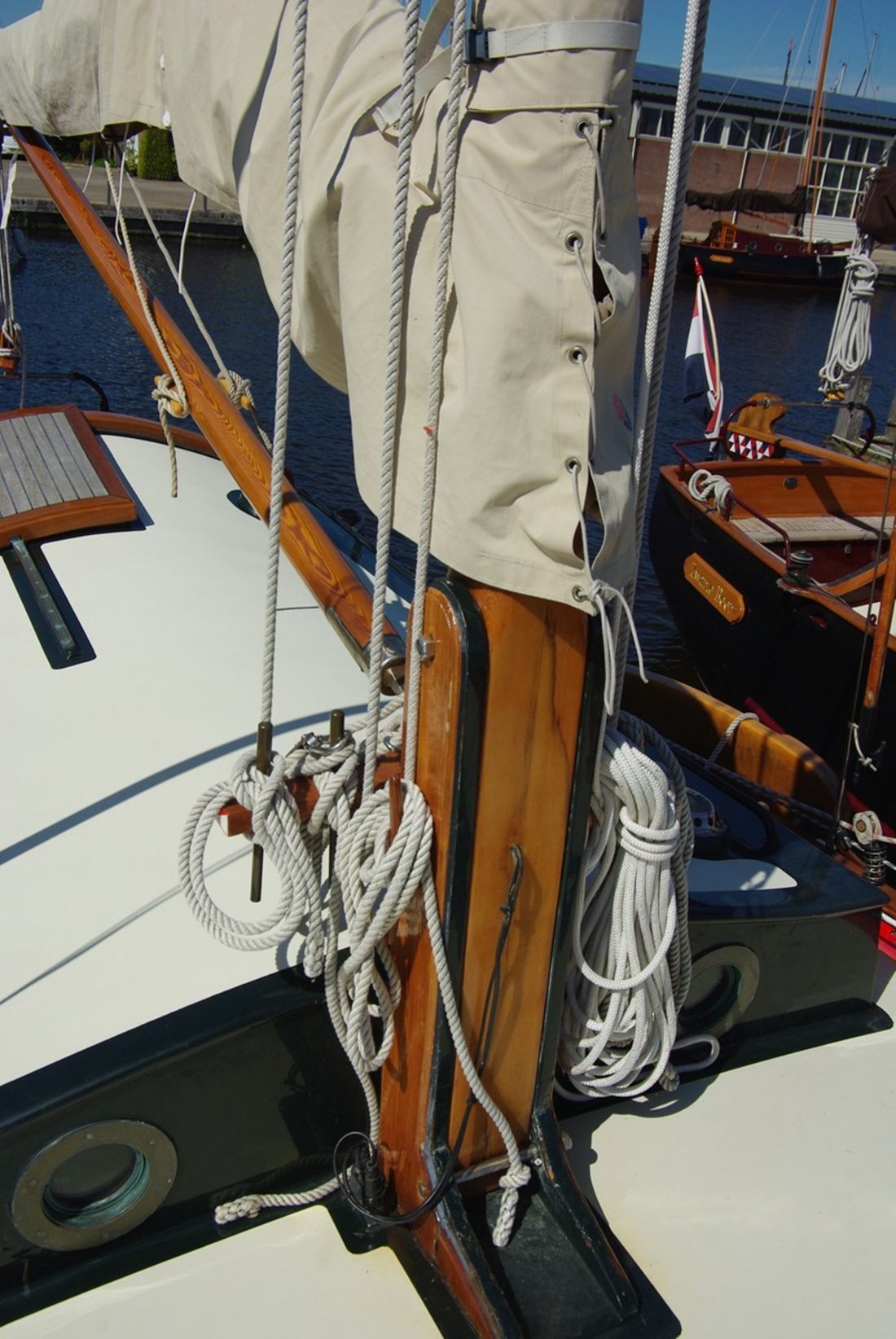 General Sailplan type gaff Number of masts 1 Spars material wood Standing rig steel wire Sail surface 41 m² Number of sails 3 Sails material dacron Manufacturer Miedema Sails Heeg Main and stern sails Main sail Sails manufacturer Miedema Sails Headsails Jib Furling foresail Brand Furling foresail Profurl C350 Flying jib -