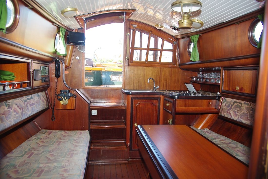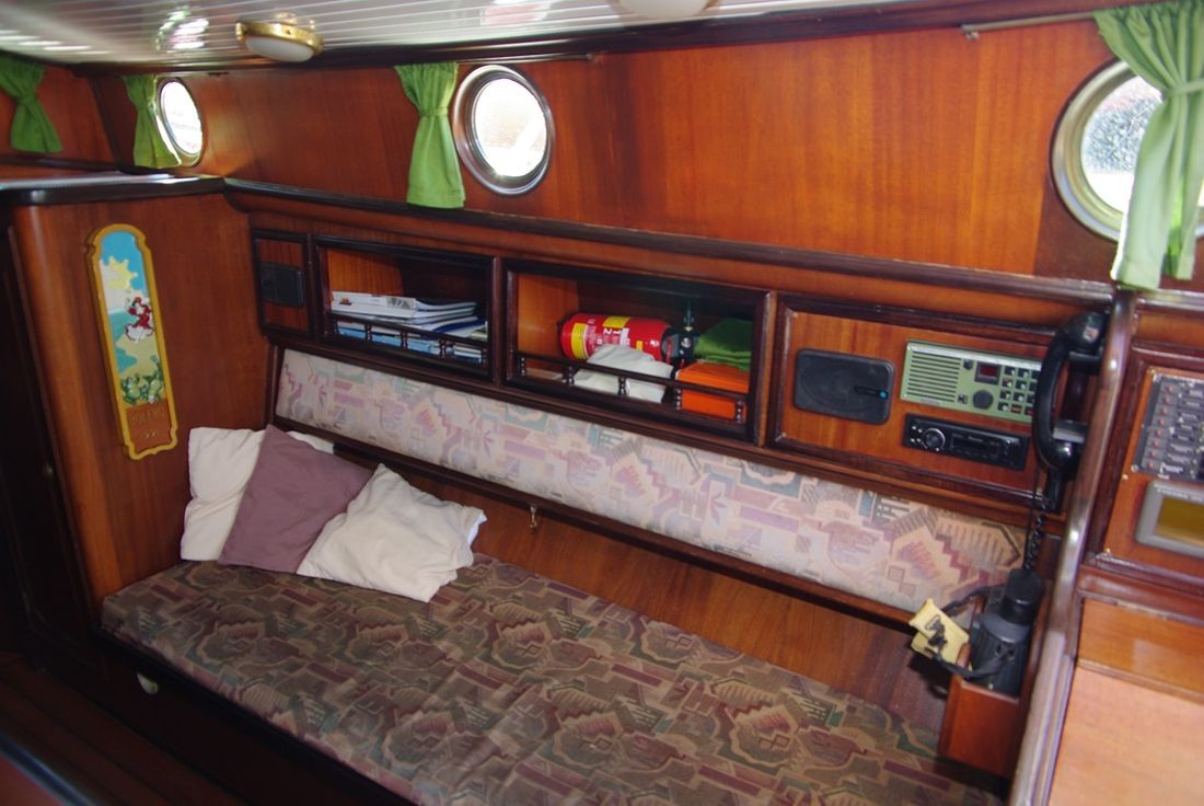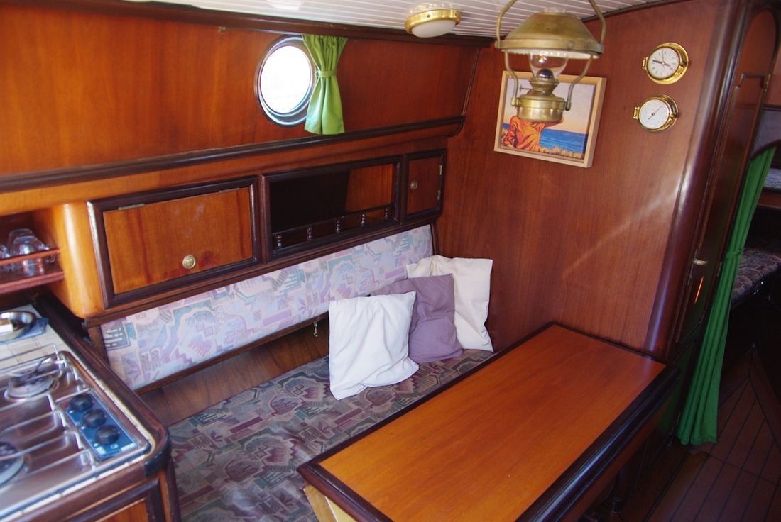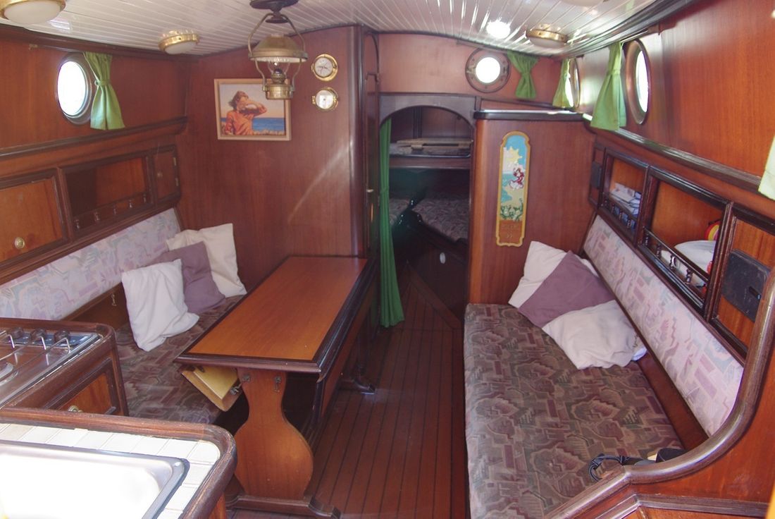 Spaces Saloon Separate Dining area Engine room Cabins 1 Saloon Decoration Type interior Classic, warm Color upholstery mottled Mattresses Cushions Curtains Water Water tank & material Capacity 100 litre Water tank material stainless steel Water system pressure Plumbing Toilets 1 Manual Entertainment Radio/CD player Kitchen Cooker & fuel Number 3 Cooking fuel gas Fridge & power source Power source electric Climate control hot air -