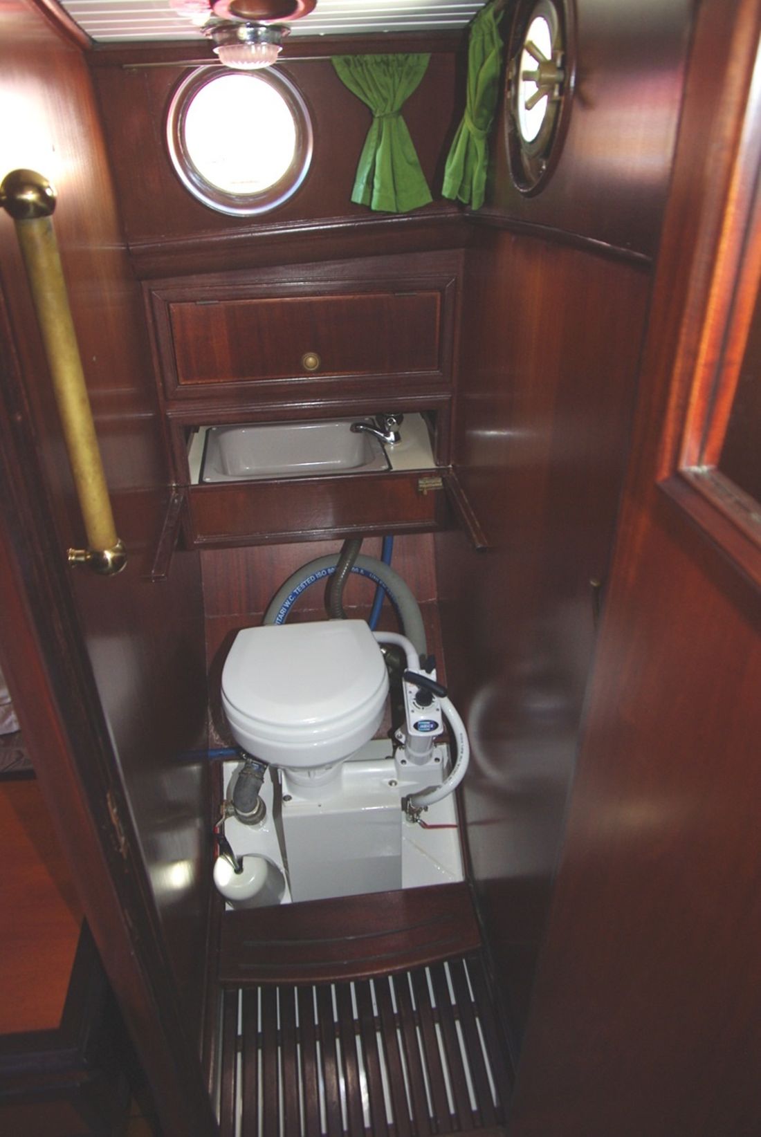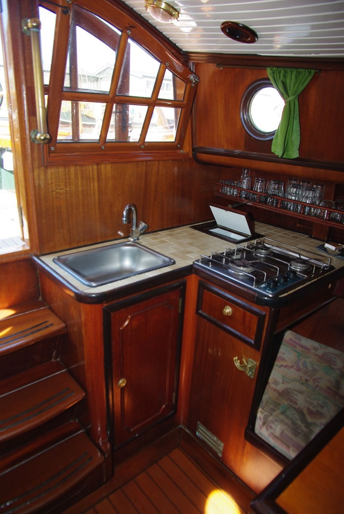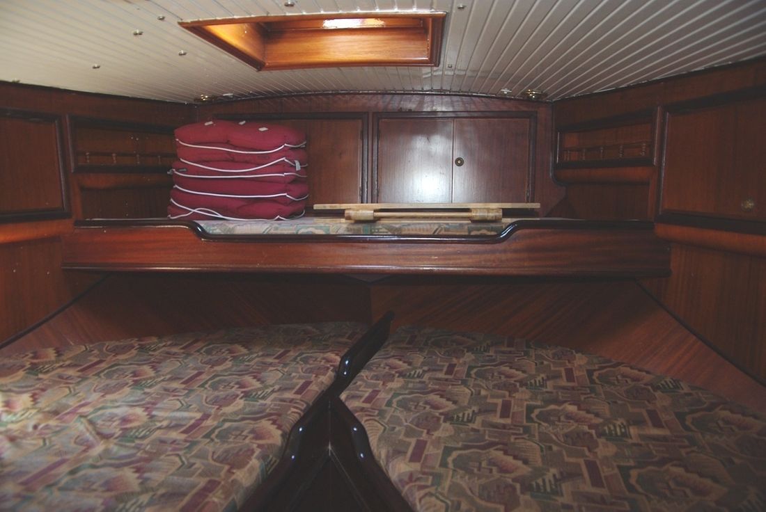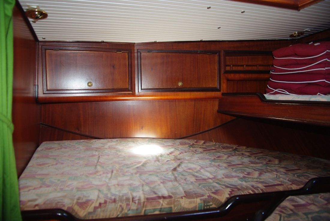 Spaces Saloon Separate Dining area Engine room Cabins 1 Saloon Decoration Type interior Classic, warm Color upholstery mottled Mattresses Cushions Curtains Water Water tank & material Capacity 100 litre Water tank material stainless steel Water system pressure Plumbing Toilets 1 Manual Entertainment Radio/CD player Kitchen Cooker & fuel Number 3 Cooking fuel gas Fridge & power source Power source electric Climate control hot air -