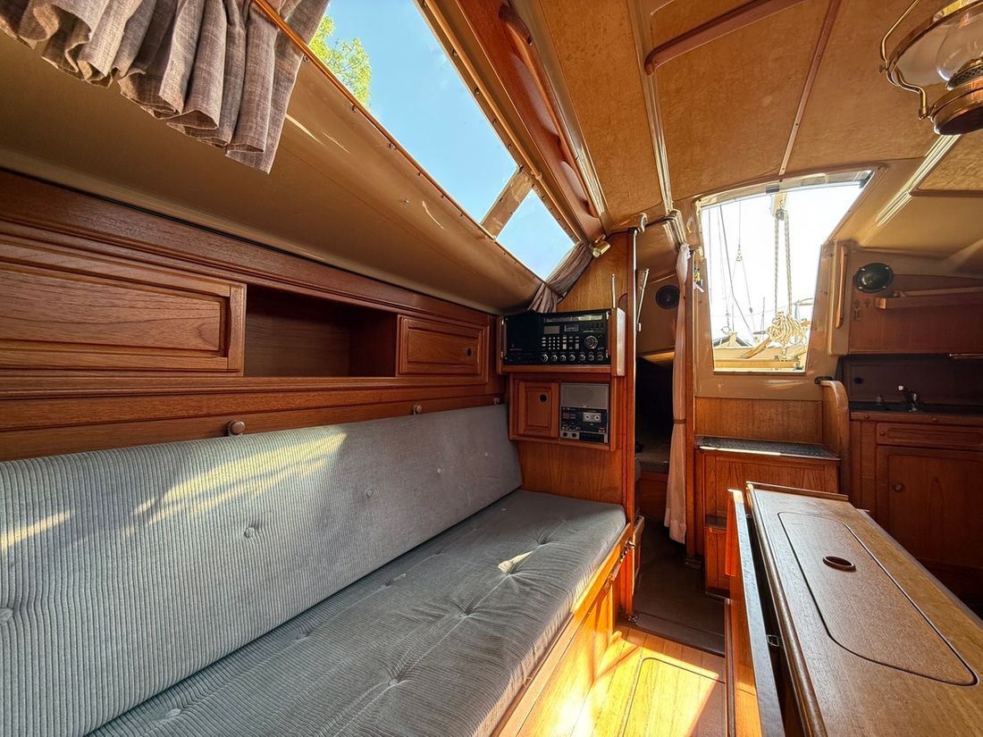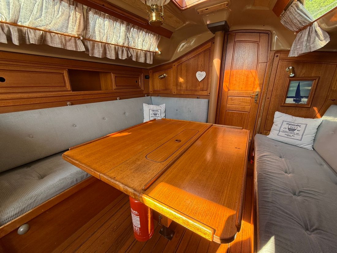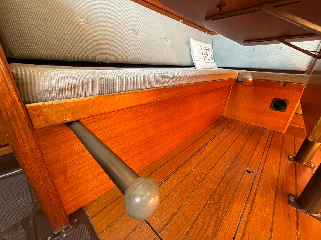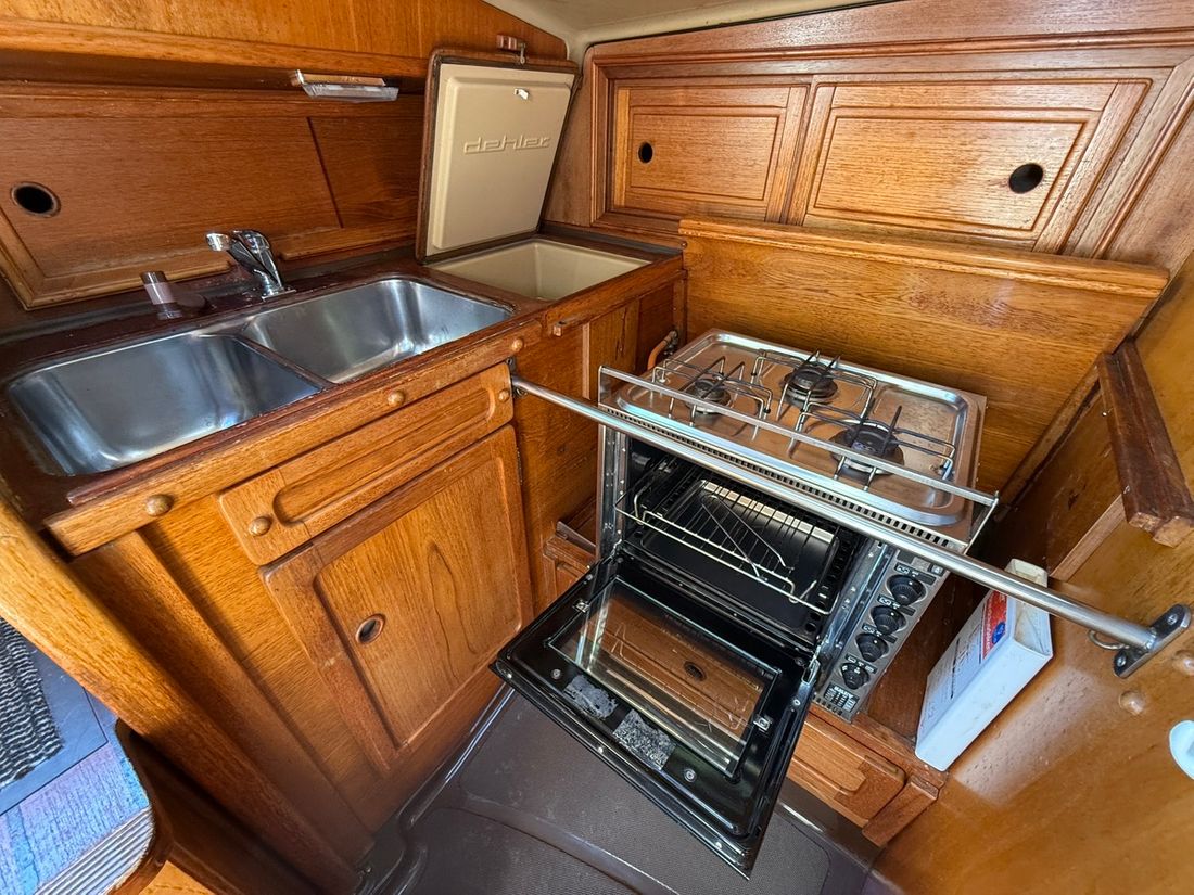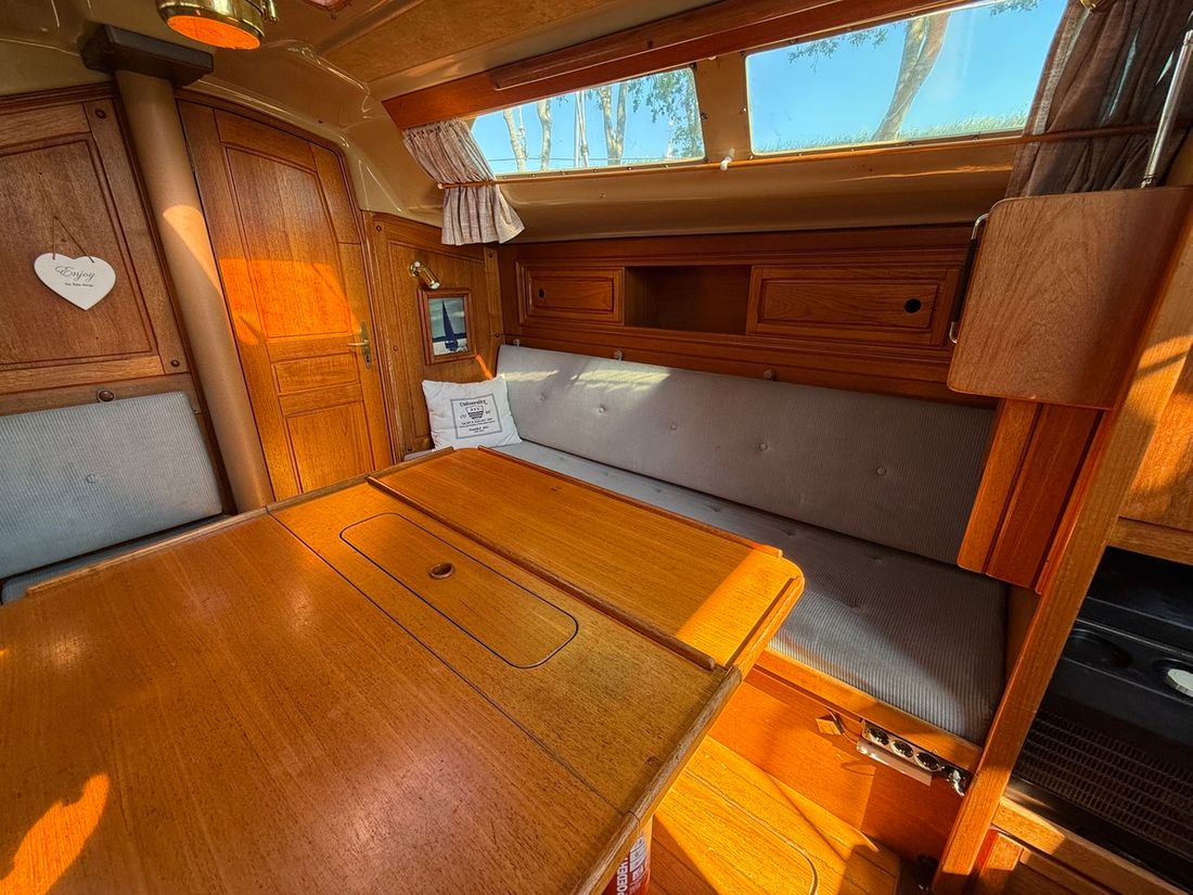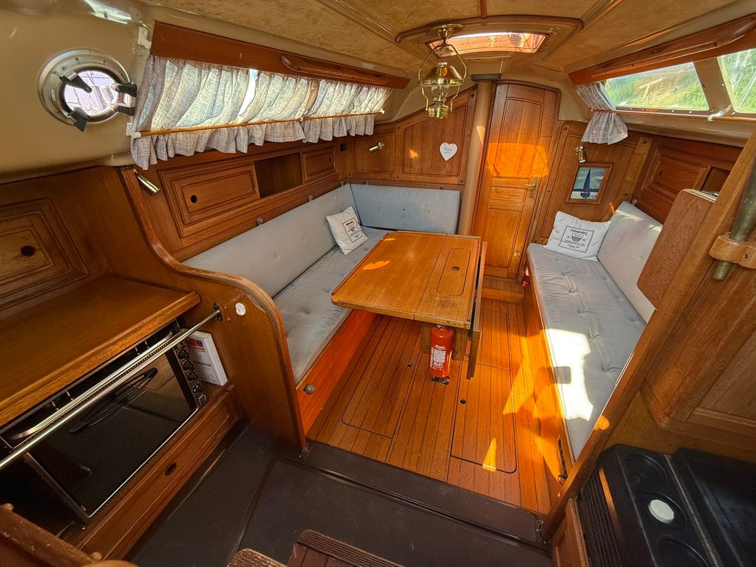 Spaces Saloon Separate Dining area Engine room Cabins 2 Saloon Decoration Type interior Classic, warm Color upholstery grey Mattresses Cushions Curtains Water Water tank & material Capacity 76 litre Water system pressure Plumbing Toilets 1 Manual Kitchen Cooker & fuel Number 3 Cooking fuel gas Oven Fridge & power source Power source electric Climate control hot air -