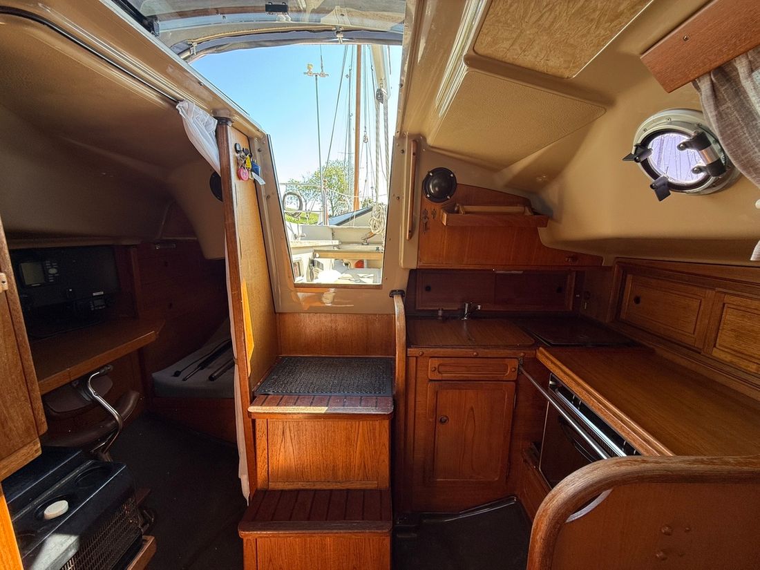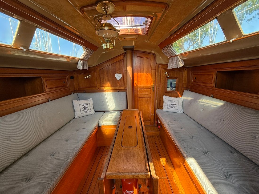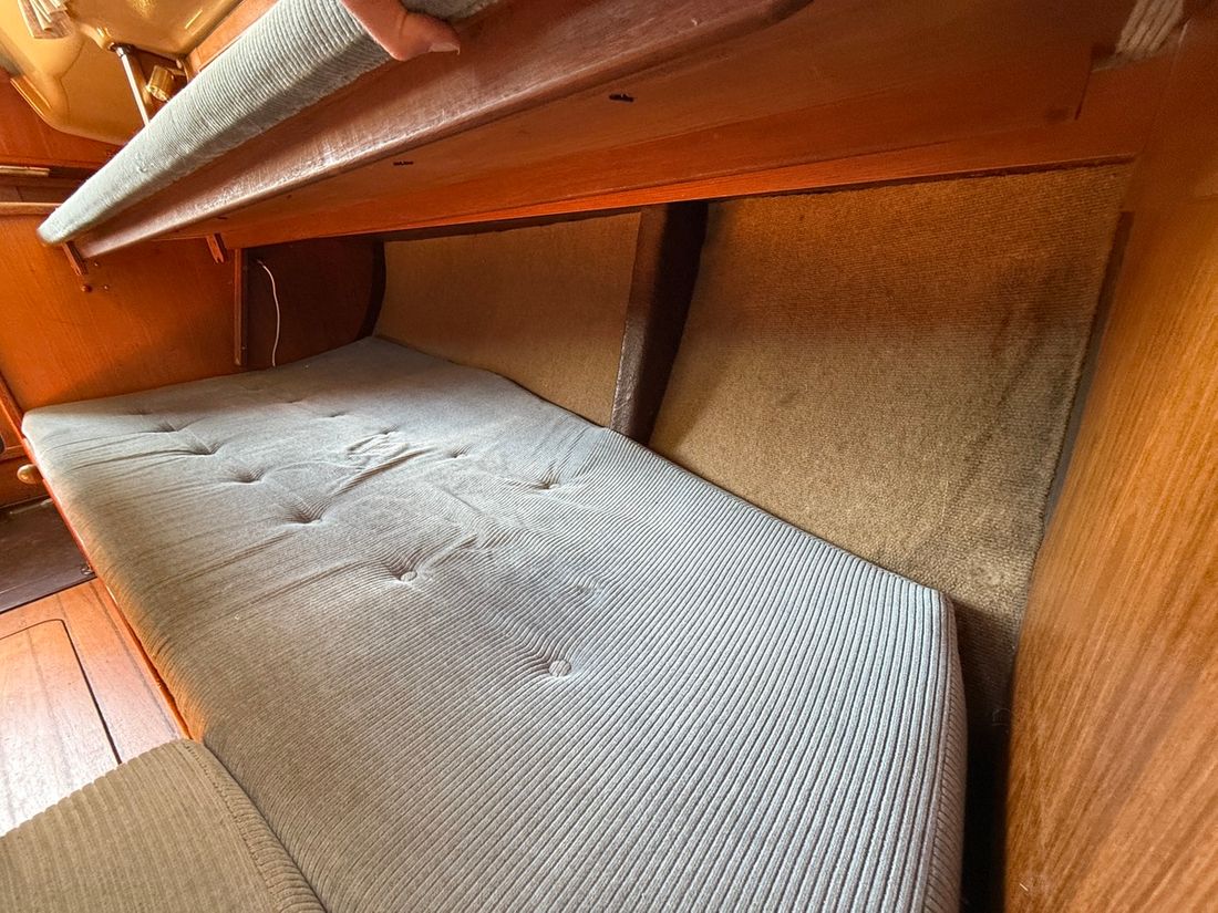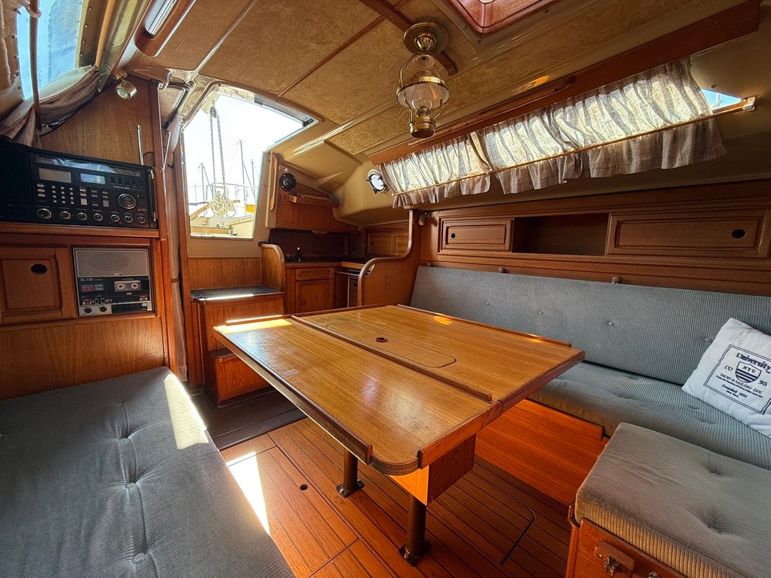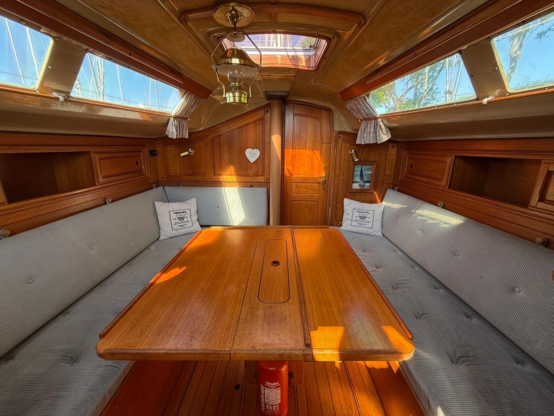 Spaces Saloon Separate Dining area Engine room Cabins 2 Saloon Decoration Type interior Classic, warm Color upholstery grey Mattresses Cushions Curtains Water Water tank & material Capacity 76 litre Water system pressure Plumbing Toilets 1 Manual Kitchen Cooker & fuel Number 3 Cooking fuel gas Oven Fridge & power source Power source electric Climate control hot air -