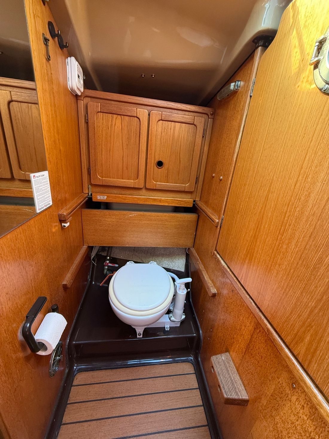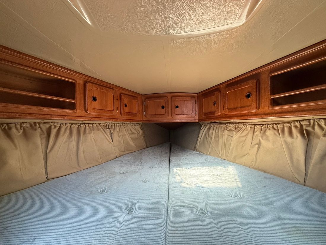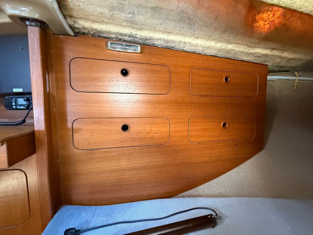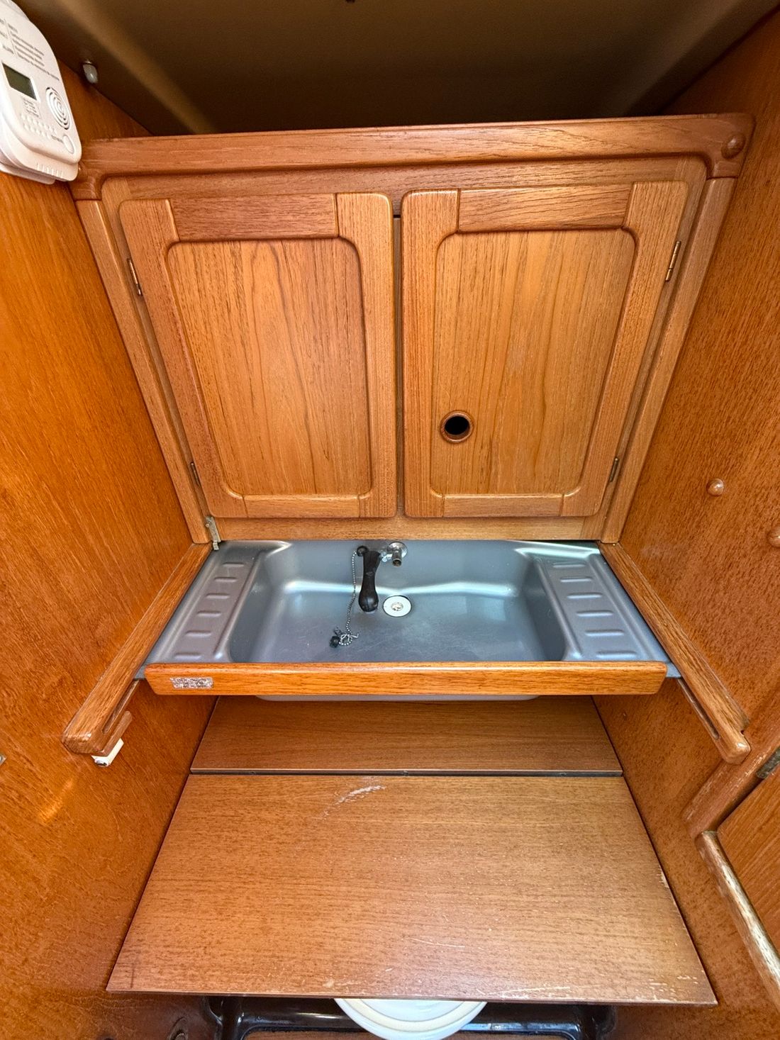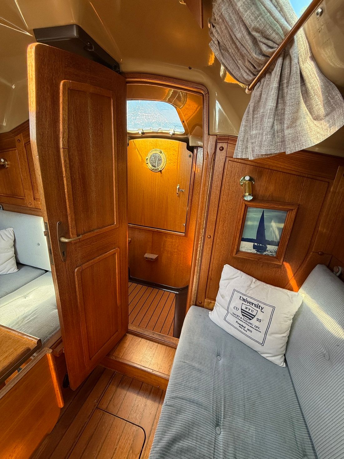 Spaces Saloon Separate Dining area Engine room Cabins 2 Saloon Decoration Type interior Classic, warm Color upholstery grey Mattresses Cushions Curtains Water Water tank & material Capacity 76 litre Water system pressure Plumbing Toilets 1 Manual Kitchen Cooker & fuel Number 3 Cooking fuel gas Oven Fridge & power source Power source electric Climate control hot air -