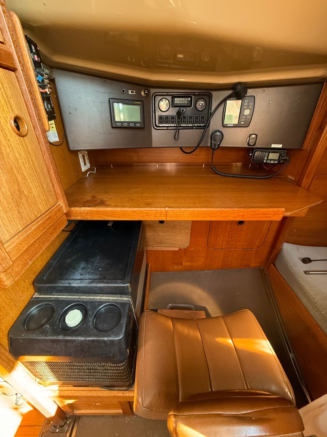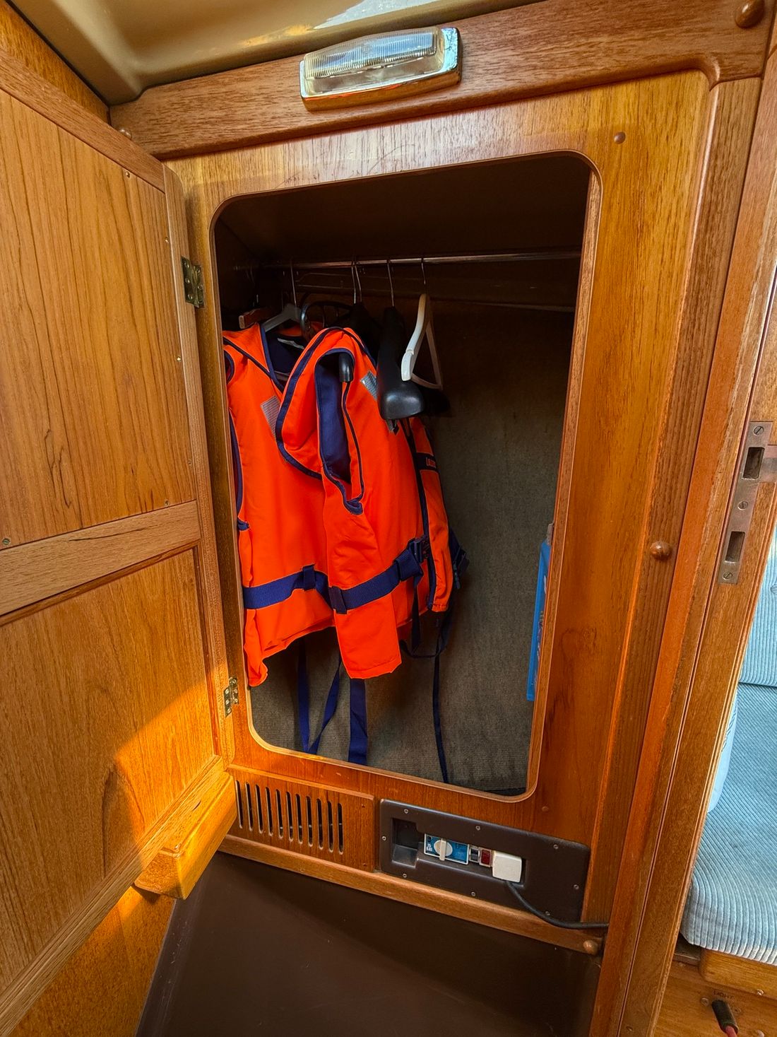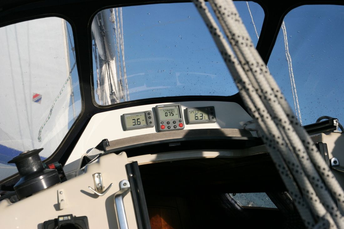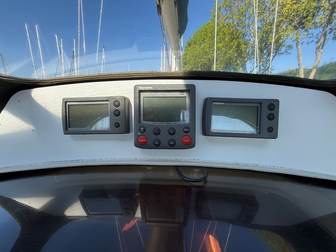 Basic tools Compass Brand kompas Silva een Plastimo Log/speed Brand log/speed Raymarine Depth gauge Brand depth gauge Raymarine Navigation lights Modern electronics Autopilot Brand autopilot Raymarine GPS Brand GPS Garmin Communication VHF Brand VHF Icom -