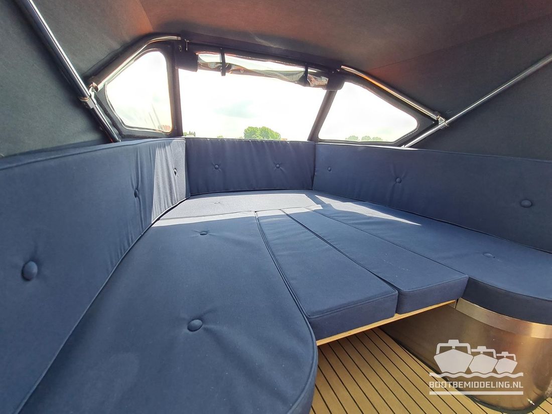 Anchor Anchors & material Comments Anchors & material 8 kg, 32 m cable Number 1 Deck equipment Sprayhood Comments Sprayhood dark blue, with zip-on cover and blackout Bimini Comments Bimini Sunbrella, dark blue Sea rails Swimming platform Comments Swimming platform integrated Swimming ladder Comments Swimming ladder foldable Miscellaneous Teak deck Fenders, lines Comments Fenders, lines 4x -