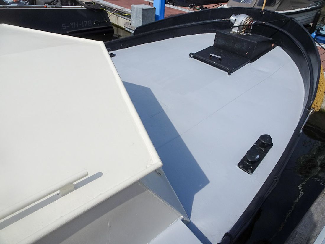 Delivered new Shipyard onbekend Hull deck superstructure Hull shape flat bottom Hull colour black Deck construction steel Dimensions and weights Comments Vertical clearance 2,35 m Maximum draught 0.8 metres Steering and Drift Limitation Steering system wheel Drift restriction controls hydraulic -