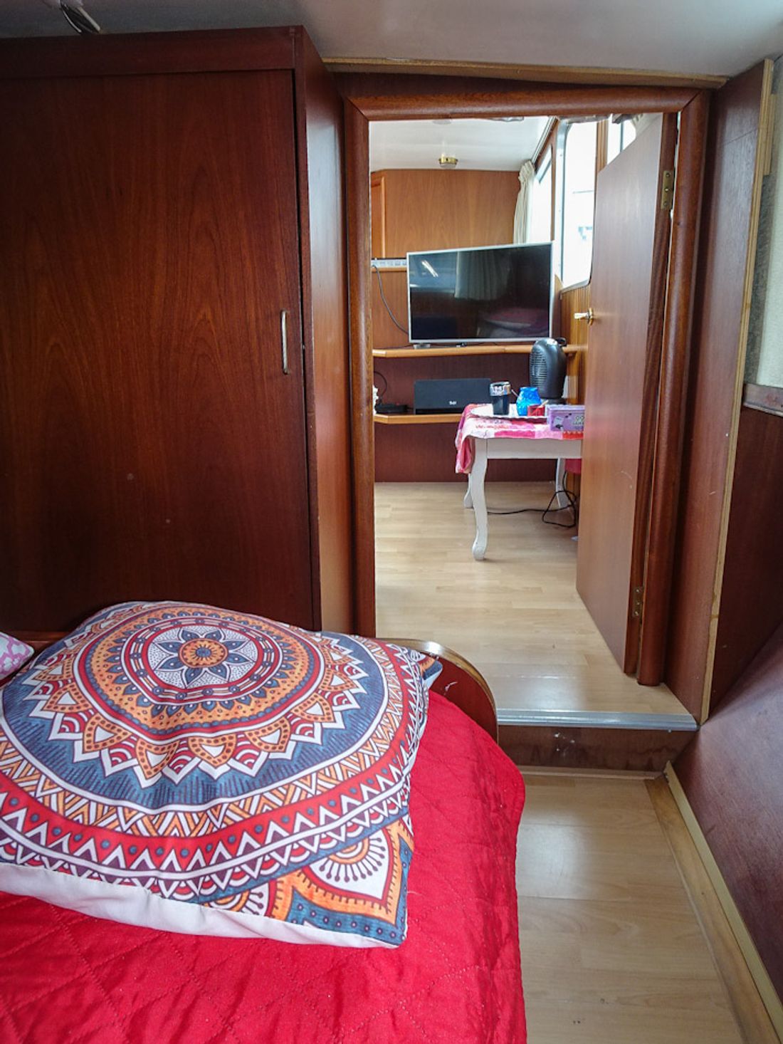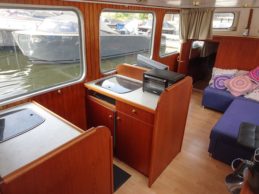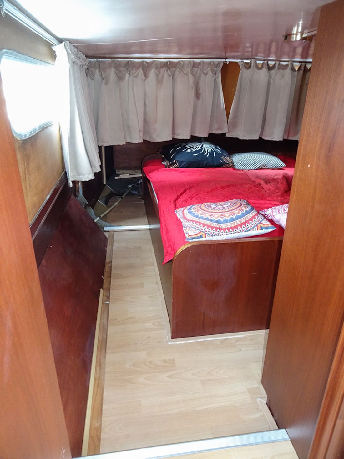Spaces Comments Headroom forecabin (approx.) 1,37 m, salon (approx.) 1,85 m, galley (approx.) 1,82 m, toilet (approx.) 1,82 m, wheelhouse (approx.) 1,80 m Cabins 1 Comments Cabins 1x cabin Comments Berths Forward: 1x 2-pers, Sofa bed: 1x 2-pers Water Water tank & material Comments Water tank & material 1x 250 litre, stainless steel tank(s) Water tank material stainless steel Comments Water system electric water pump Hot water Comments Hot water 1x 22 litre, Johnson SPX Aquah boiler/water calorifier via 230 Volt and engine cooling system Plumbing Number of showers 1 Number of baths 1 Toilets 0 Comments Toilets electric toilet Electric Entertainment Television Kitchen Cooker & fuel Comments Cooker & fuel 3-burner hob, on gas, stainless steel Number 1 Cooking fuel gas Comments Oven Tristar mini electric oven Amount 0 Amount 0 Comments Fridge & power source Waeco 12 Volt Power source electric Comments Freezer small ice compartment Climate control hot air stove Central heating Comments Heating Vevor WF5001 hot air heating, on diesel -