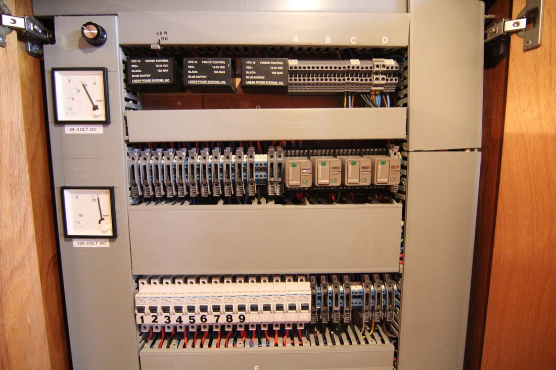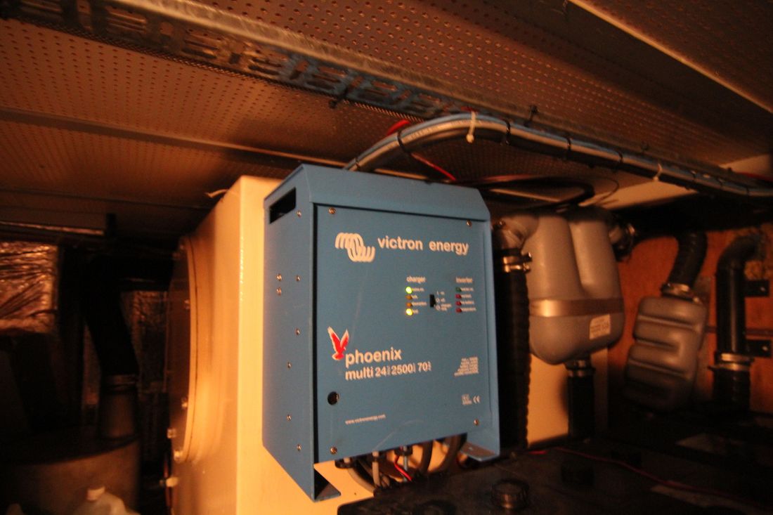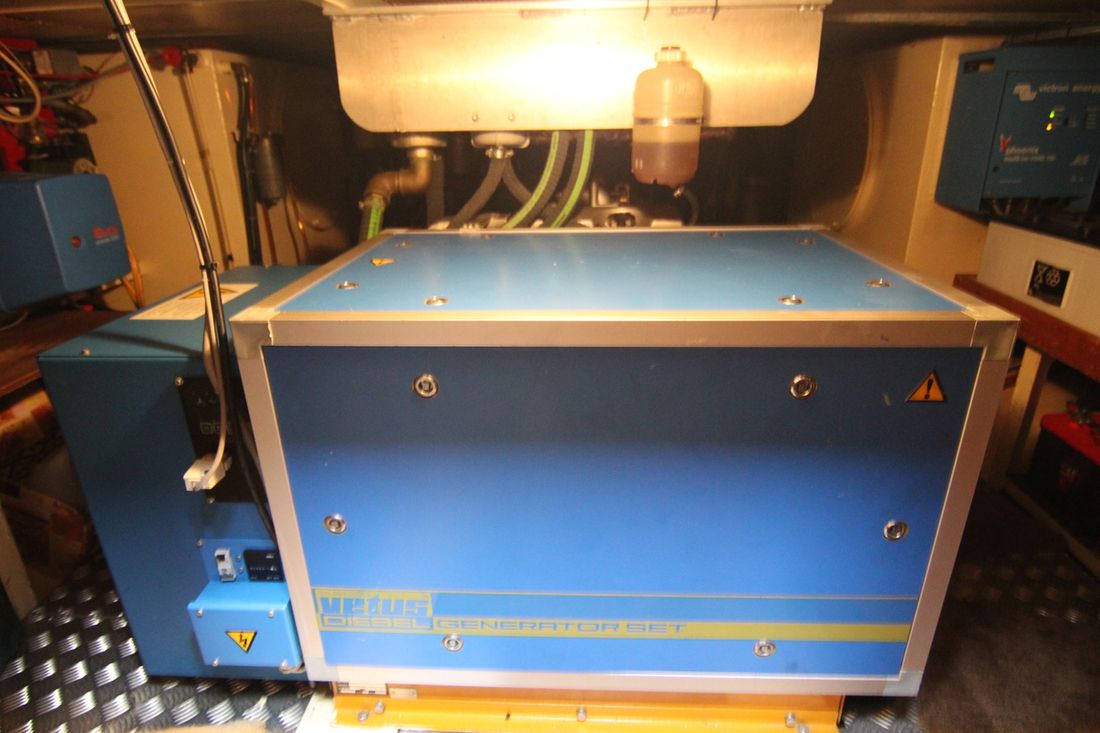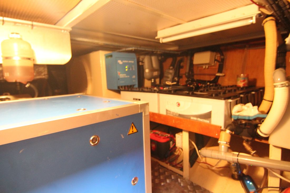 Engines Number of identical engines 1 Starting type electric Main engine Type inboard Brand Vetus Deutz Serial number 00602370 Year 2001 Number of cylinders 6 Power 141 kW Fuel diesel Brand gearbox Aquadrive 20.300 Drive Transmission shaft Propulsion propellor Cooling system indirect Tank Fuel tanks Comments Fuel tanks Steel Number 1 Total fuel tank(s) capacity 1475 litre Fuel tank material steel Performance Max speed 10 knots Measuring instruments Fuel tank gauge Tachometer Oil pressure gauge Temperature gauge Bow and stern thruster Bow thruster electric Stern thruster electric Electricity Battery Comments Battery 6x lighting / inverter 2x engine / bow thruster 1x generator Number 9 Battery charger Alternator Generator Capacity 14 Inverter Comments Inverter Victron energy phoenix multi Capacity 2500 Voltmeter Shore power Shore power cable -
