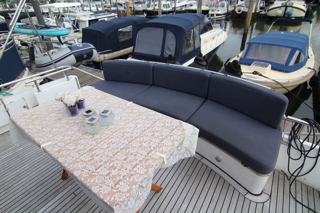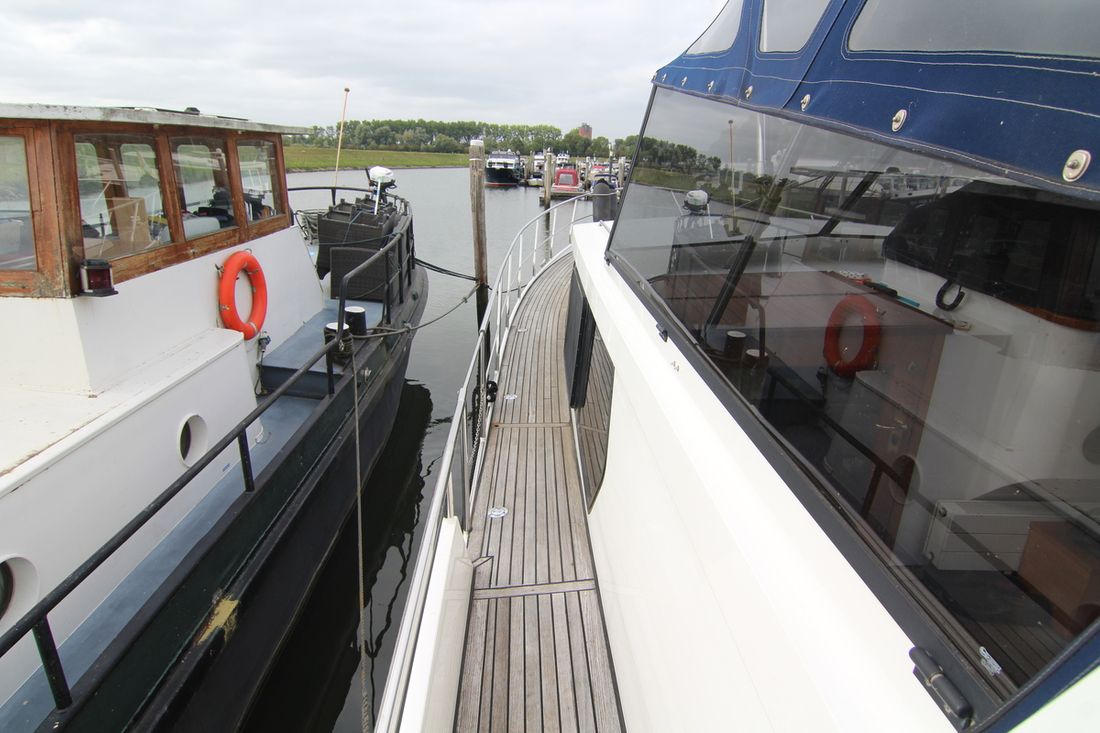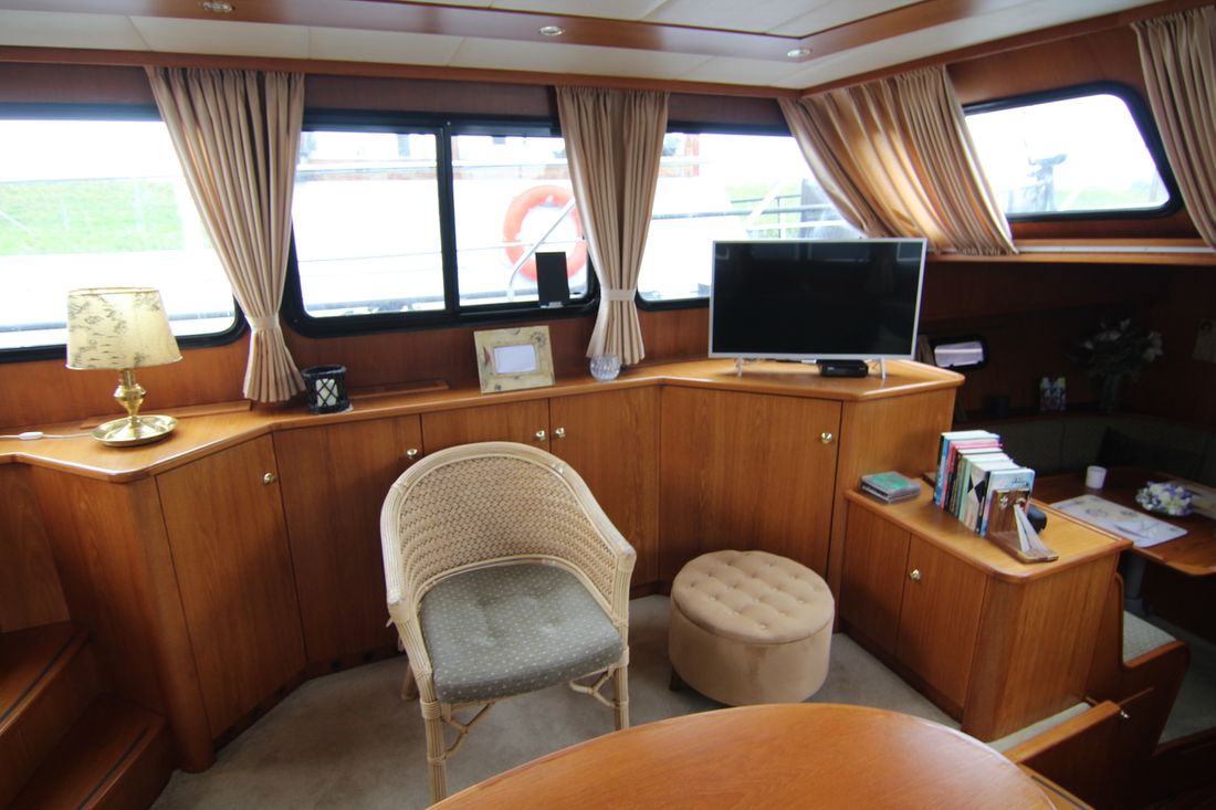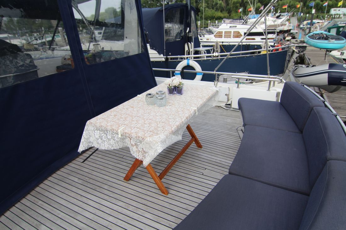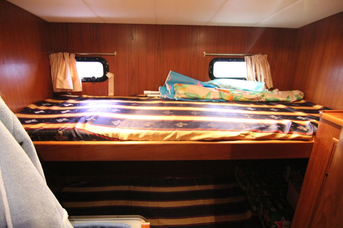 Spaces Saloon Comments Saloon Cozy lounge with ample seating Separate Dining area Engine room Cabins 3 Comments Cabins 3 cabins 2x French bed, 2x single bed Comments Berths 2x frans bed 160 x 200cm2x bed 90 x 200cm Saloon Layout and spaces inside 3 cabins, lounge, dining area with kitchen, toilet and shower. Decoration Type interior Classic, warm Comments Type interior professionally fitted Color upholstery beige Mattresses Cushions Curtains Comments Curtains gold cream Water Water tank & material Capacity 1000 litre Water tank material steel Water tank gauge Inhoud 100 litre Waste water tank Waste water tank gauge Waste water tank drainpump Deck suction Water system pressure Hot water Deck wash pump Deck Shower Plumbing Number of showers 1 Comments Number of showers spacious shower Toilets 1 Comments Toilets apart toilet Electric Entertainment Television Comments Television 2 Flatscreens Radio/CD player Kitchen Cooker & fuel Number 4 Cooking fuel electric Oven Comments Oven Siemens Amount 1 Microwave Comments Microwave Siemens Fridge & power source Power source electric Freezer Comments Freezer in refrigerator Climate control Heating 1 Central heating Comments Heating Share -