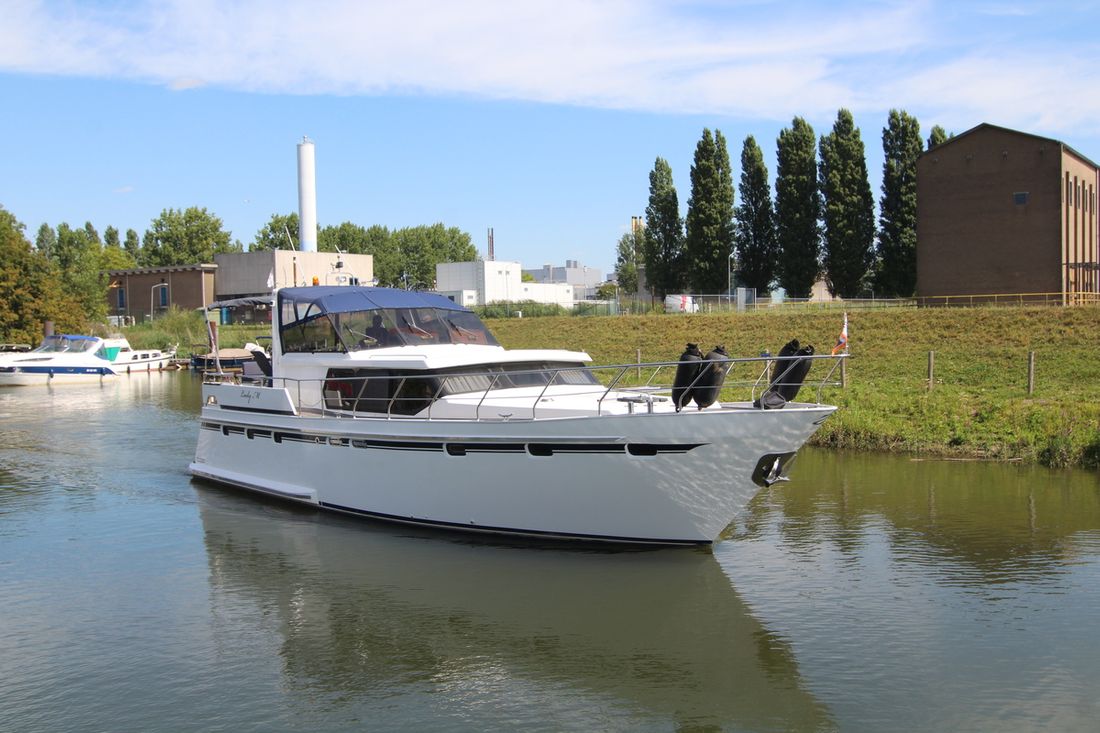 Delivered new Designer F Kuyten Shipyard Zijlmans Drimmelen Hull number 01.02 Hull deck superstructure Hull shape chine Comments Hull shape Chine truss in white Hull colour white Deck colour white Deck construction steel Aft cockpit Superstructure superstructure with steering position and convertible top Windows Aluminium Steering and Drift Limitation Steering system wheel Comments Steering system steering in convertible top Position steering system outside control -