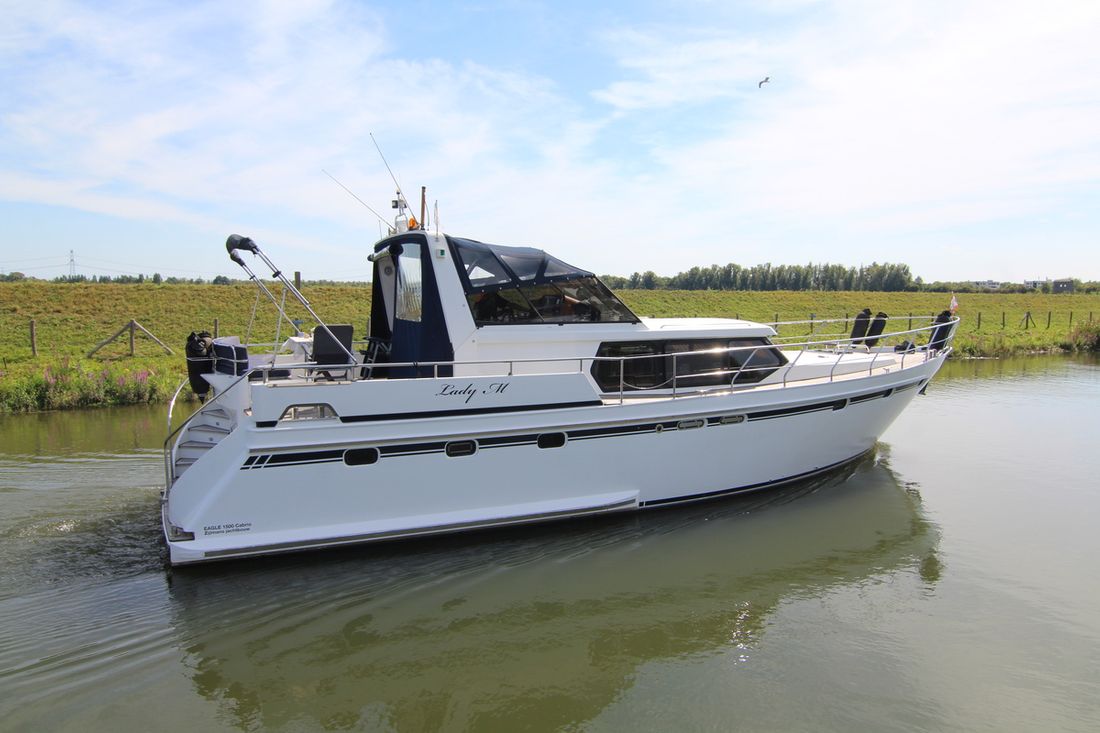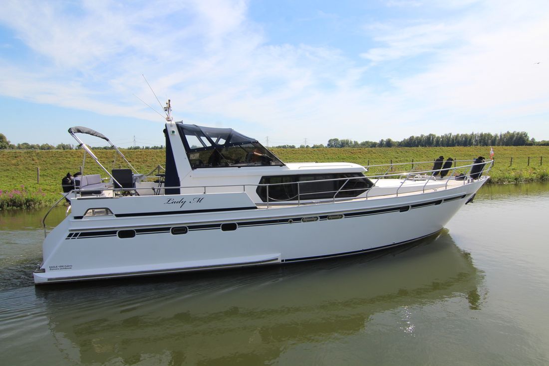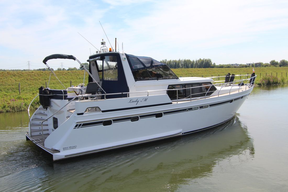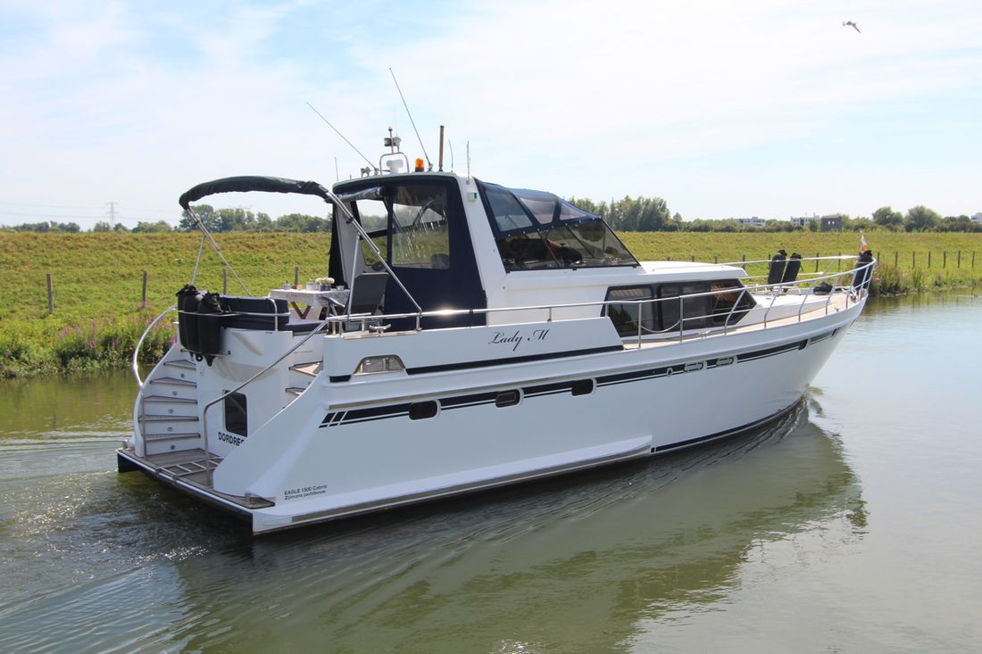 Category Reference number 4000059 Category Motor Yacht Brand Zijlmans Model Eagle 1500 Cabrio Ship's name - Berth Type Office Country Netherlands Latitude 51.81207600 Longitude 4.72395710 General Status Available New or used Used Boat type Motorboat Year of construction 2002 Hull material Steel Account manager Jari van Geenen Short description A very neat Zijlmans 1500 with six permanent berths. The boat has three cabins and is fully equipped. A spacious saloon with ample seating and a large galley with four electric hobs, an oven, and a refrigerator. Motorization summary Vetus Deutz 141kW Broker yacht URL https://dordrecht.yachtshift.nl/59/zijlmans-eagle-1500-cabrio Dimensions Length 1495 centimetres Width 450 centimetres Draught 120 centimetres Headroom inside 200 centimetres Vertical clearance 340 centimetres Berths fixed 6 Extra 2 -