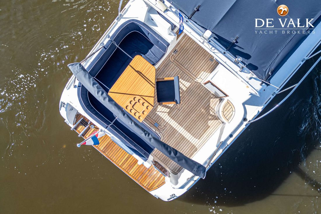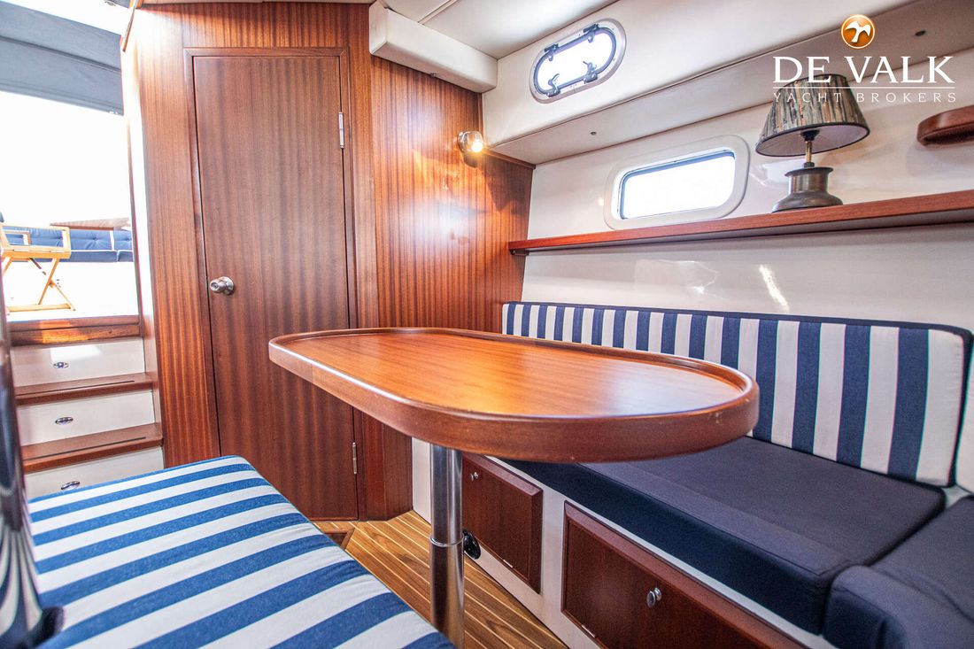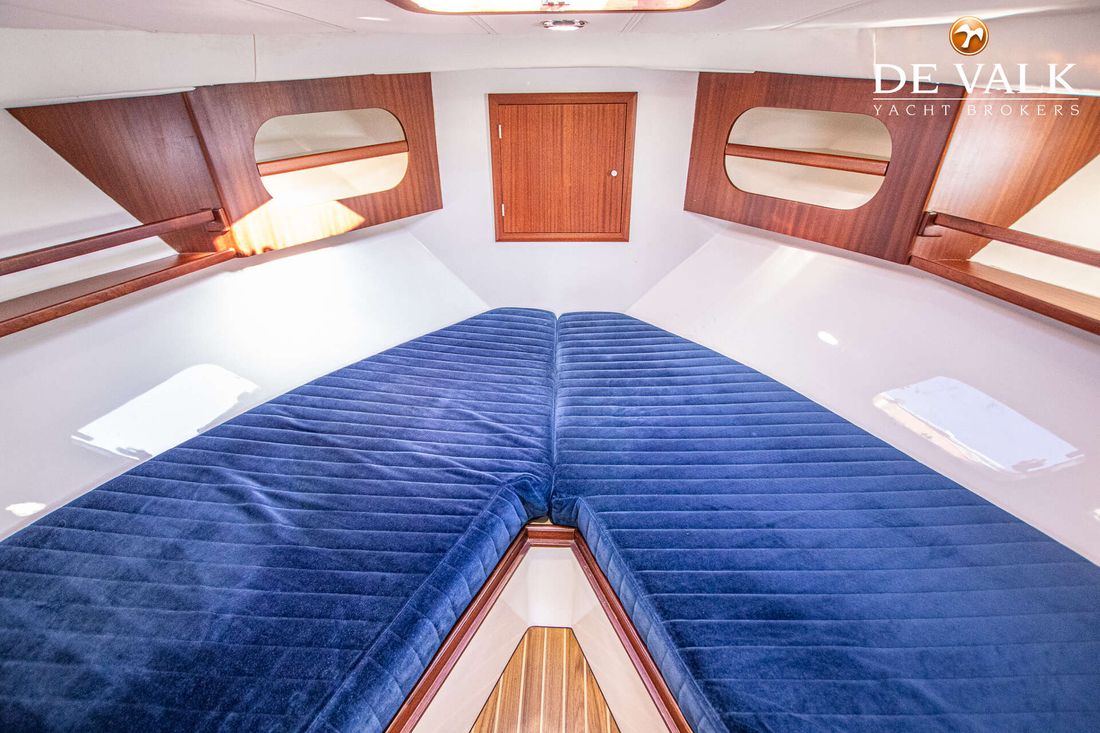 This beautiful Agder 1100 Convertible has a large swimming platform aft. A door in the transom provides access to the spacious open cockpit. The interior has a lay-out with two separate sleeping cabins and a toilet/shower room plus the possibility to transform the dinette in to a double berth.