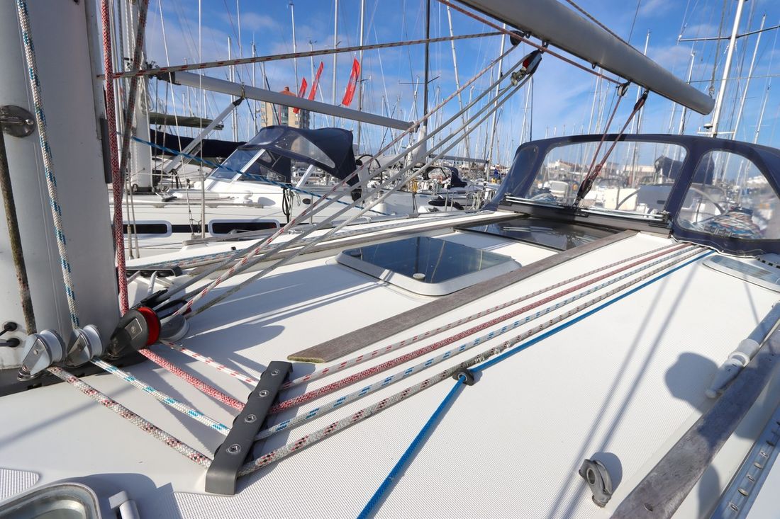 Delivered new Designer Jaques Fauroux Shipyard Jeanneau Hull number 048590 Hull deck superstructure Hull shape roundbilge Dimensions and weights Displacement 6000 kg Ballast 1950 kg Steering and Drift Limitation Steering system wheel Rudder single Keel/Lee board fixed keel -