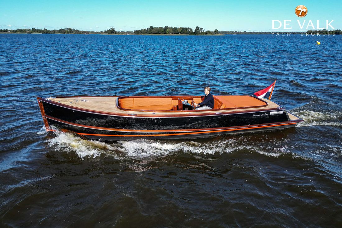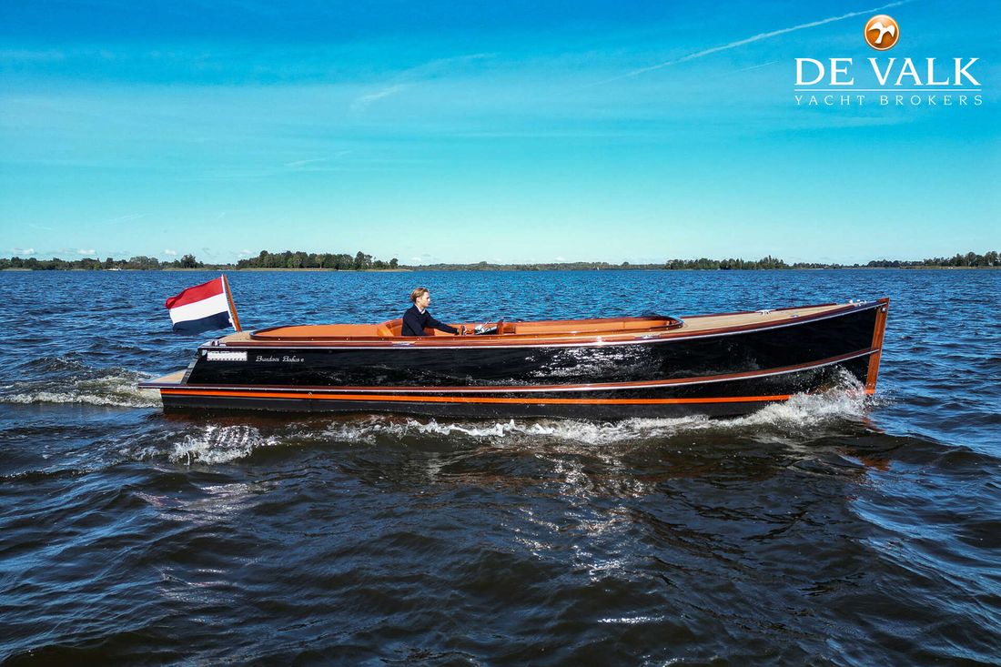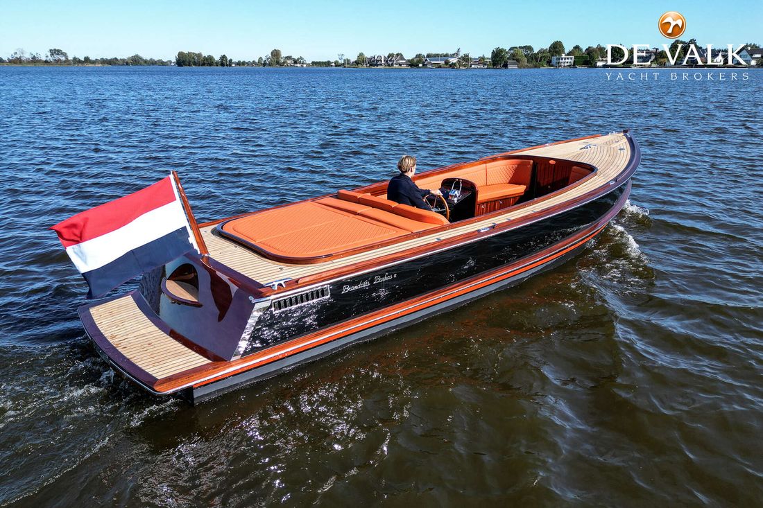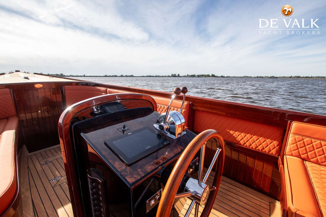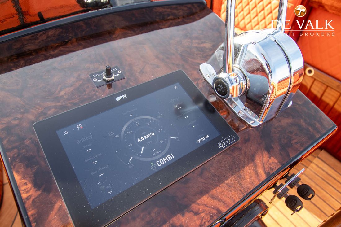 The Brandaris Barkas 900 Twin Electric combines classic craftsmanship with modern, silent propulsion. Equipped with two 12 hp electric motors, she glides smoothly and quietly through the water. The high-quality teak, mahogany, and stainless steel finishing exude pure elegance. With her solid composite hull and attention to detail, this Barkas offers a unique blend of luxury, sustainability, and timeless design.