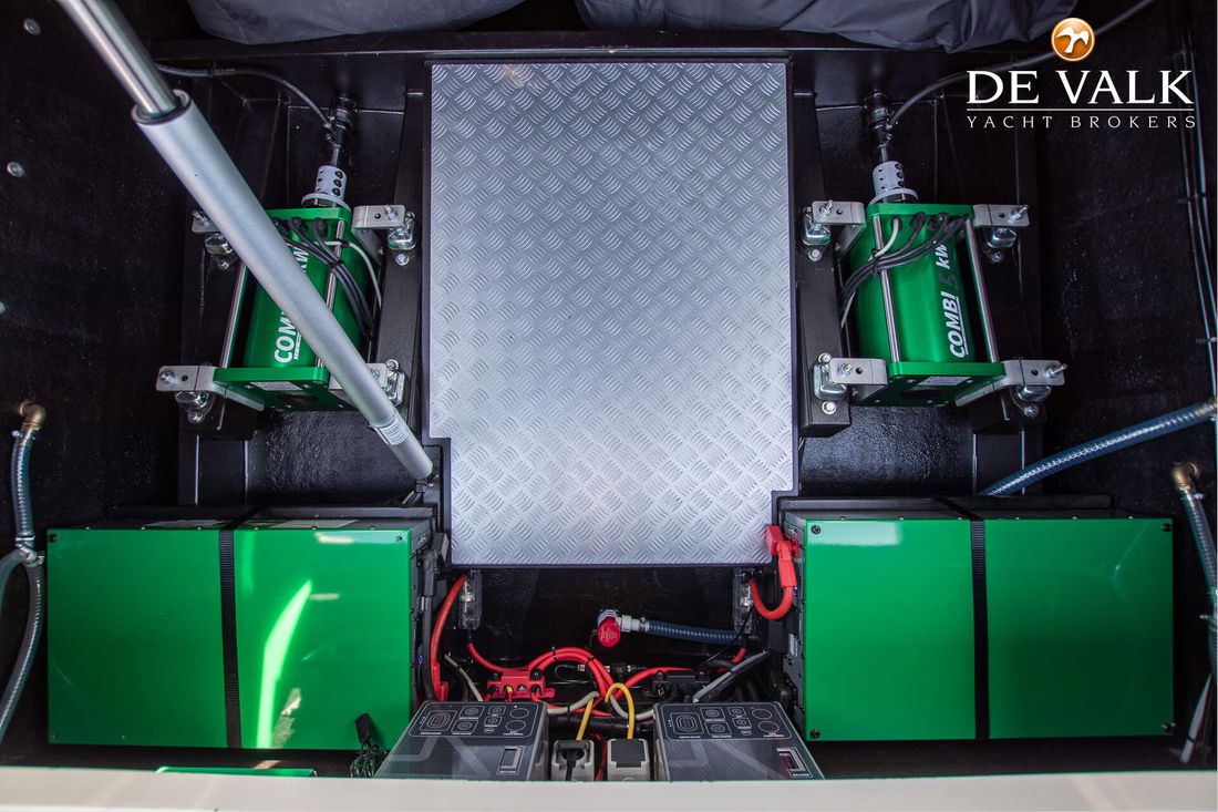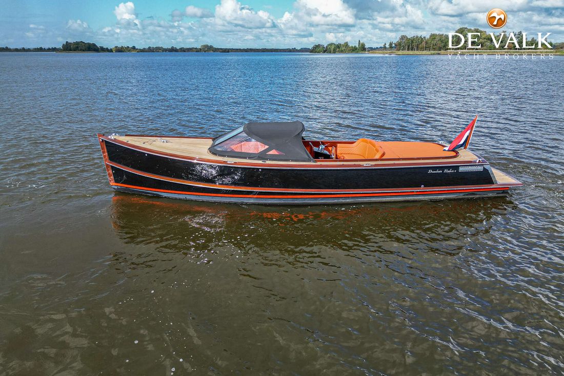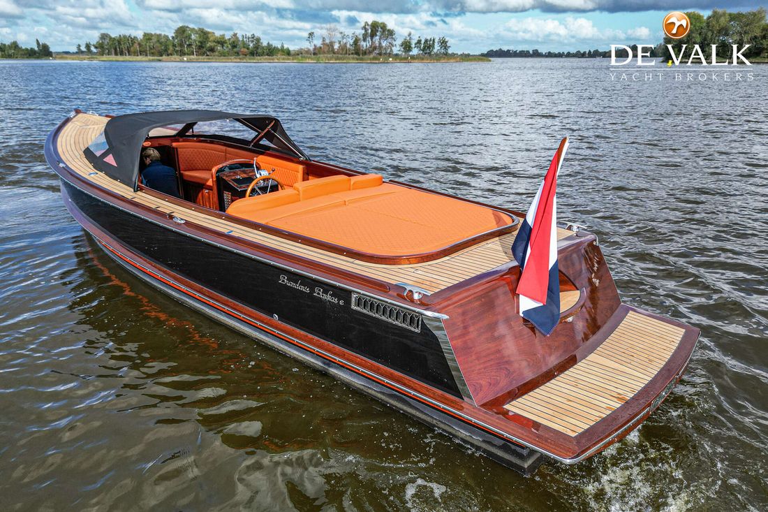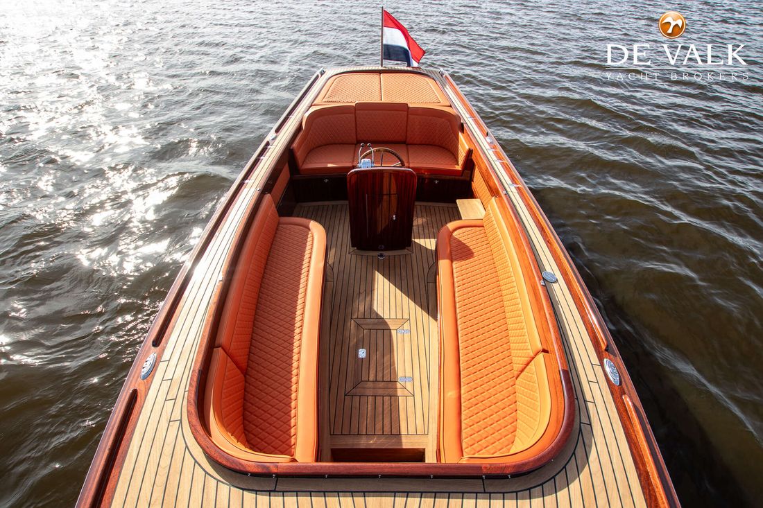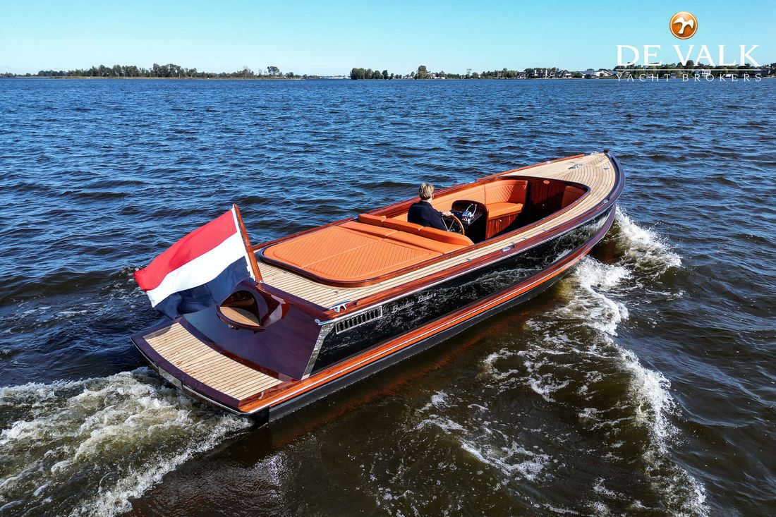 The Brandaris Barkas 900 Twin Electric combines classic craftsmanship with modern, silent propulsion. Equipped with two 12 hp electric motors, she glides smoothly and quietly through the water. The high-quality teak, mahogany, and stainless steel finishing exude pure elegance. With her solid composite hull and attention to detail, this Barkas offers a unique blend of luxury, sustainability, and timeless design.