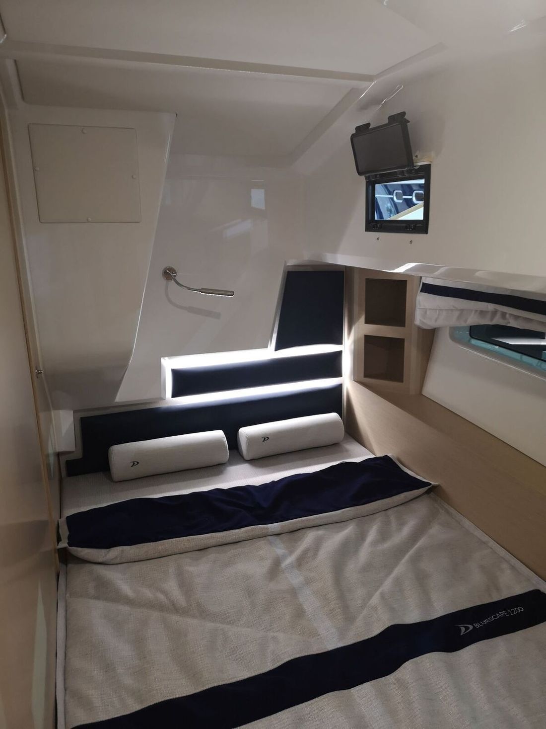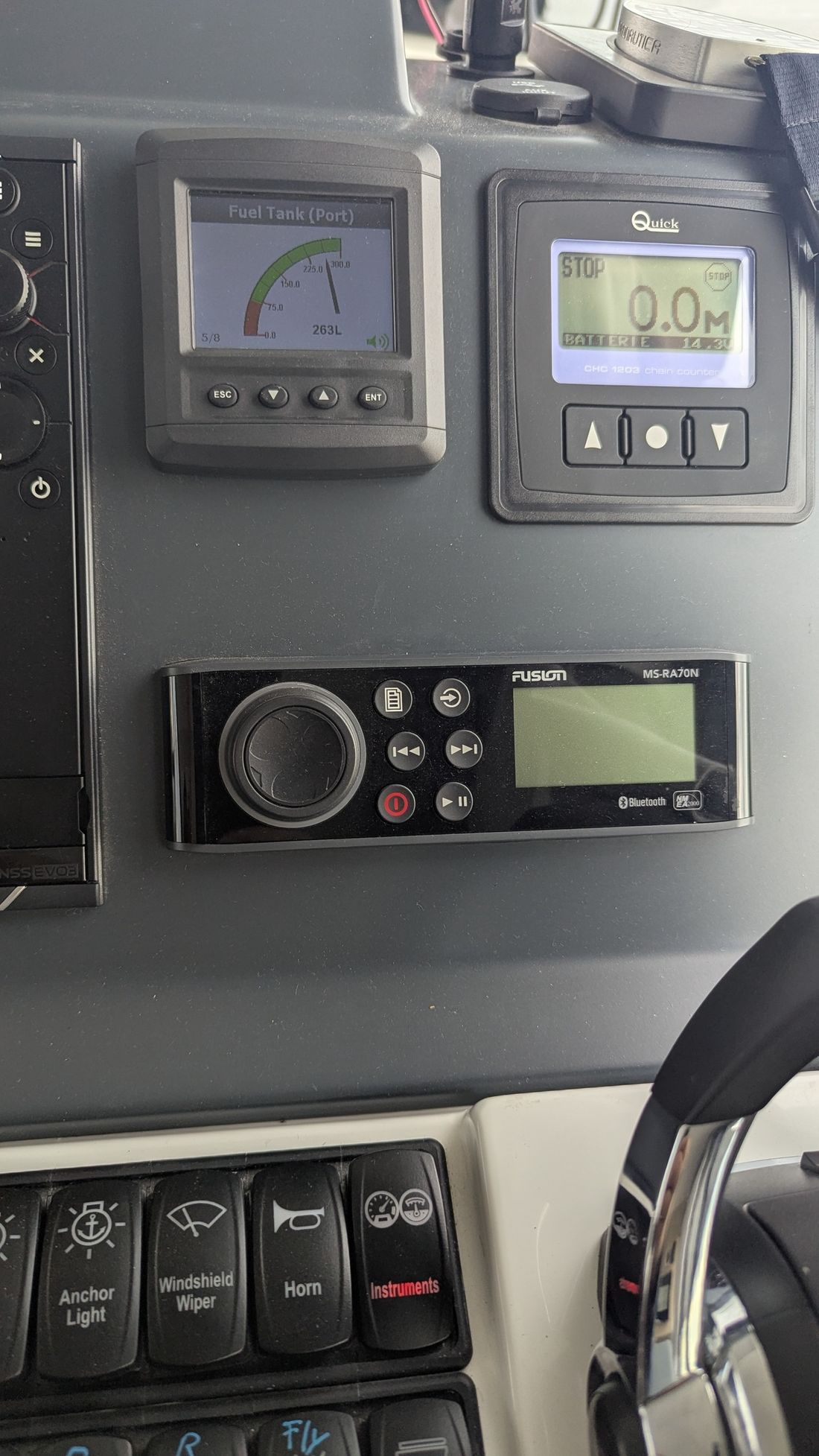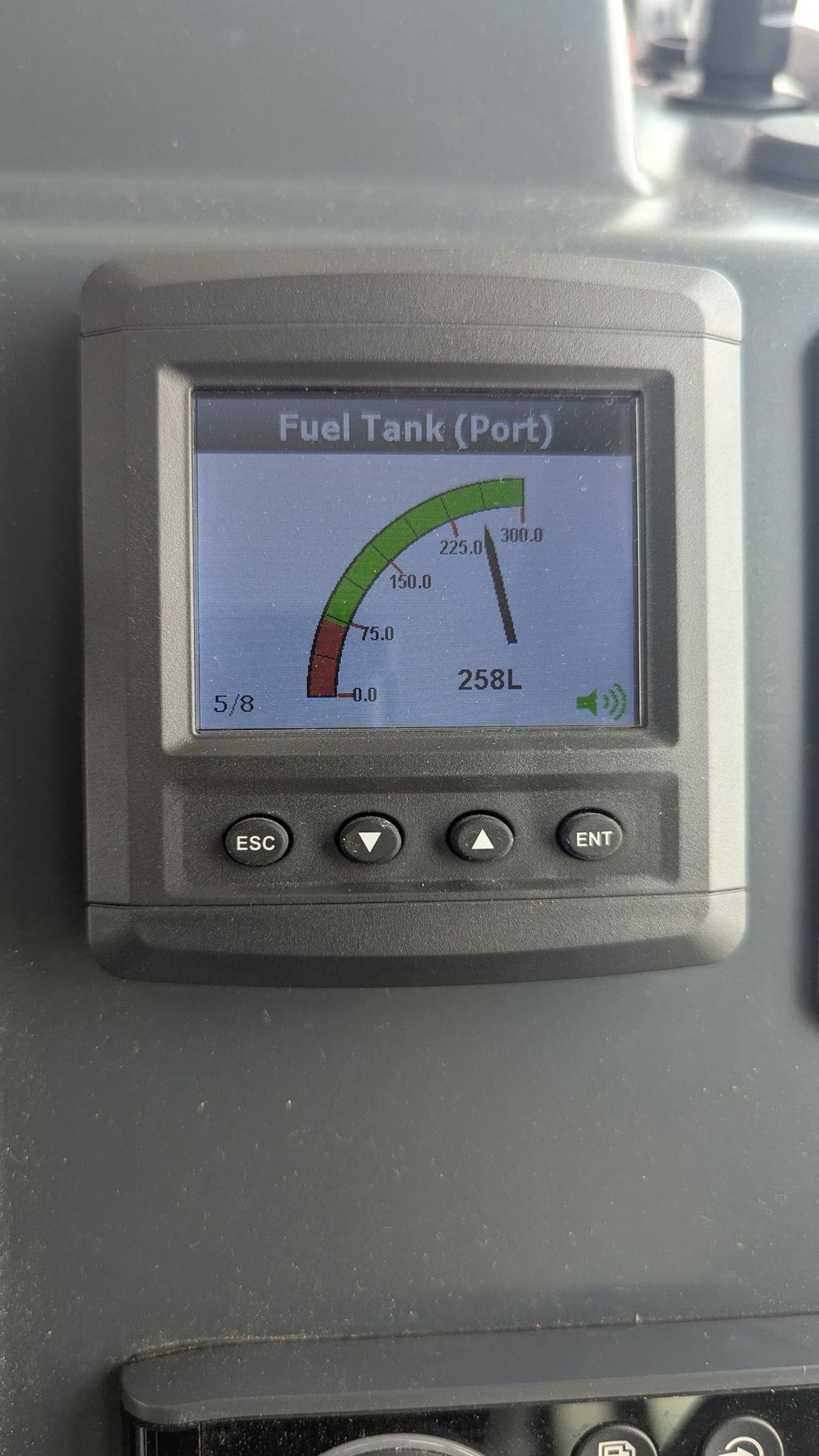 Engines Number of identical engines 1 Starting type electric Main engine Type inboard Brand Volvo Penta Model D3-220 Serial number A1089649 Year 2020 Number of cylinders 4 Power 220 hp Hours counter Fuel diesel Brand gearbox Bruntons SigmaDrive Drive Transmission shaft Propulsion propellor Cooling system indirect Tank Fuel tanks Number 1 Total fuel tank(s) capacity 600 litre Fuel tank material stainless steel Measuring instruments Fuel tank gauge Tachometer Brand tachometer Volvo Penta Oil pressure gauge Brand oil pressure gauge Volvo Penta Temperature gauge Brand temperature gauge Volvo Penta Bow and stern thruster Bow thruster electric Mobile remote control Stern thruster electric Mobile remote control Electricity Battery Number 8 xAh per battery 850 Battery charger Capacity 120 Alternator Battery monitor Inverter Capacity 2000 Voltmeter Shore power Shore power cable Consumption monitor 12V 220V -