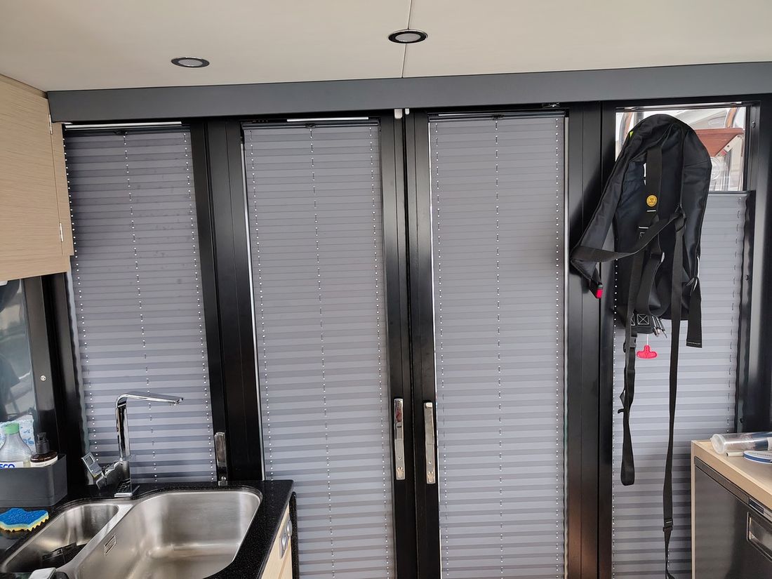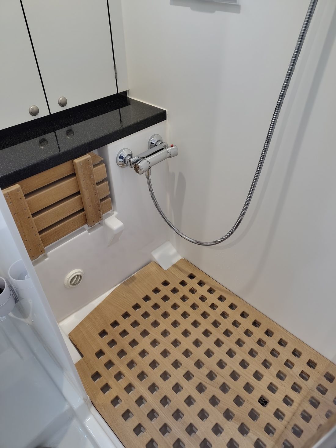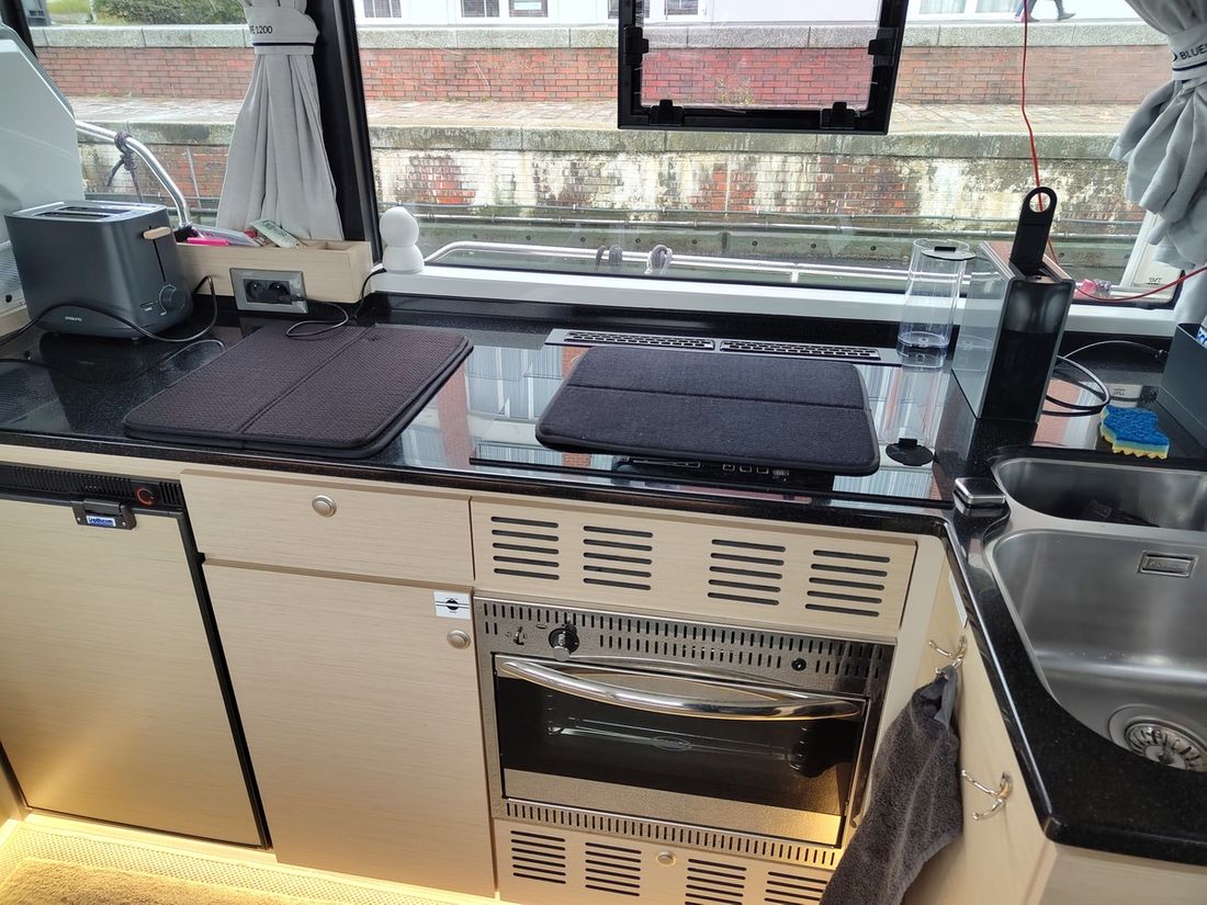 Spaces Saloon Separate Dining area Engine room Cabins 2 Saloon Decoration Type interior Modern, light Color upholstery blue Mattresses Cushions Curtains Water Water tank & material Capacity 600 litre Water tank material stainless steel Water tank gauge Inhoud 200 litre Waste water tank Waste water tank gauge Waste water tank drainpump Deck suction Water system pressure Hot water Deck wash pump Deck Shower Plumbing Number of showers 2 Toilets 2 Electric Entertainment Radio/CD player Kitchen Cooker & fuel Number 3 Cooking fuel gas Oven Amount 1 Fridge & power source Power source electric Freezer Climate control Heating Webasto hot air Air conditioning -