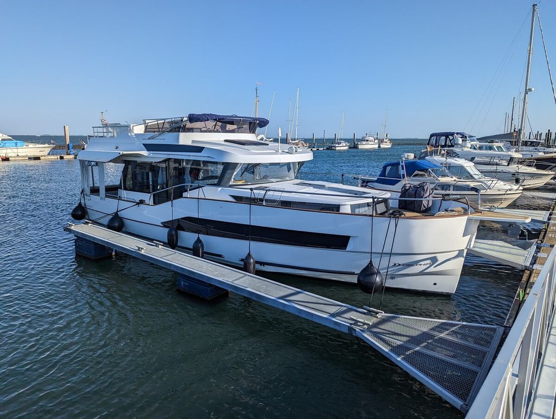 Delivered new Designer Andrzej Skrzat / Tony Castro Yacht Design Shipyard Delphia Yachts Hull number 14 CE-category B Hull deck superstructure Hull shape roundbilge Hull colour white Deck colour white Deck construction grp (polyester) Cockpit aft cockpit Flybridge Dimensions and weights Displacement 8750 kg Steering and Drift Limitation Steering system wheel Position steering system dual control Remote control Rudder single Keel/Lee board 0 -