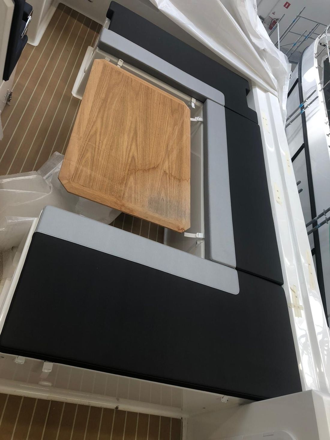 Safety Life buoy Electric Bilge pump Fire extinguisher Gas bottle locker with drain Self-draining cockpit