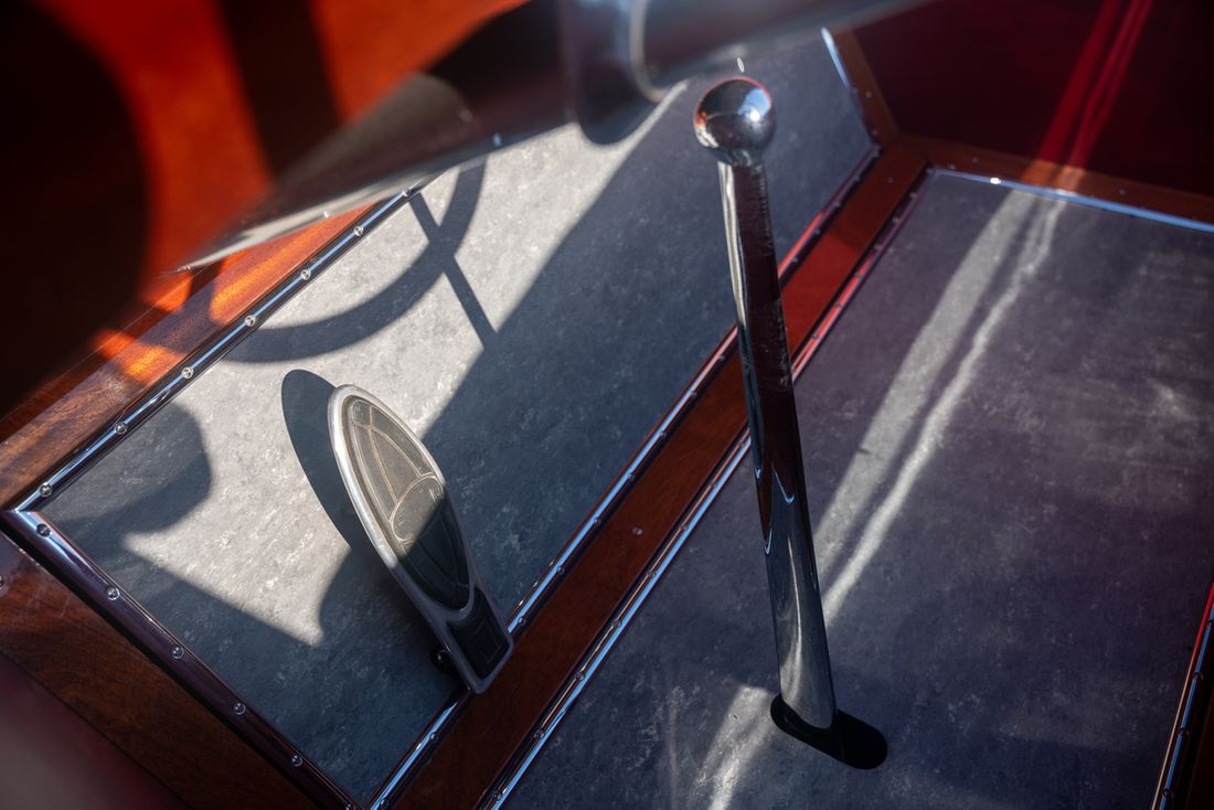 Delivered new Designer John Ludwig Hacker Shipyard Hacker Boat Co. Hull number 156 CE-category exempt Hull deck superstructure Hull shape v-bottom Hull colour brown Deck colour brown Deck construction wood Cockpit double cockpit Dimensions and weights Displacement 726 kg Steering and Drift Limitation Steering system wheel Position steering system outside control Rudder single -