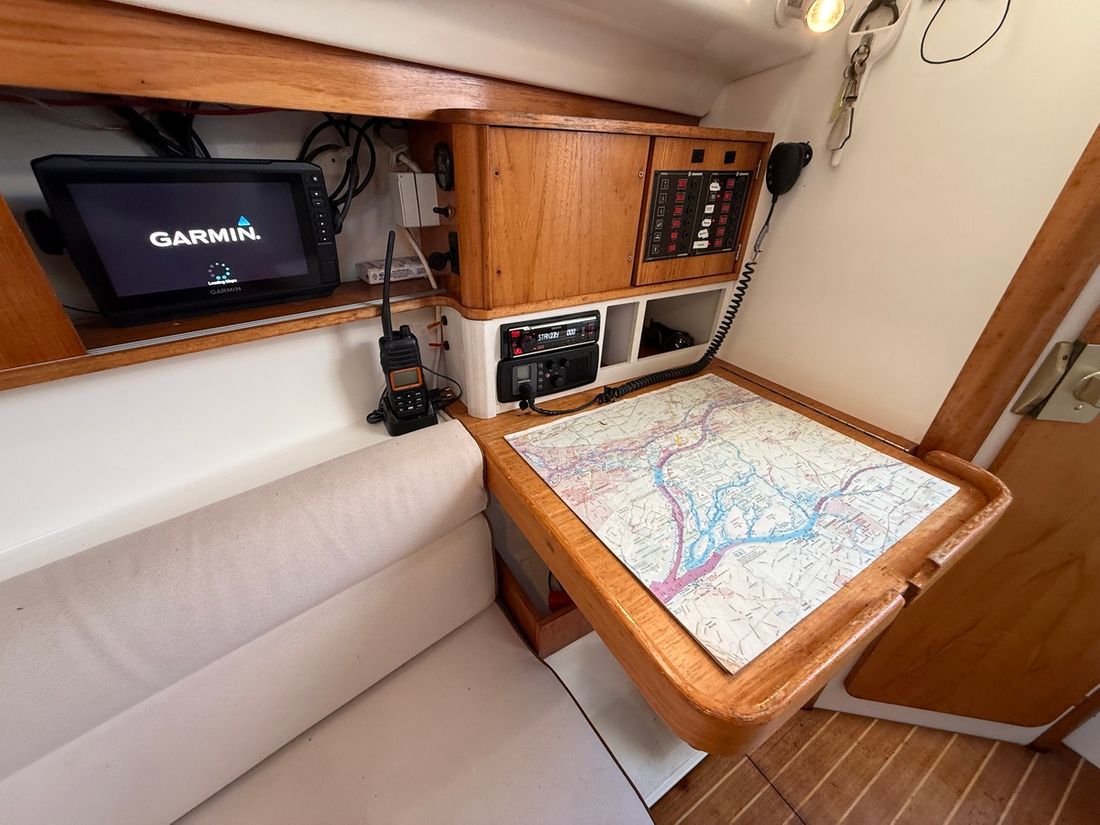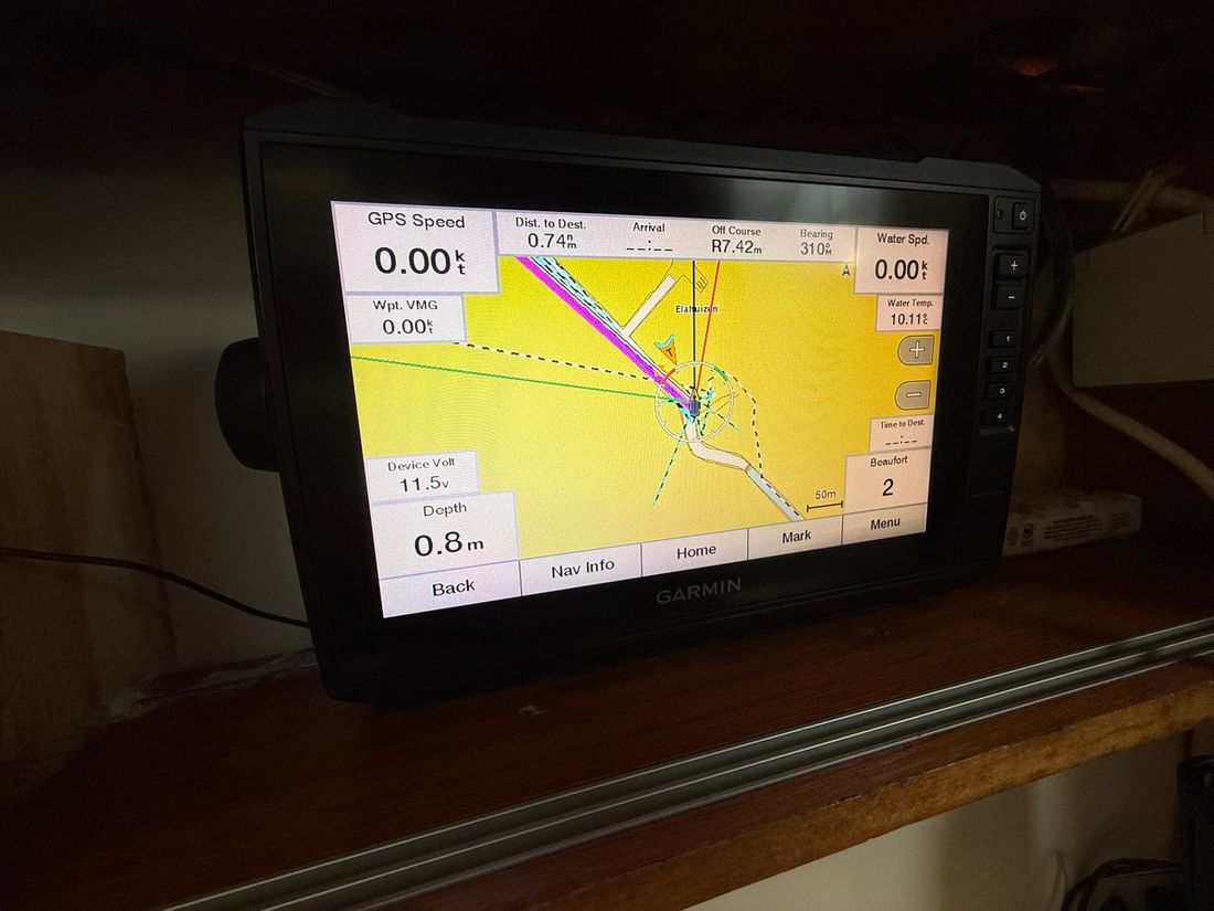 Basic tools Compass Brand kompas Vloeistof Log/speed Brand log/speed Garmin GMI 20 2019/2020 Depth gauge Brand depth gauge Garmin GMI 20 2019/2020 Wind gauge Brand wind gauge Garmin GMI 20 2019/2020 Navigation lights Brand Navigation lights compleet Modern electronics Autopilot Brand autopilot 1x SIMRAD TP10, 1x SIMRAD TP32 Chart plotter Brand chart plotter Garmin SV92 kaartplotter (2019/20) Brand fishfinder Sonar fishfinder (handig bij droogvallen) Communication VHF Brand VHF SIMRAD -