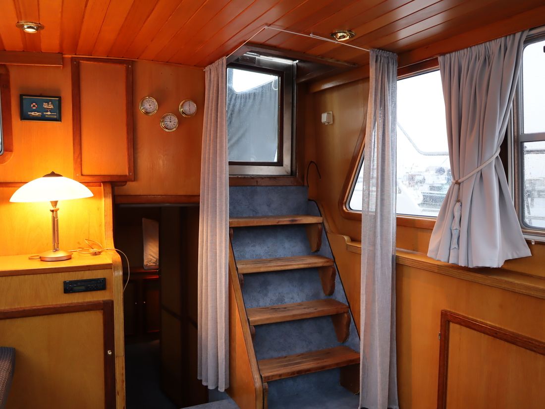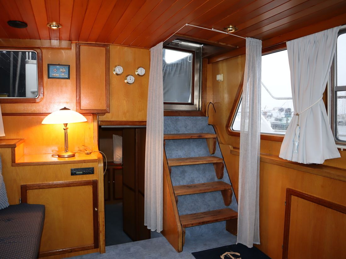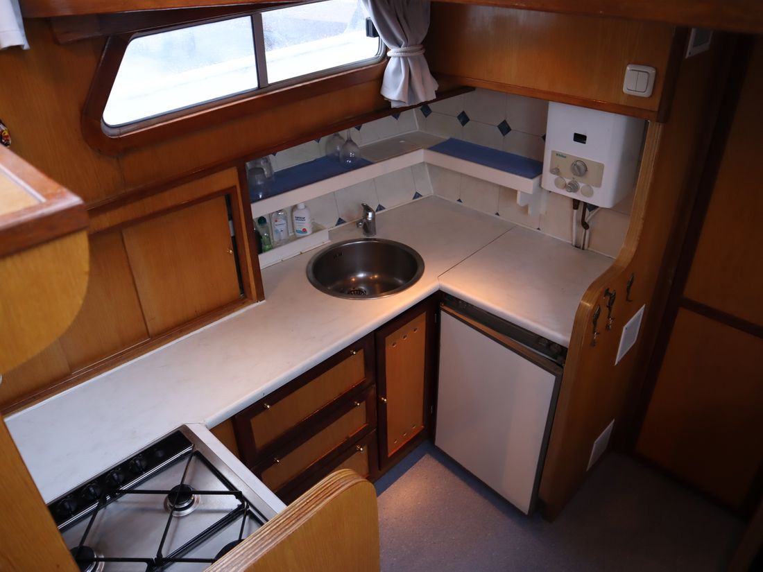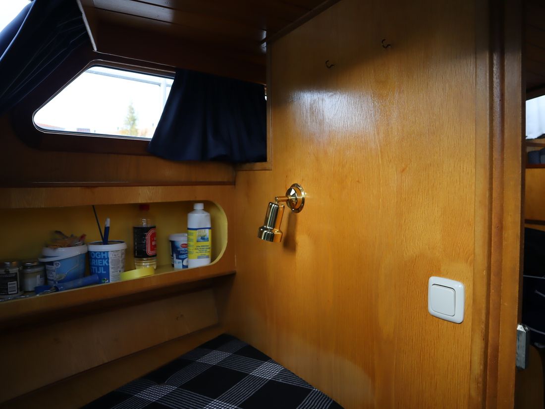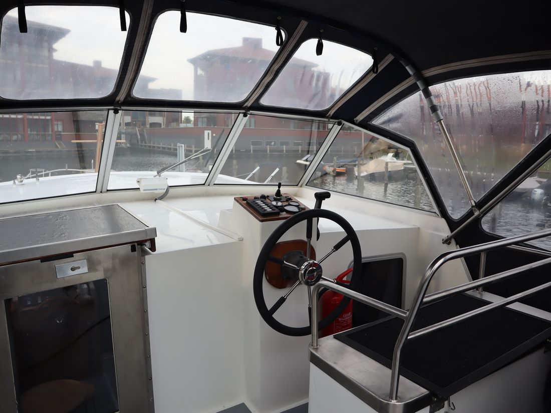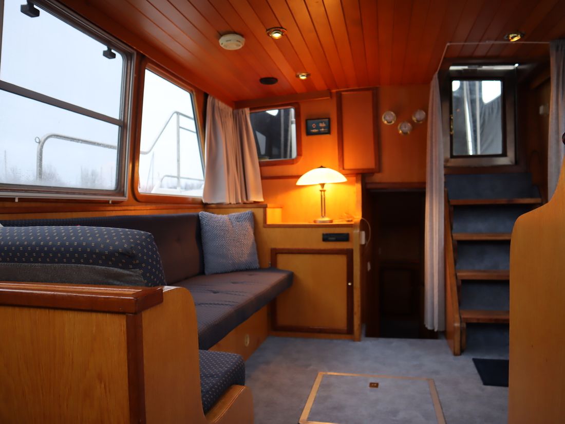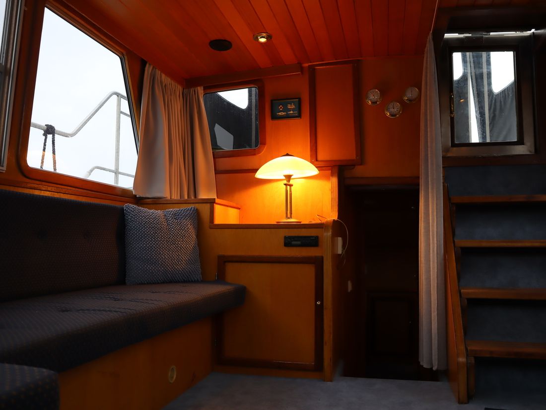 This robustly built steel cruiser is ideal for those looking for a sturdy yet charming boat. The boat's solid construction is immediately noticeable upon stepping aboard. The headroom is 1.90m almost everywhere, with the exception of the aft cabin, which is 1.80m. This boat is perfect for wonderful weekend getaways. Living aboard is also an option. The boat's amenities include four berths, a galley, saloon, shower, toilet, heating, a mechanical anchor, and a bow thruster.