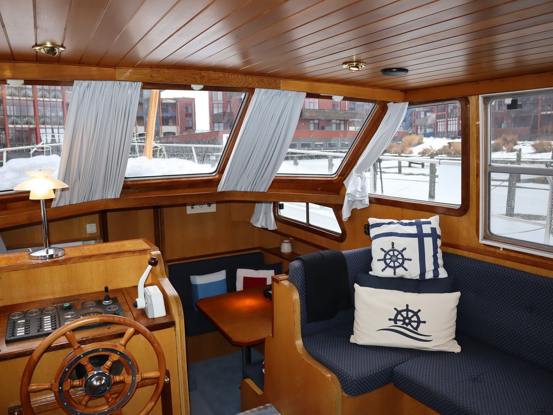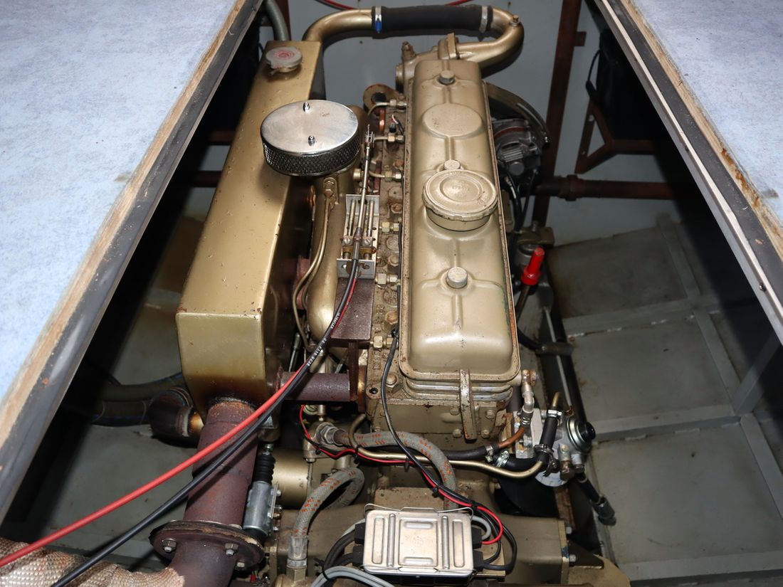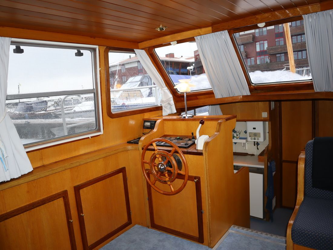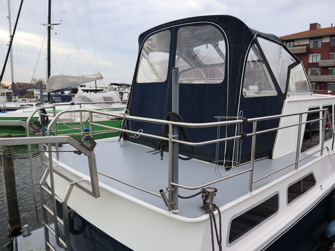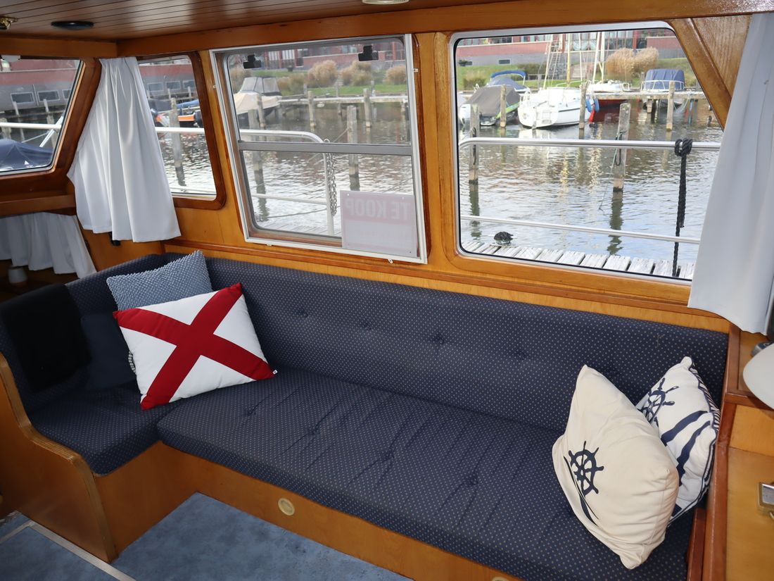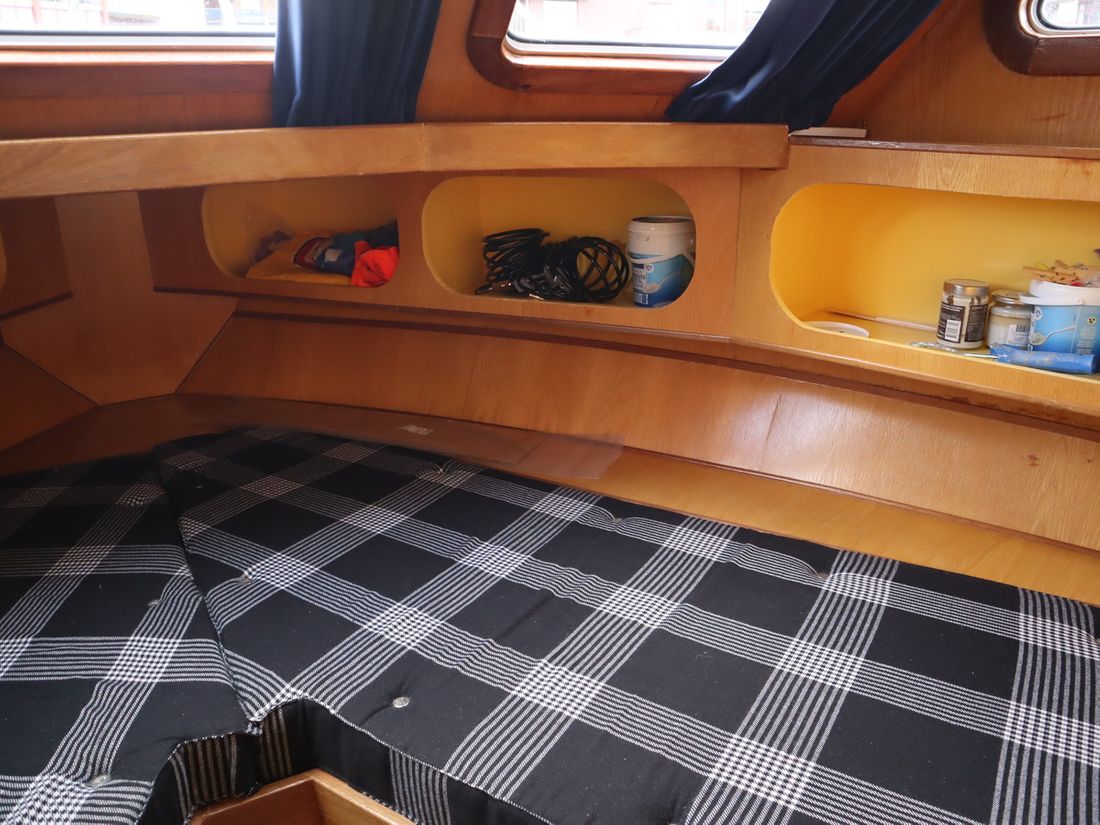 This robustly built steel cruiser is ideal for those looking for a sturdy yet charming boat. The boat's solid construction is immediately noticeable upon stepping aboard. The headroom is 1.90m almost everywhere, with the exception of the aft cabin, which is 1.80m. This boat is perfect for wonderful weekend getaways. Living aboard is also an option. The boat's amenities include four berths, a galley, saloon, shower, toilet, heating, a mechanical anchor, and a bow thruster.