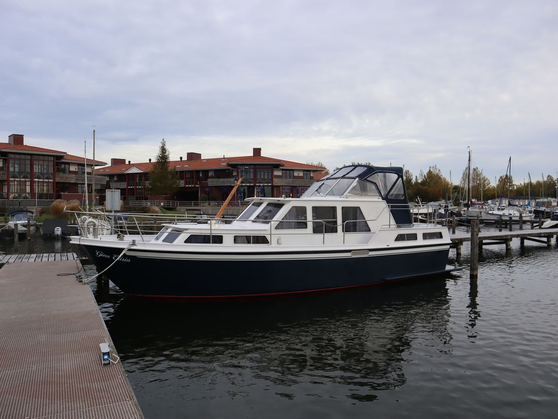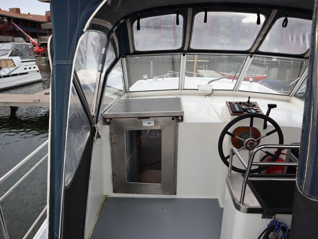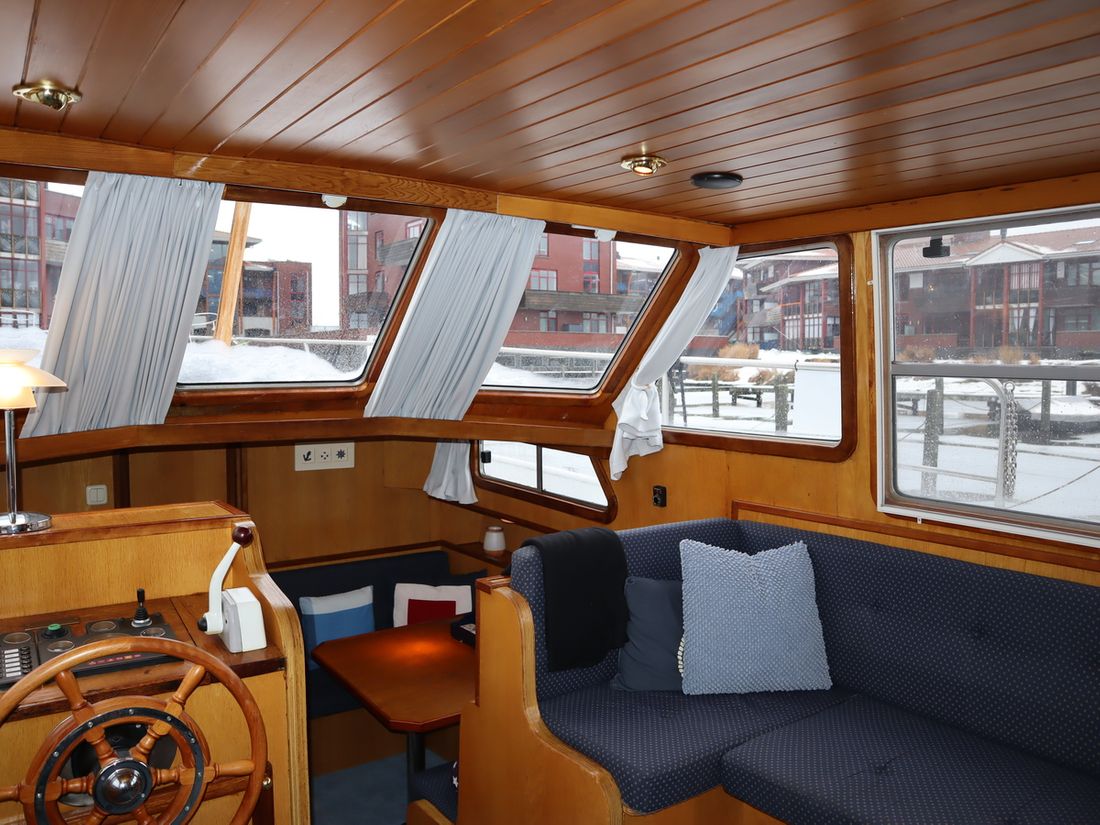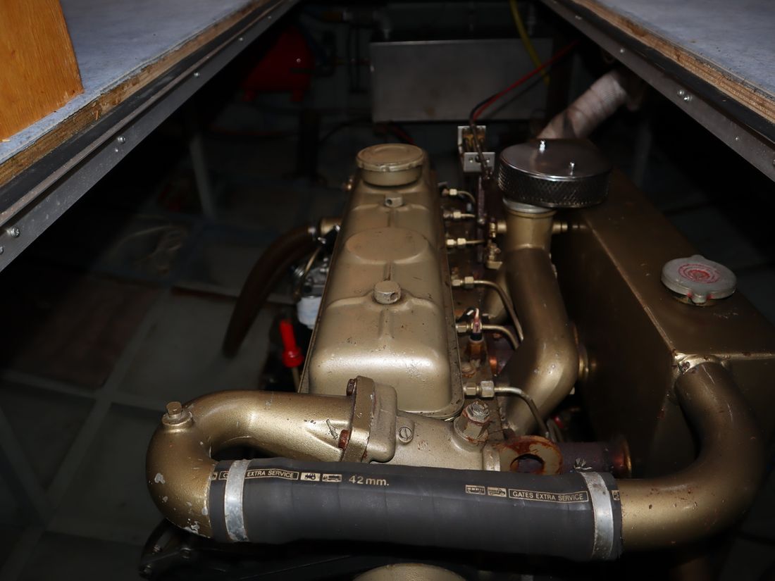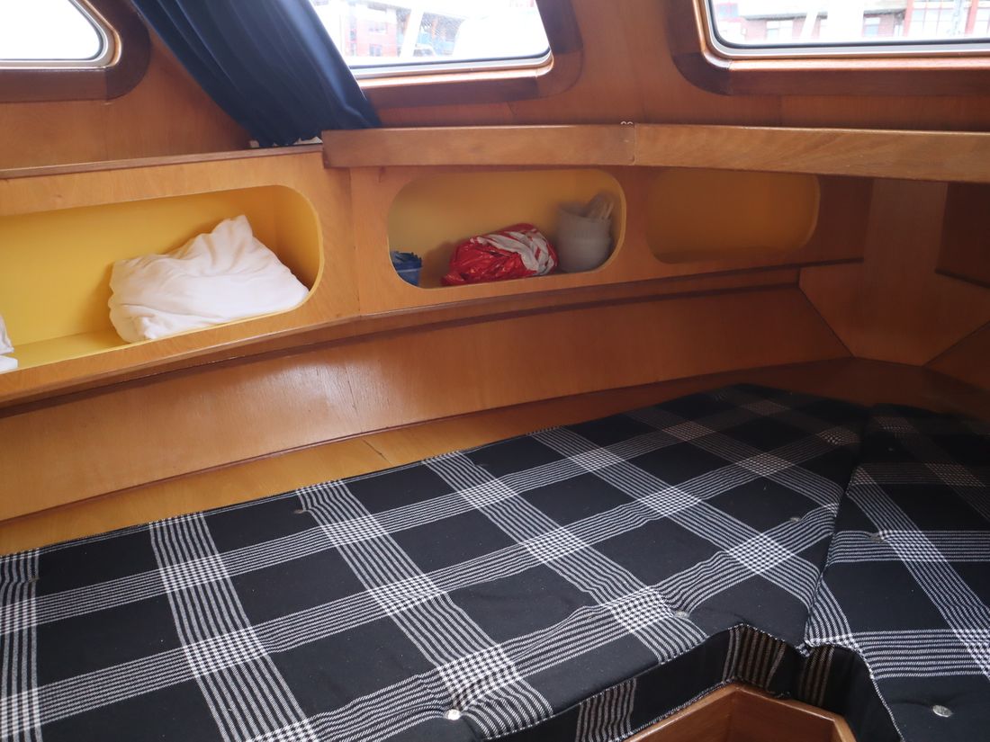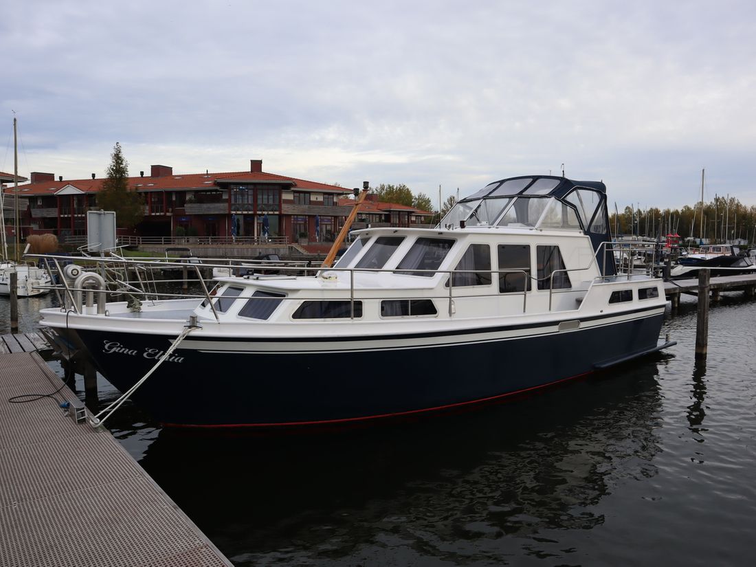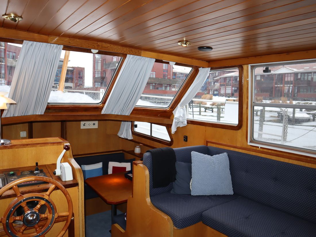 This robustly built steel cruiser is ideal for those looking for a sturdy yet charming boat. The boat's solid construction is immediately noticeable upon stepping aboard. The headroom is 1.90m almost everywhere, with the exception of the aft cabin, which is 1.80m. This boat is perfect for wonderful weekend getaways. Living aboard is also an option. The boat's amenities include four berths, a galley, saloon, shower, toilet, heating, a mechanical anchor, and a bow thruster.