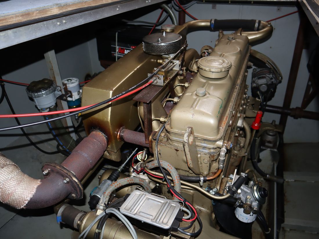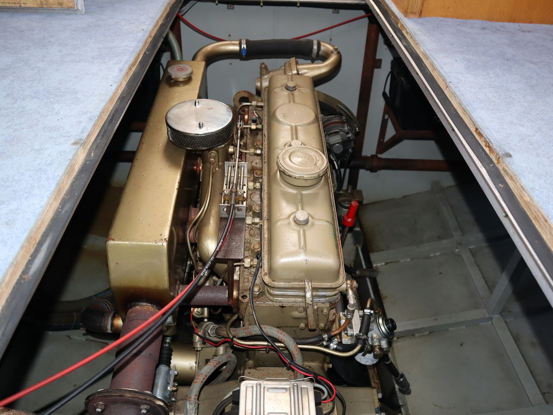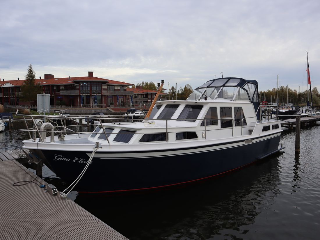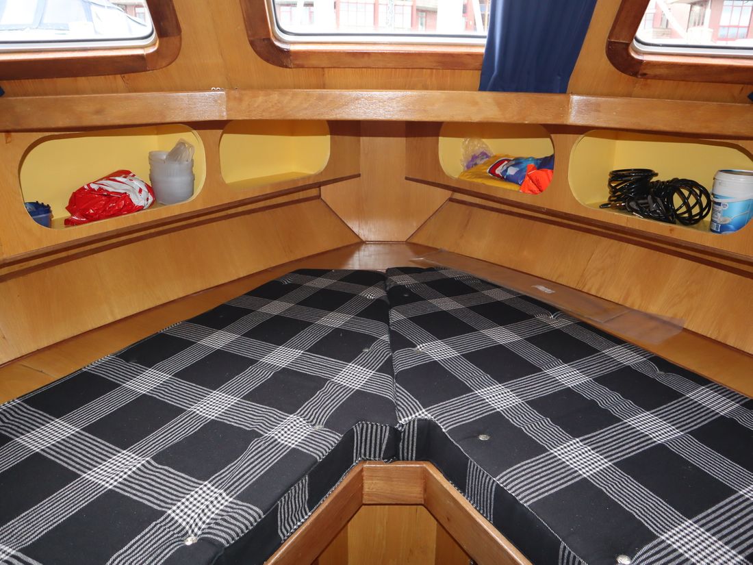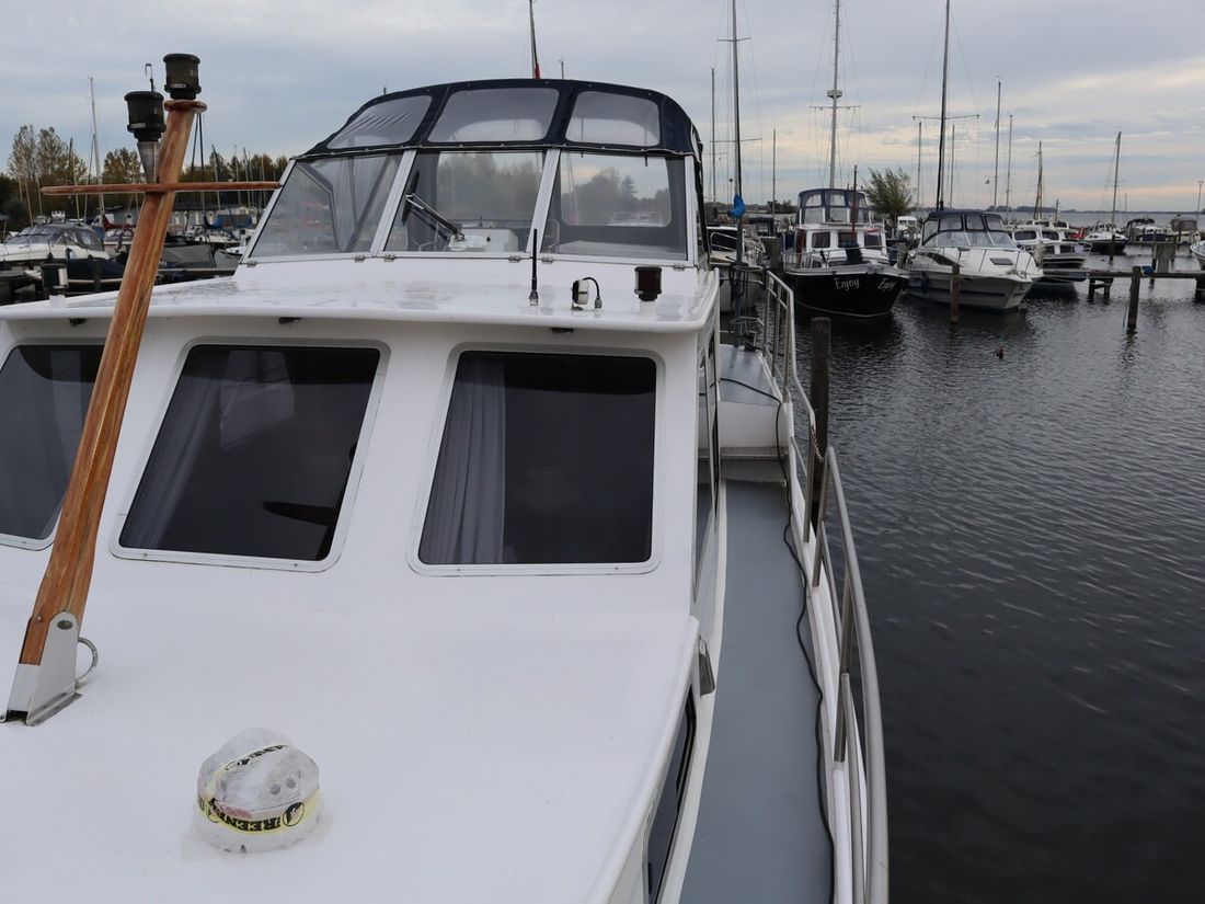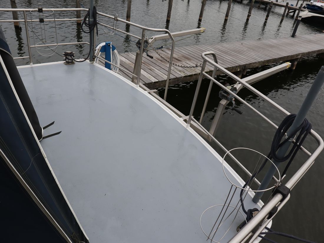 This robustly built steel cruiser is ideal for those looking for a sturdy yet charming boat. The boat's solid construction is immediately noticeable upon stepping aboard. The headroom is 1.90m almost everywhere, with the exception of the aft cabin, which is 1.80m. This boat is perfect for wonderful weekend getaways. Living aboard is also an option. The boat's amenities include four berths, a galley, saloon, shower, toilet, heating, a mechanical anchor, and a bow thruster.