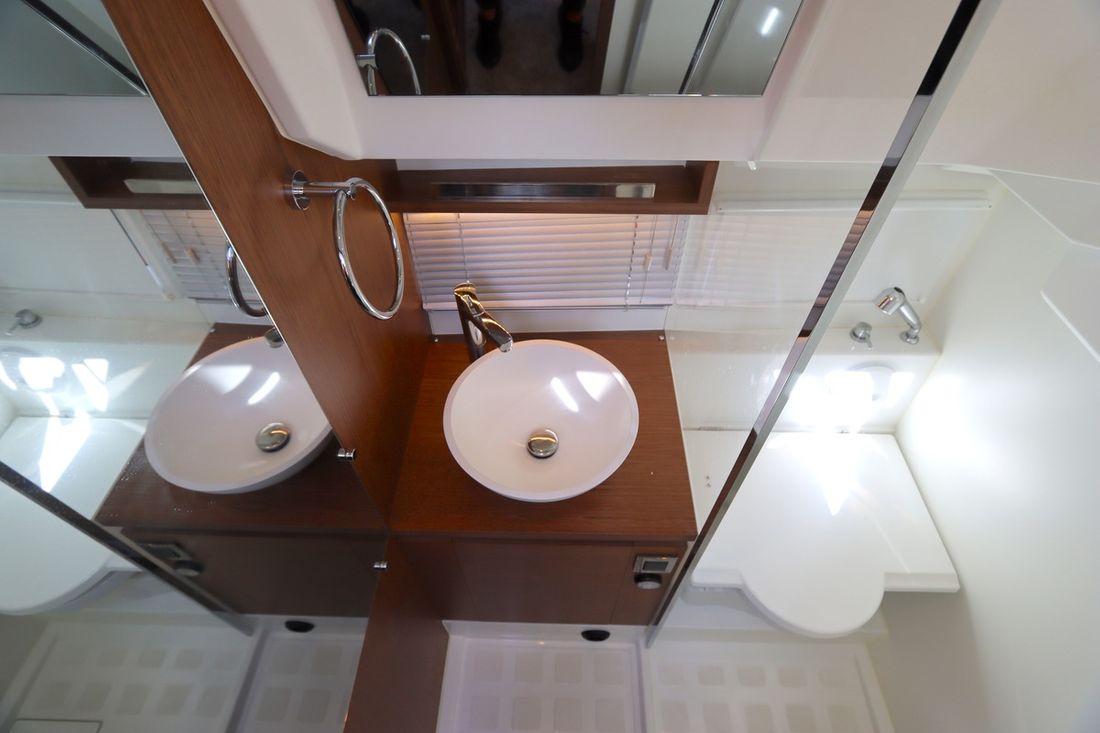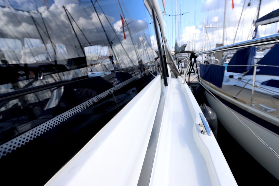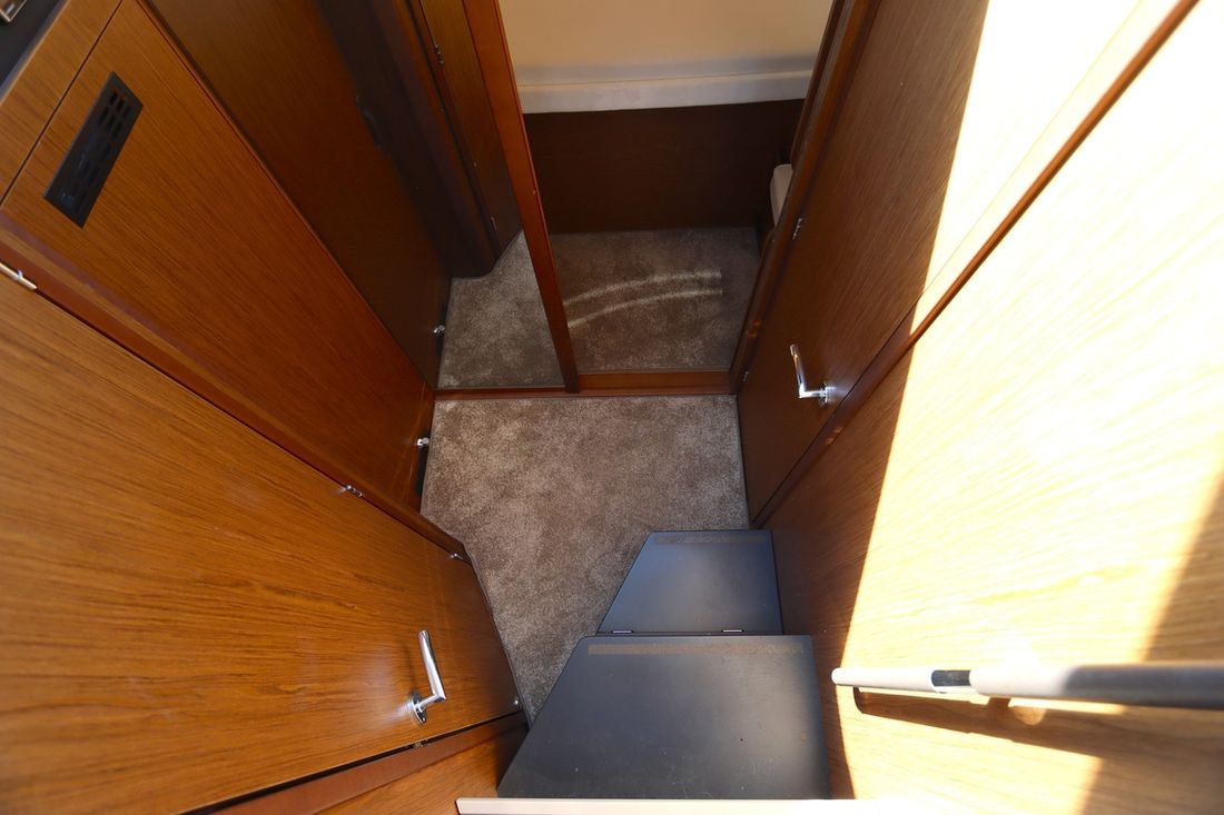 Spaces Saloon Comments Saloon Pearl Grey upholstery in the salon, electric sliding roof. White Creme Blue cockpit upholstery, convertible into a sunbed. Double bed in the salon. Separate Dining area Cabins 2 Comments Cabins overhead cupboards in the owner's cabin Decoration Type interior Modern, light Comments Type interior Carpets in lounge and cabins. Water Water tank & material Capacity 175 litre Waste water tank Water system pressure Hot water Plumbing Toilets 1 Electric Kitchen Cooker & fuel Number 2 Cooking fuel gas Oven Fridge & power source Climate control hot air Comments Heating Diesel hot air heating with additional exhaust in the cockpit -