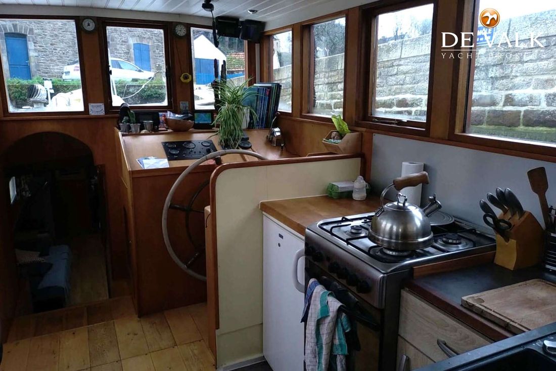 SO99, build by the famous Figee boatyard as a fast going oil tanker formally known as the 'Esso Holland 99' where she used to supply the oil depots. Nowadays, she has been converted into a spacious and comfortable motor vessel for life aboard or cruising through the European inland waterways. With her two cabins in the front she offers 4 berths, a galley with cooking facilities, and on the colder days the stove keeps the ship comfortably warm. The SO99 can be seen in France by appiontment.